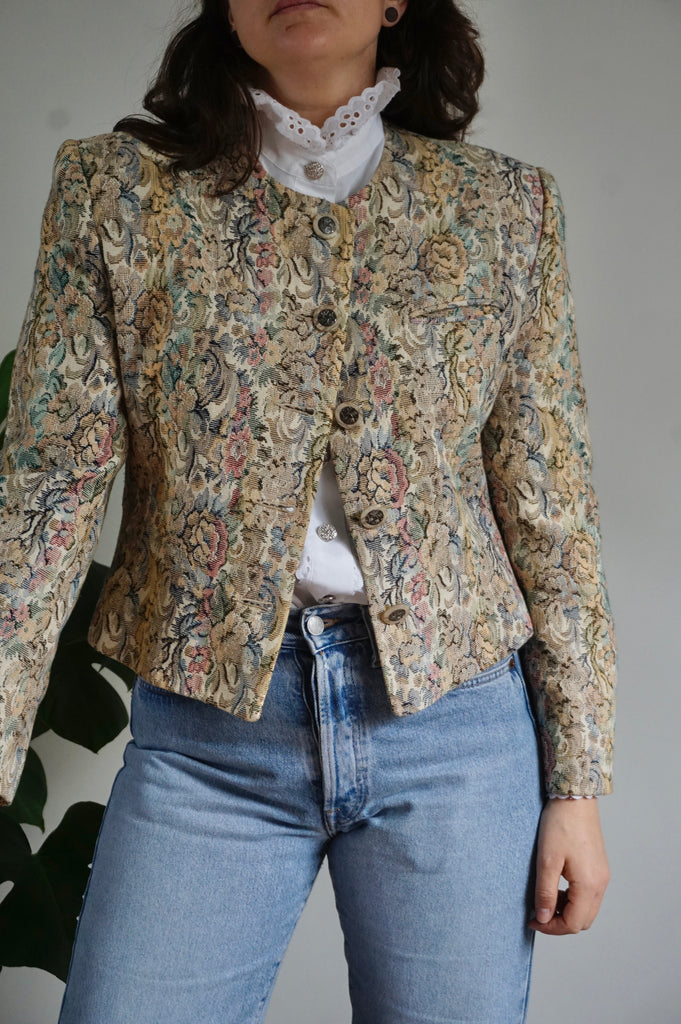 Garden Tea Party - Re Worked jacket from Vintage Tapestry - XL