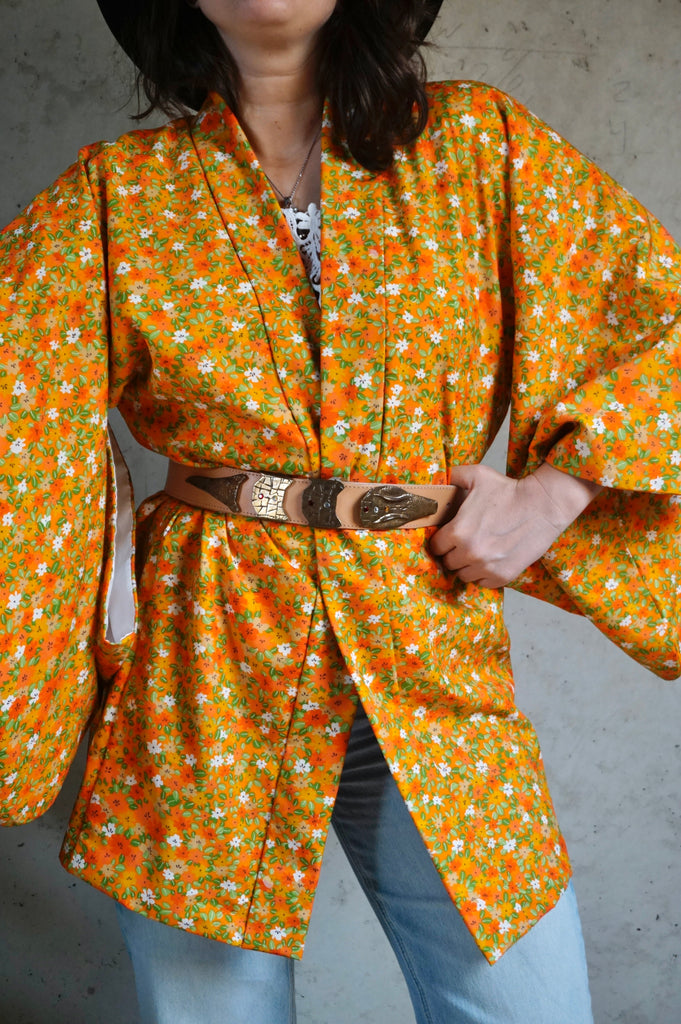 Orange Blossom - Vintage 100% Silk Japanese Kimono - Free Size
