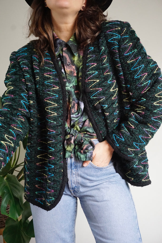 Forest Flowers - Vintage Embroidered Blazer/Jacket - M