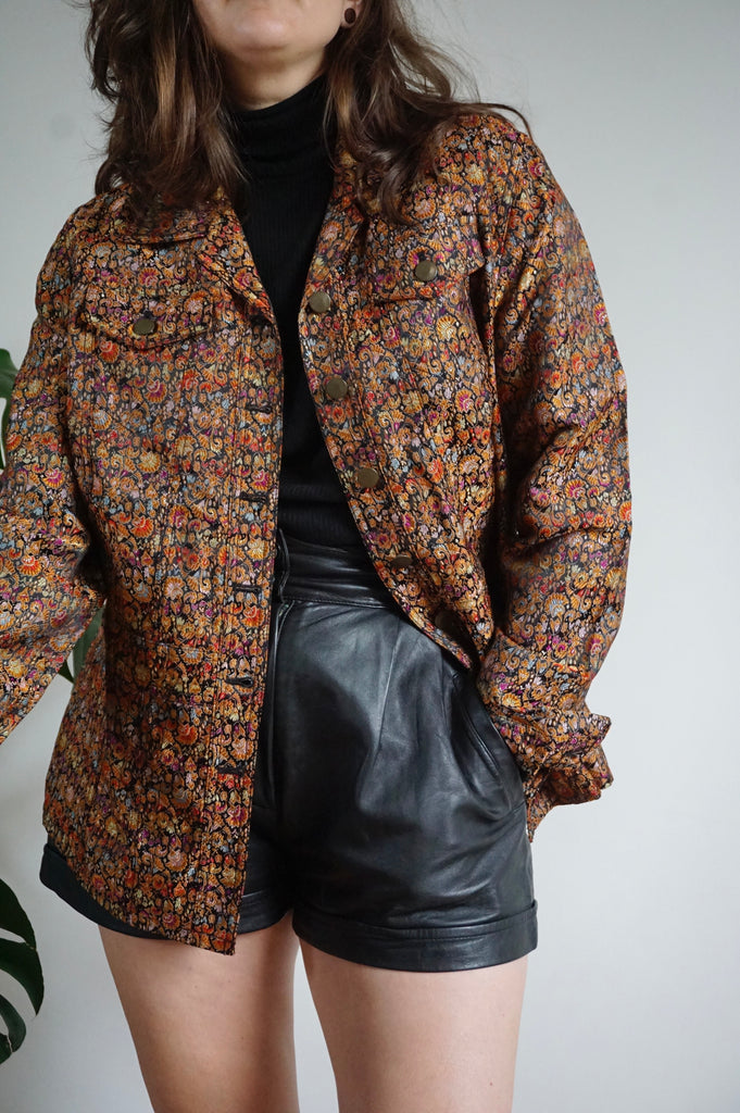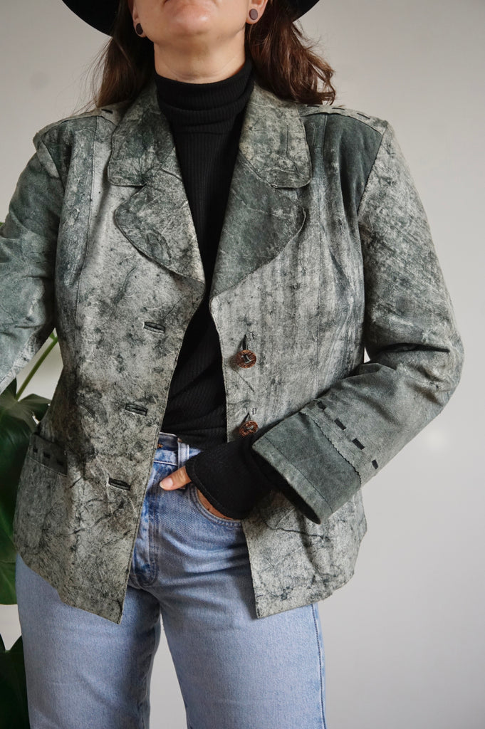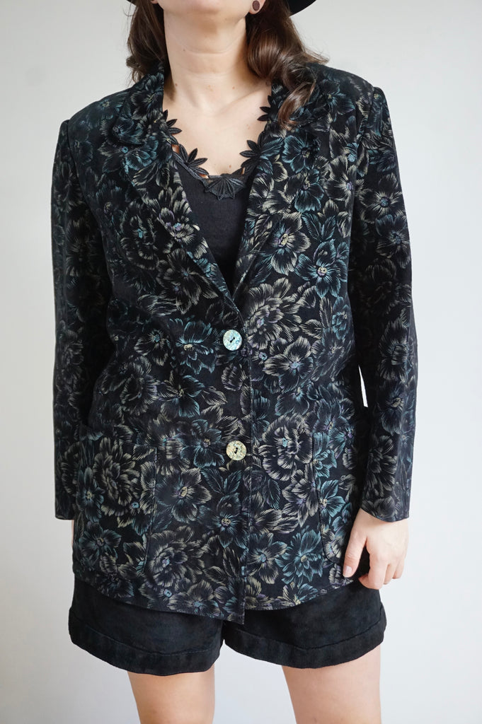 Night Bloom - Vintage Painted Suéde Leather Blazer/Jacket - M