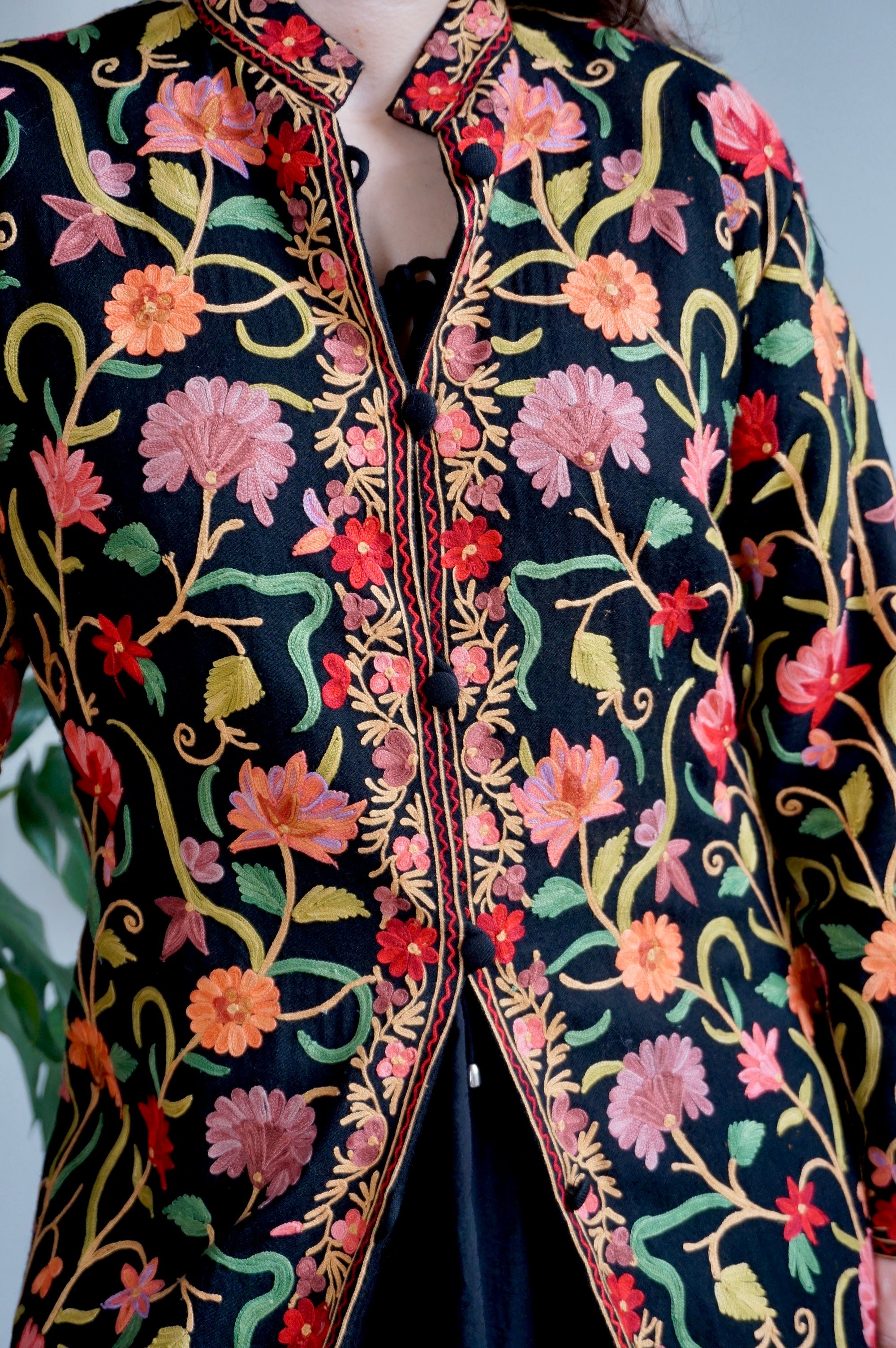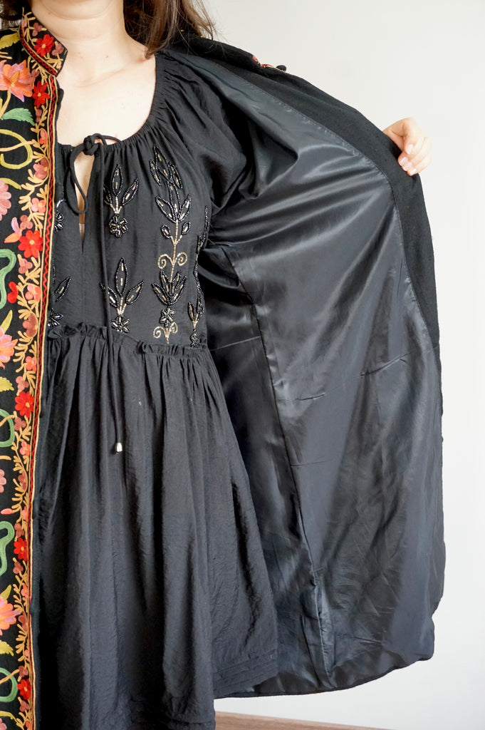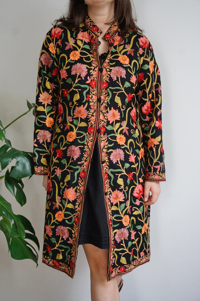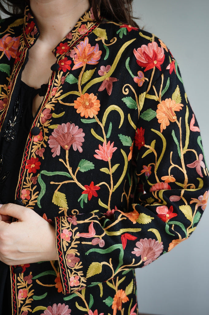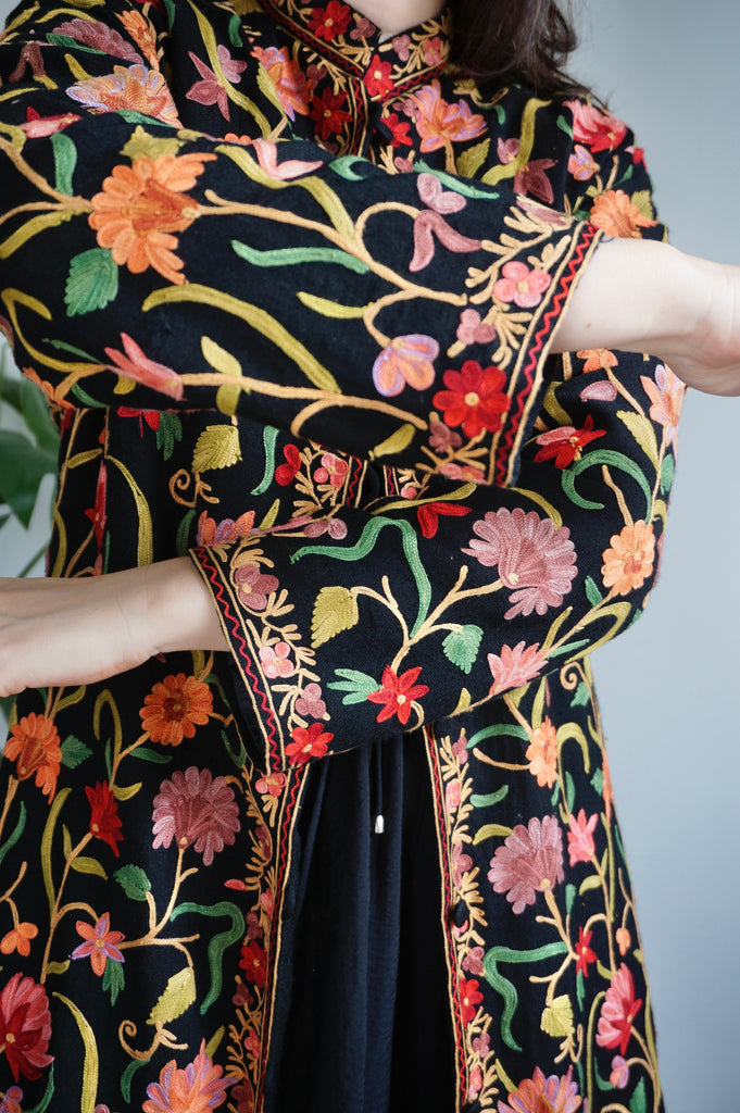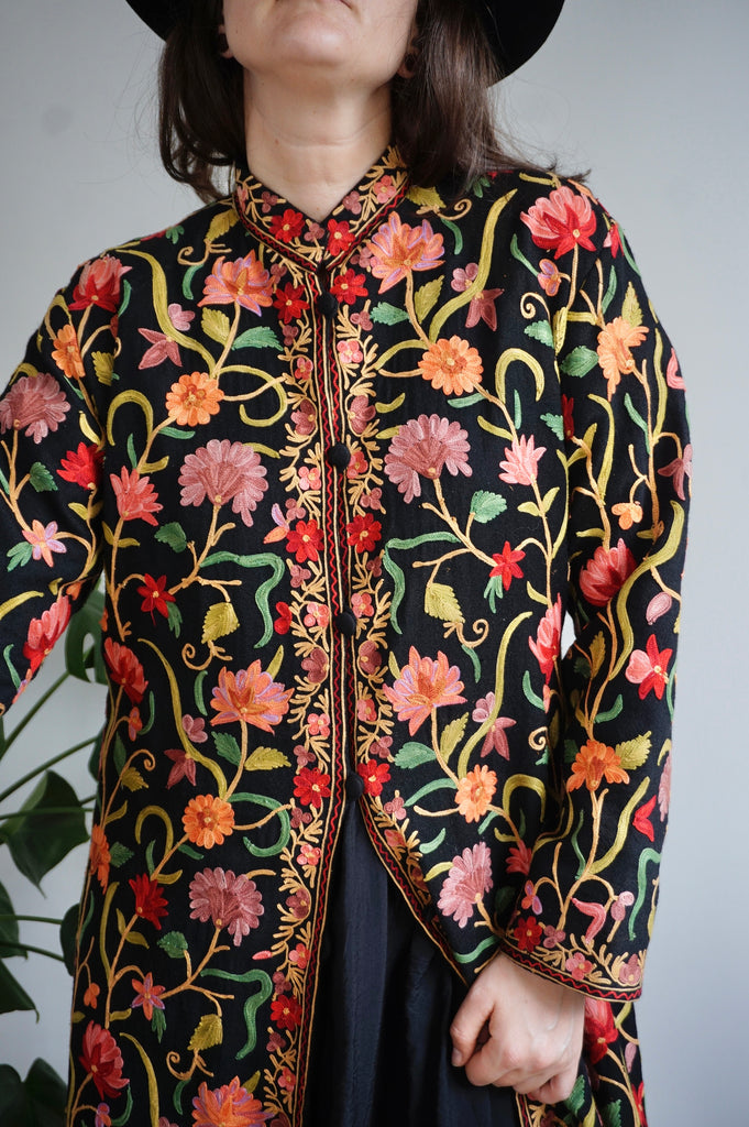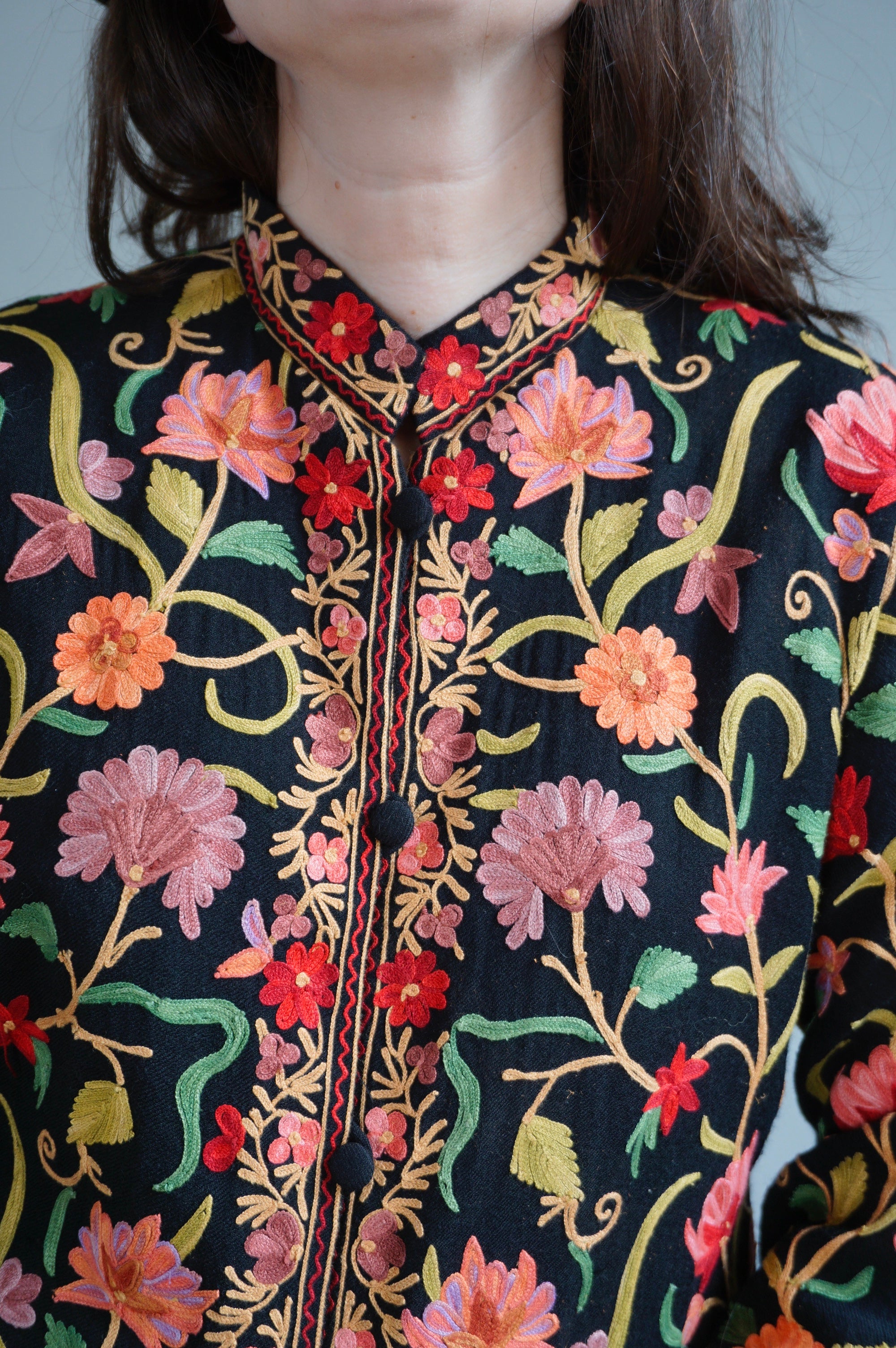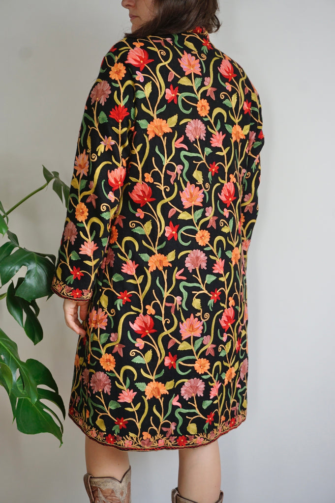 Flower Mist - Vintage Embroidered Kimono/jacket - Cashmere Wool - M/L