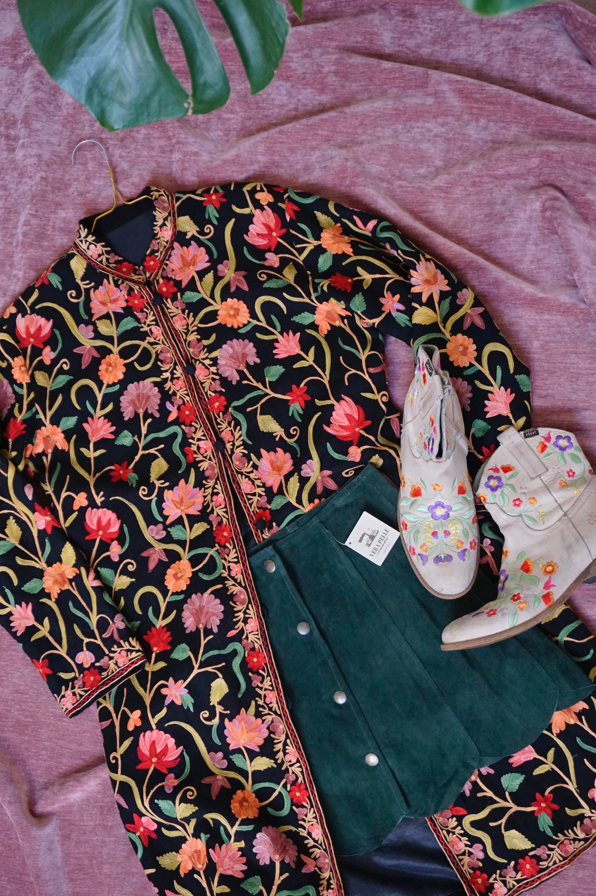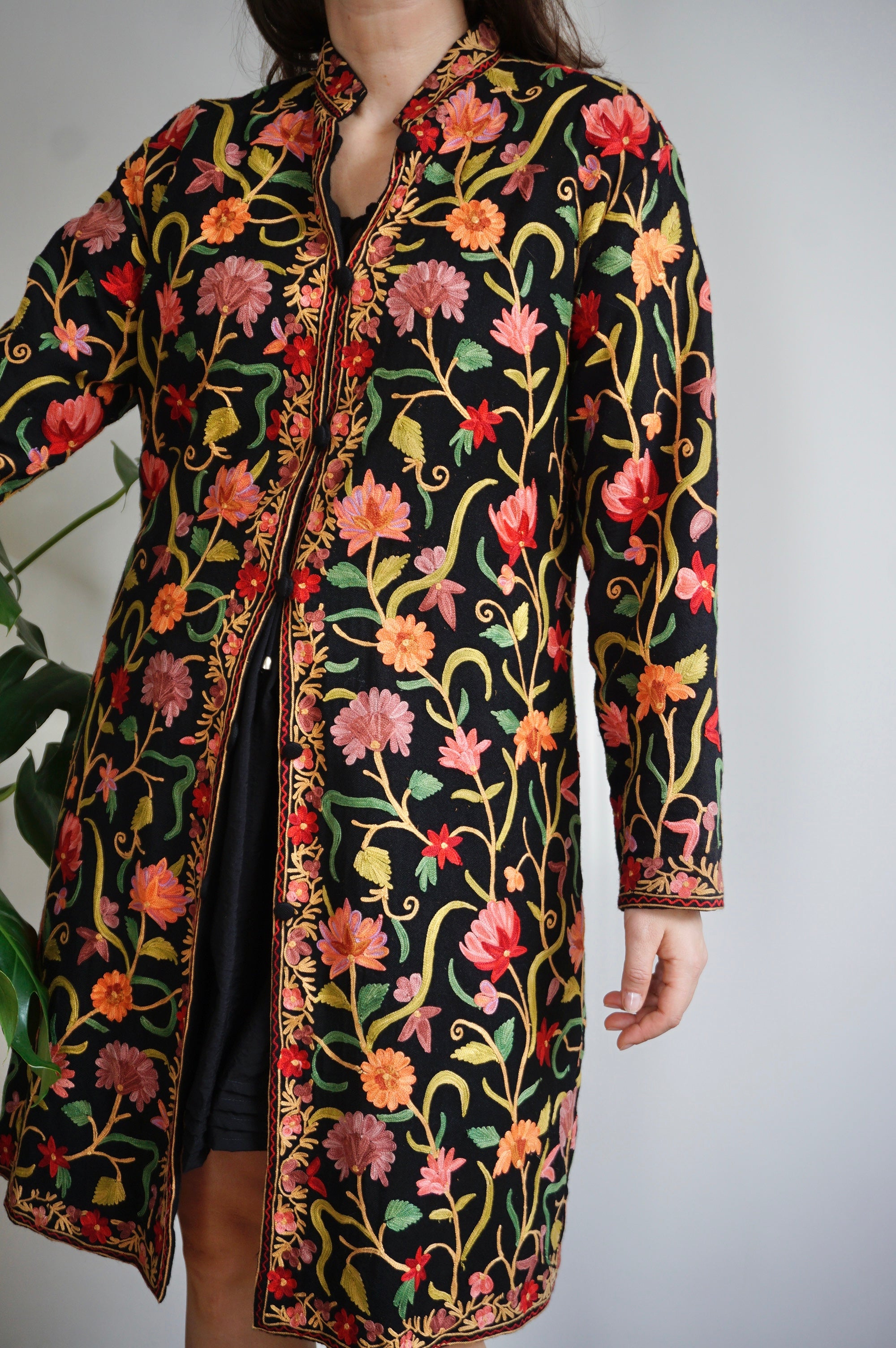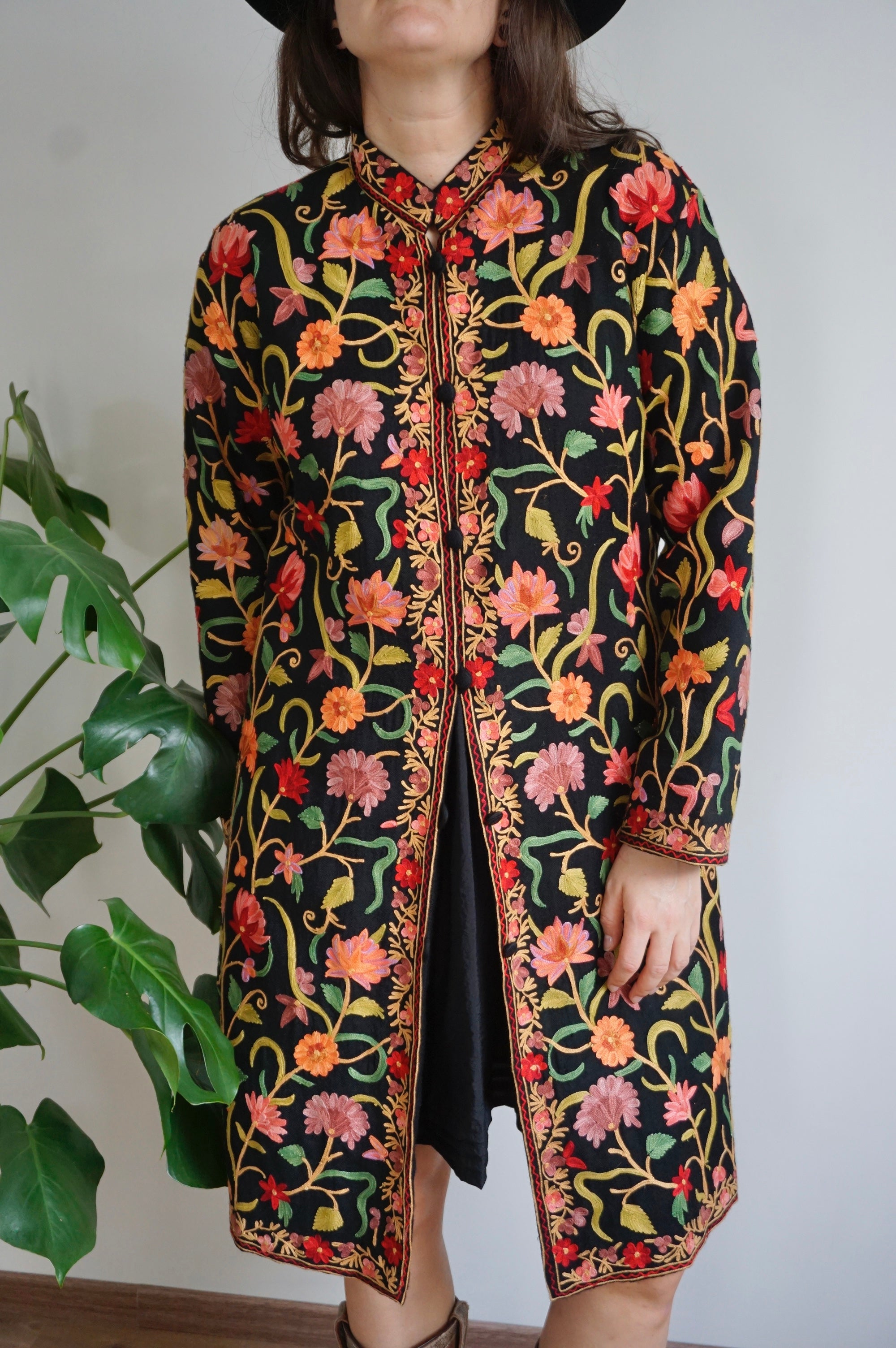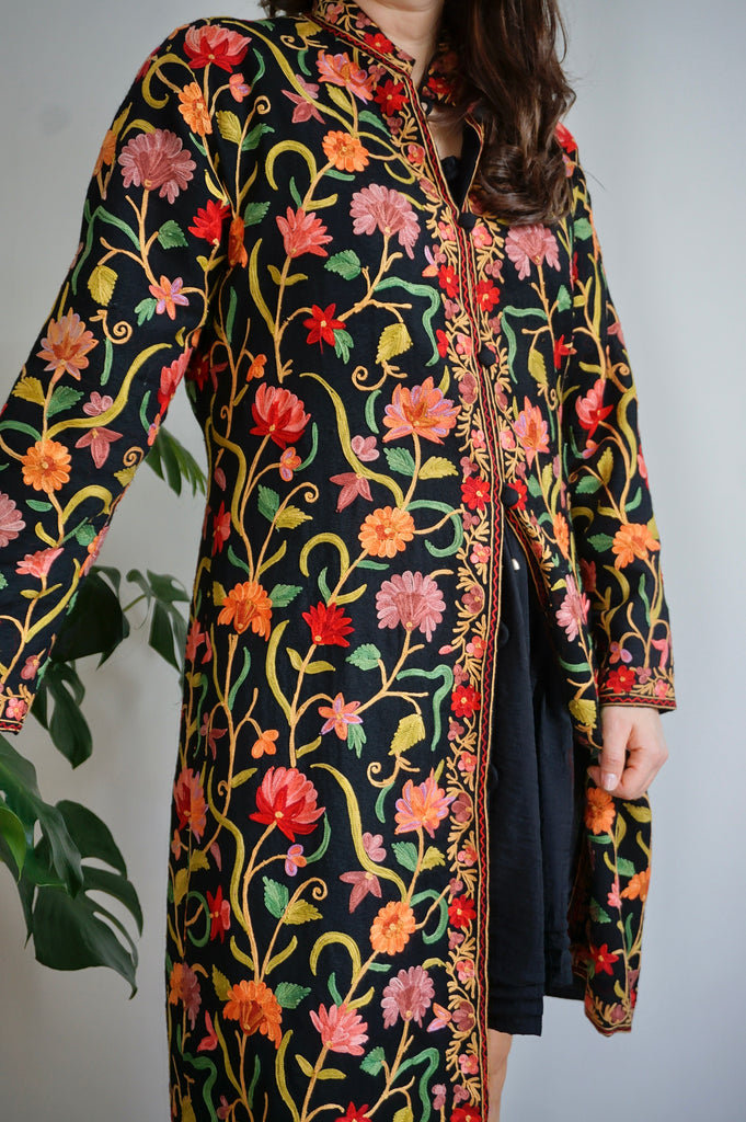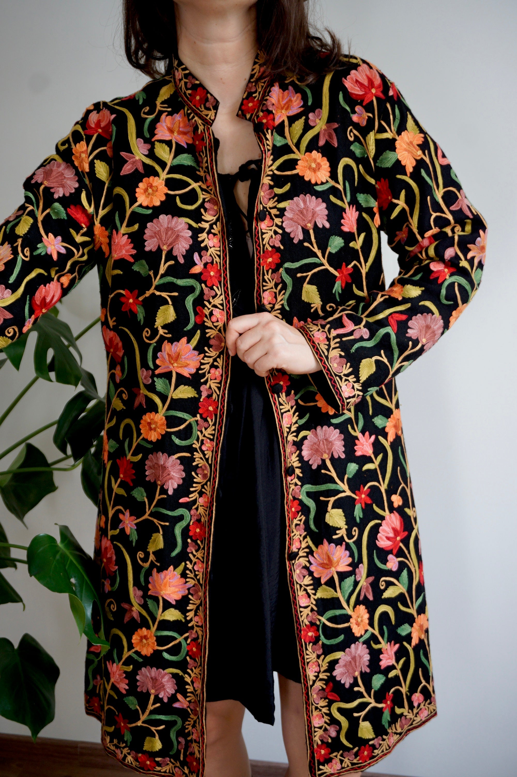 Flower Mist - Vintage Embroidered Kimono/jacket - Cashmere Wool - M/L