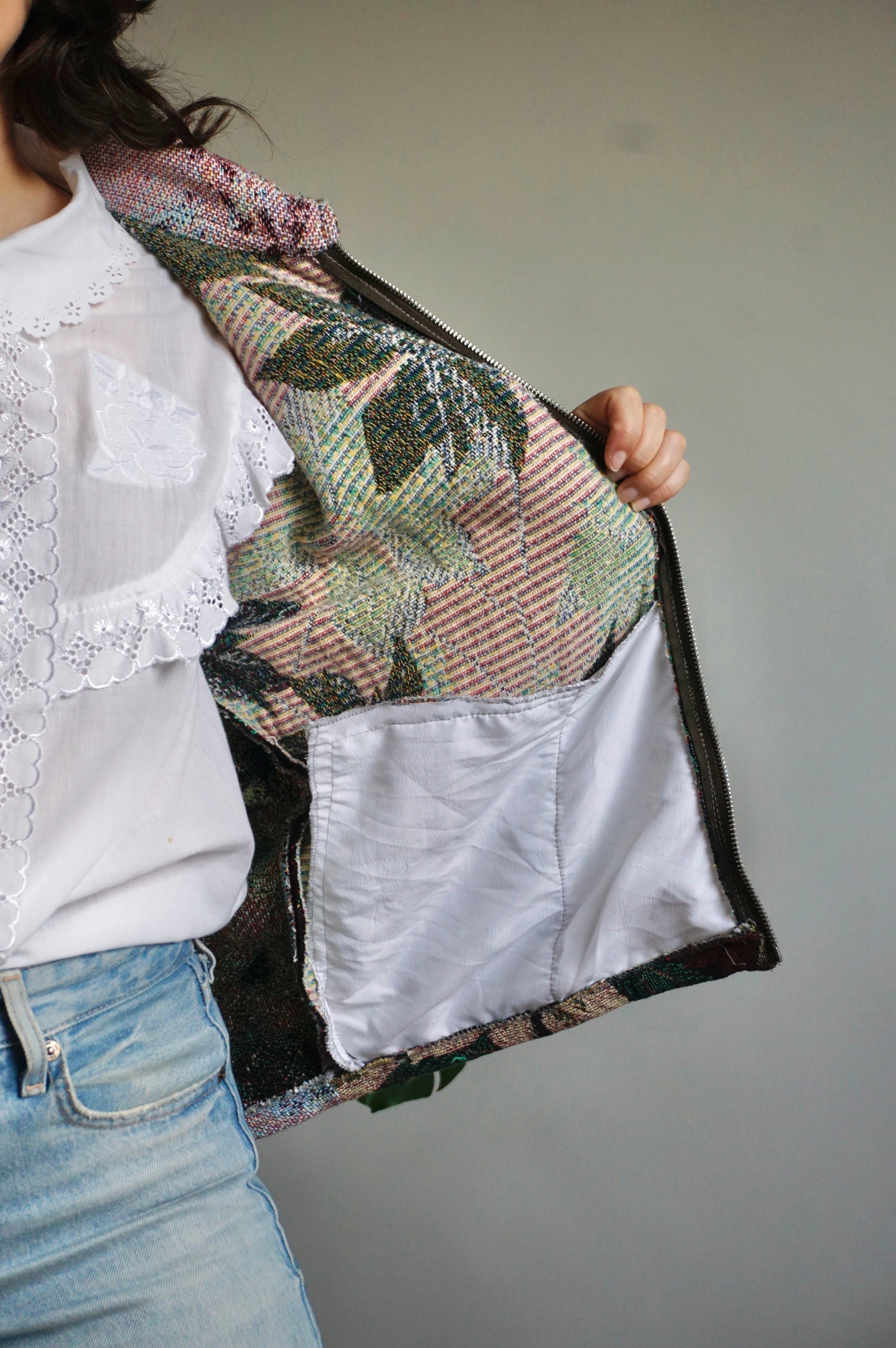 The jacket is made from Vintage Tapestry (wall carpets). So you will know for certain, you have a unique jacket! This jacket is truly one of a kind(!!) only one of these in the world.
