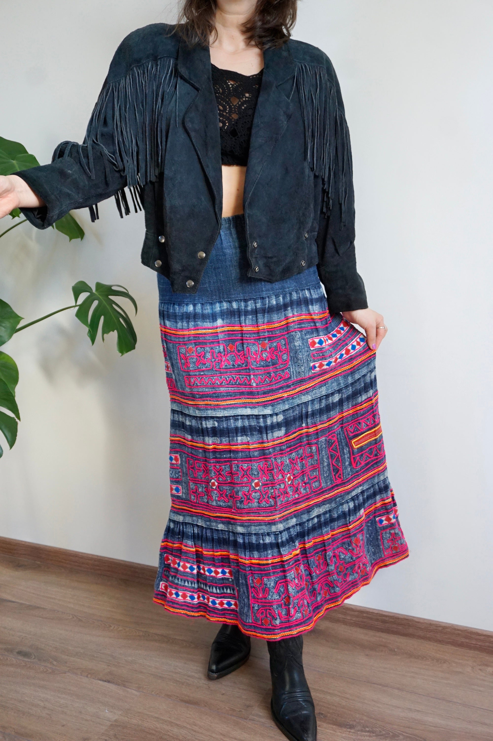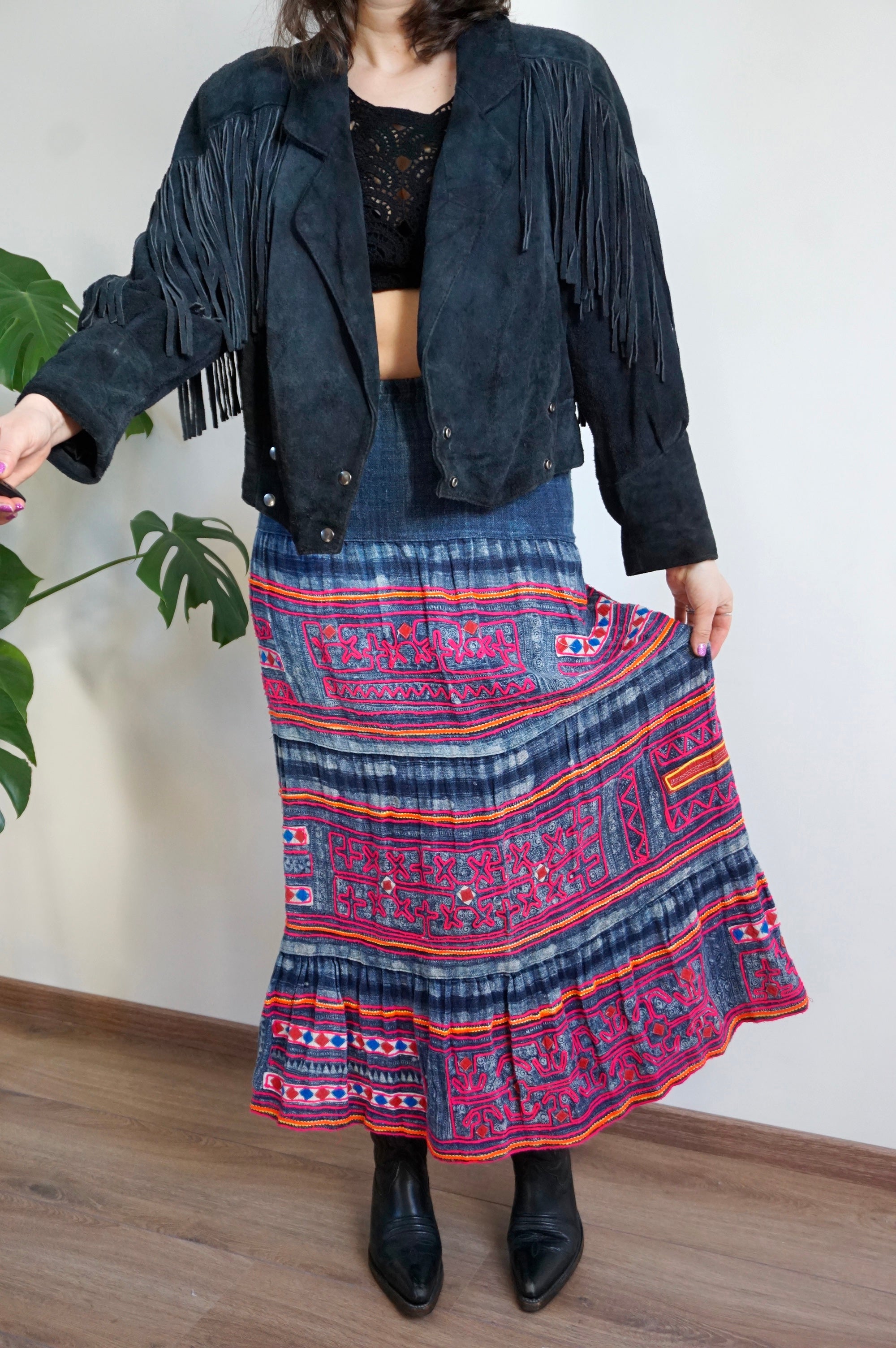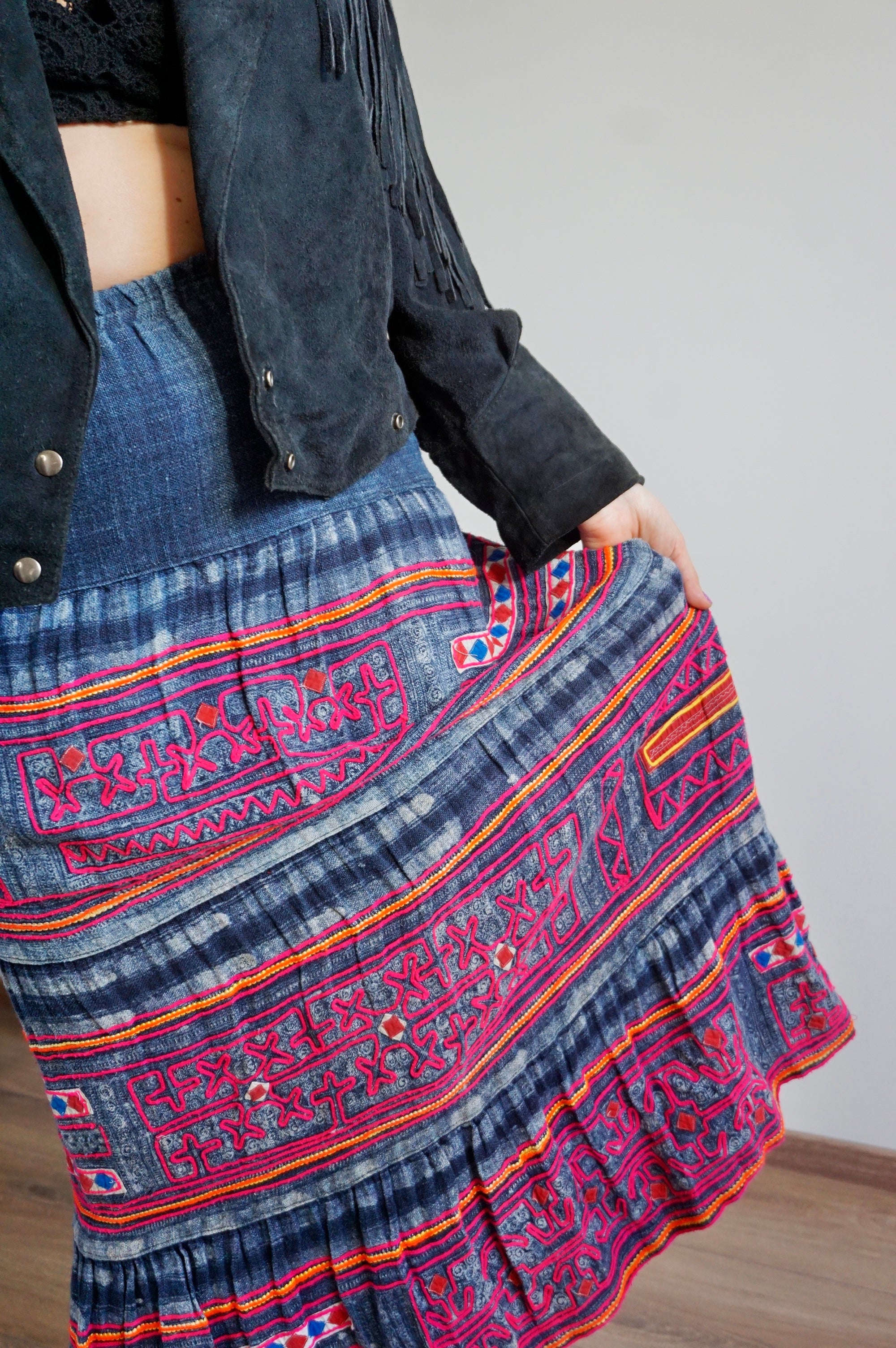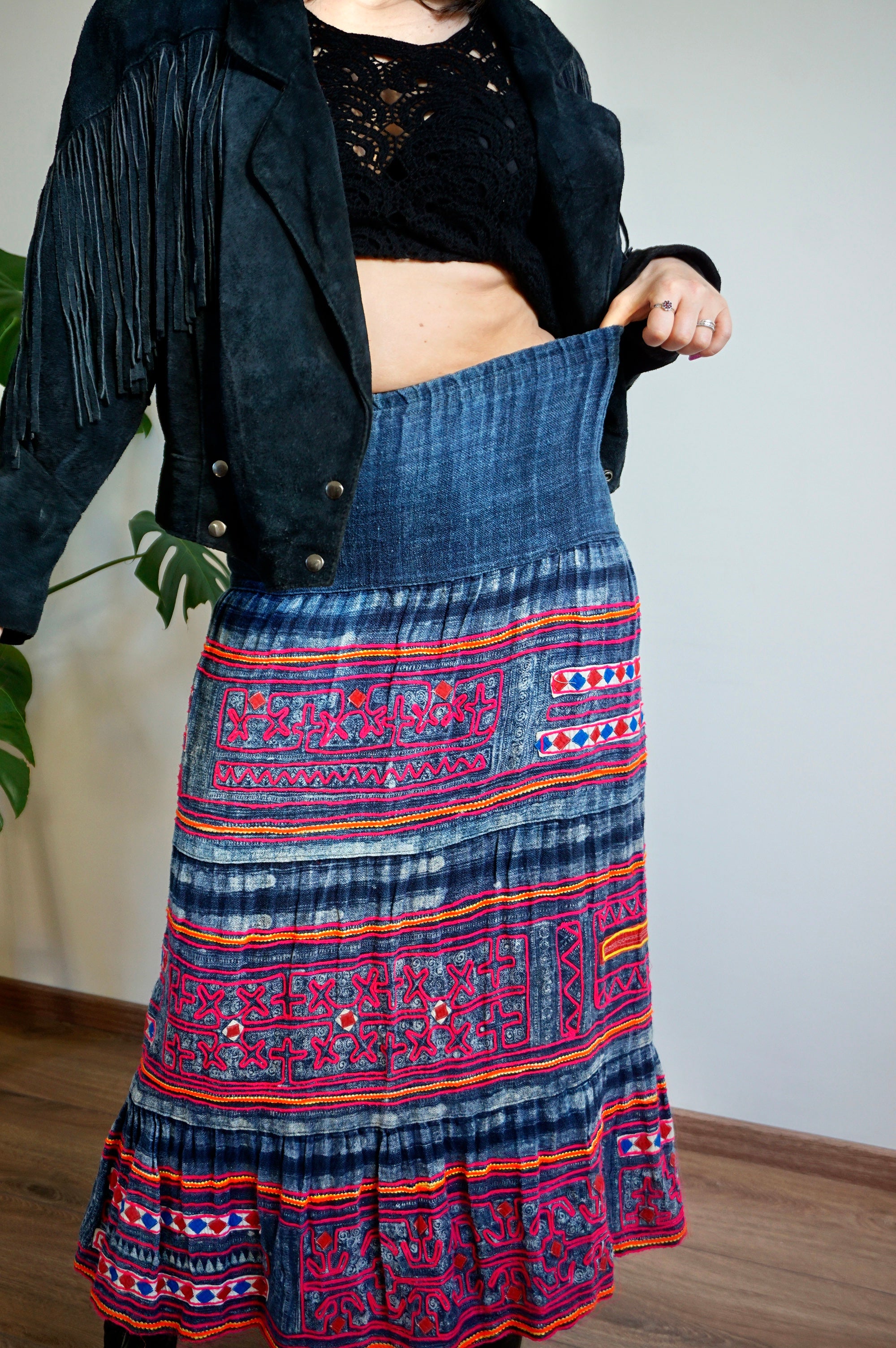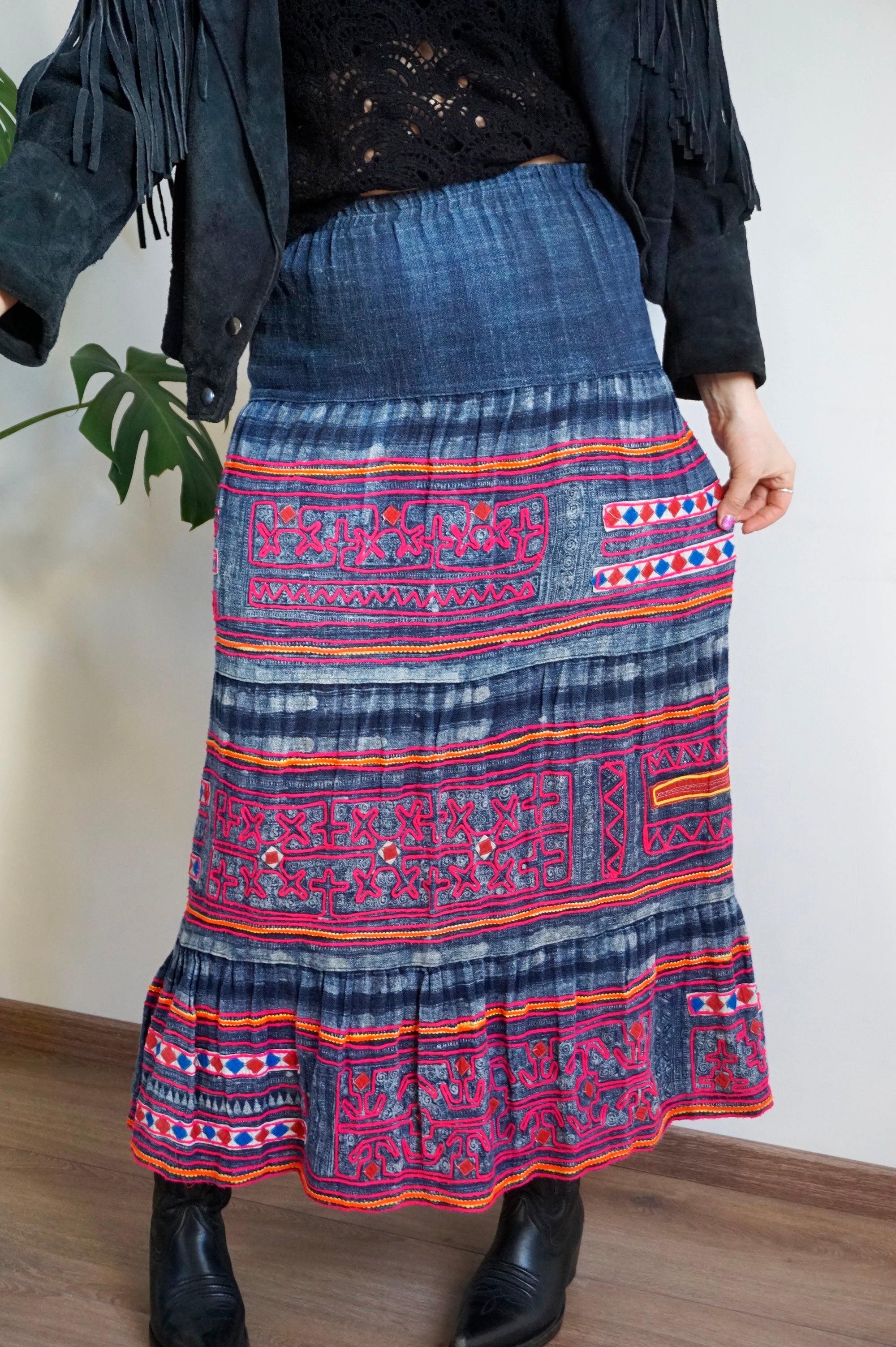 Free Spirit - Vintage Embroidered Skirt - Cotton - M