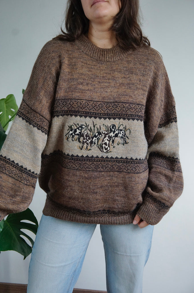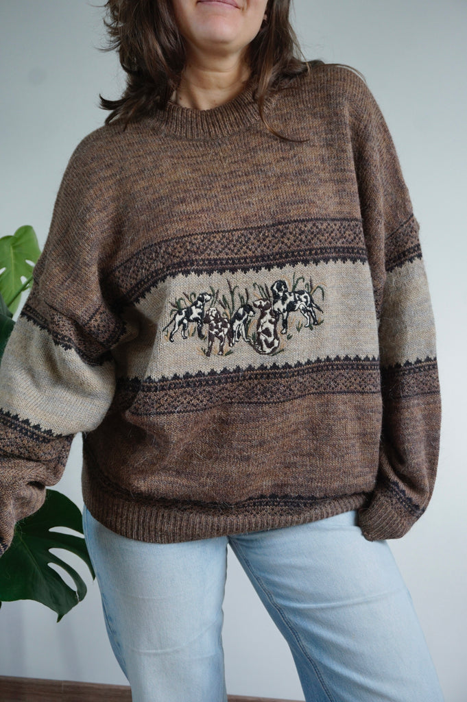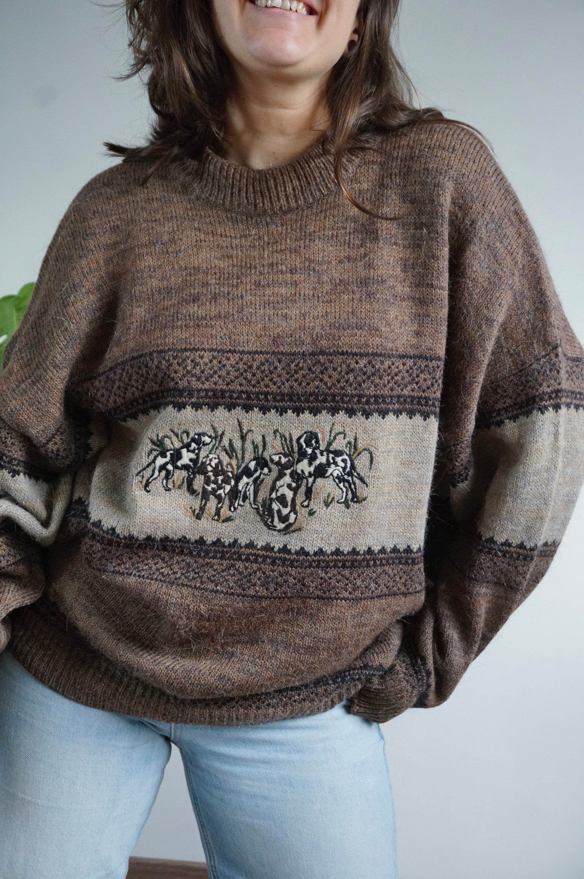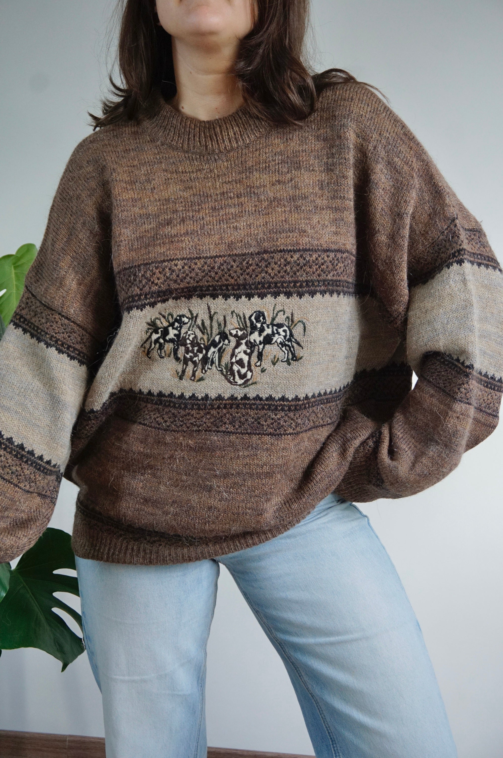 Dog Mom - Vintage Embroidered Sweater - Wool - Unisex - XL