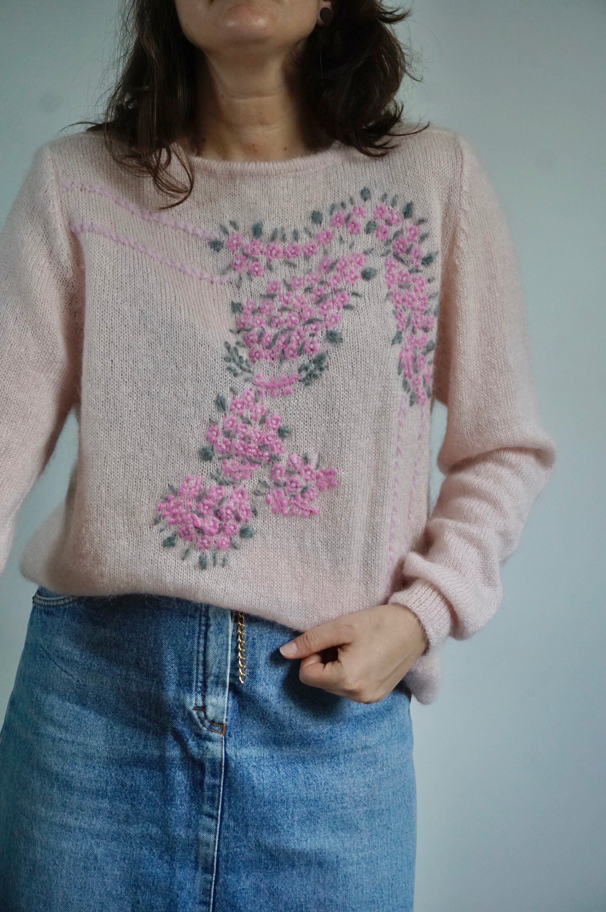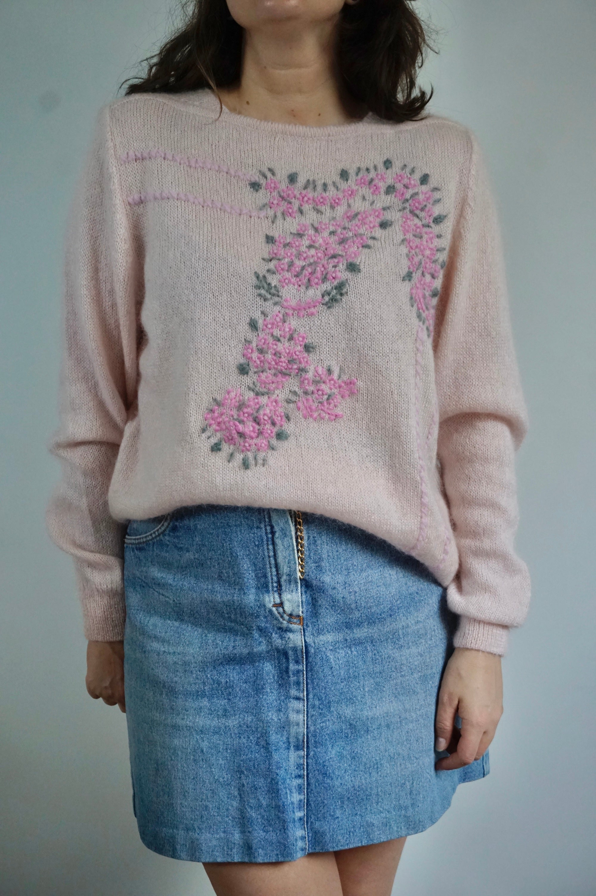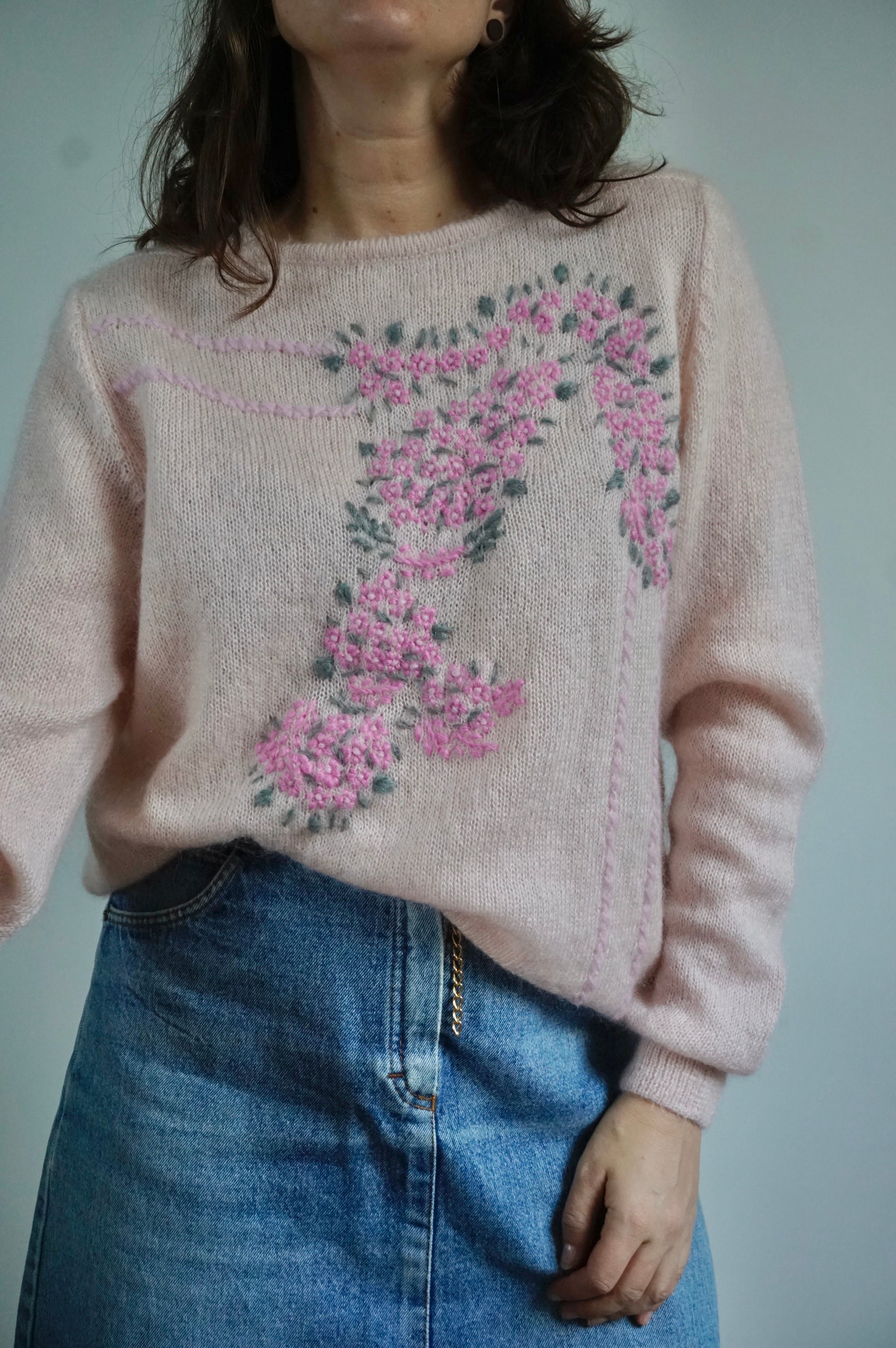 Flower Rain - Vintage Mohair Wool Sweater - M/L