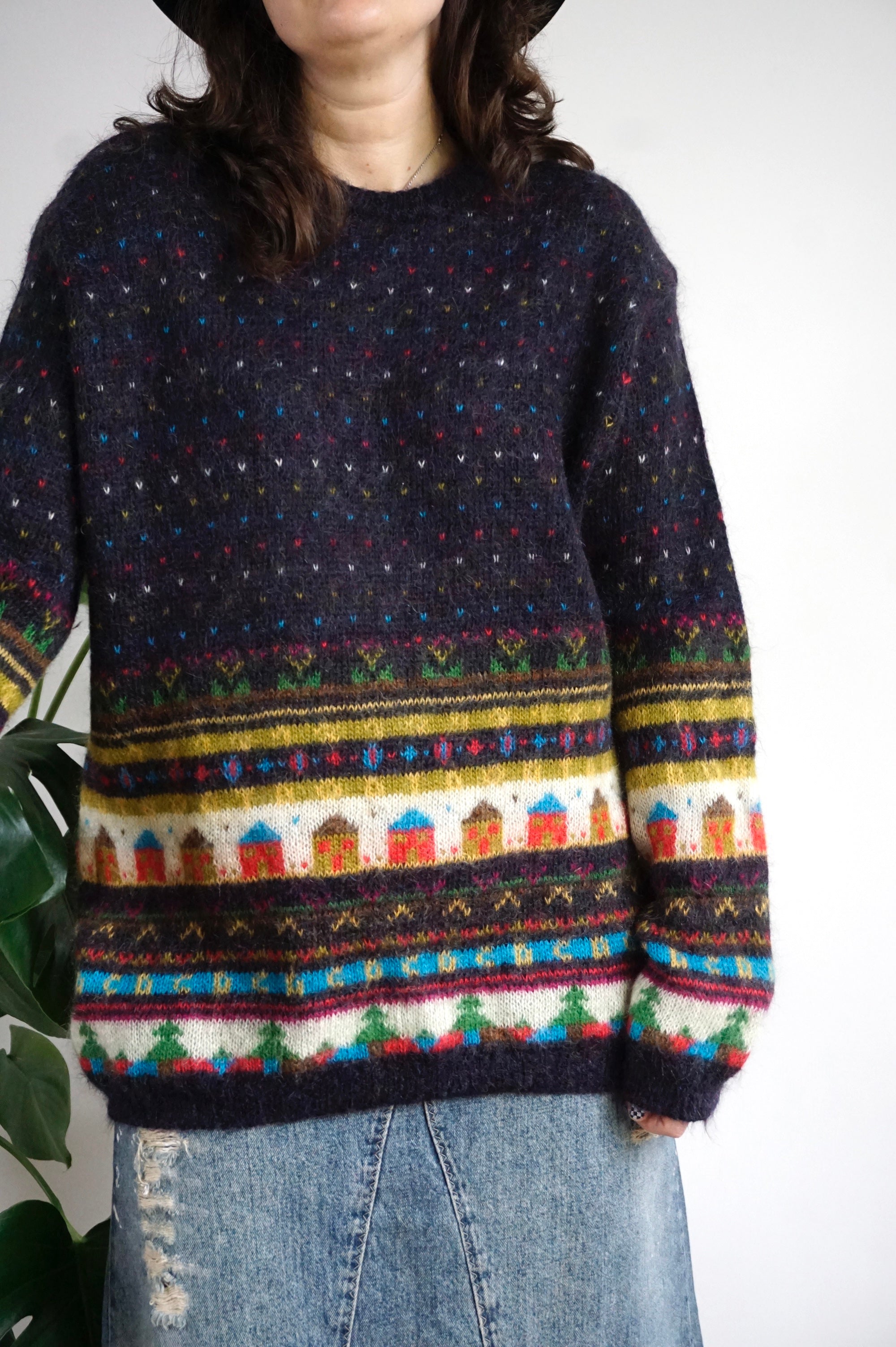 Happy Little Street - Vintage Wool Sweater - Unisex - L/XL