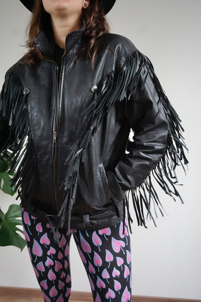 Loose Ends - Vintage Leather Fringe Biker Jacket - M