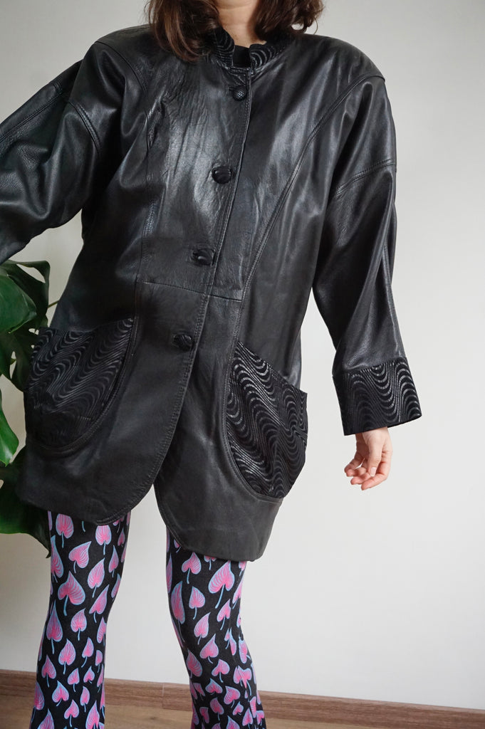Leather Waves - Vintage Leather Jacket/Trenchcoat - L
