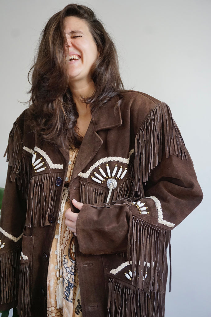 Cool girl’s attire - Vintage Suède Fringe Coat - Western/Cowboy style - L/XL