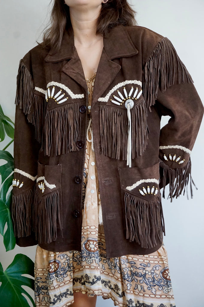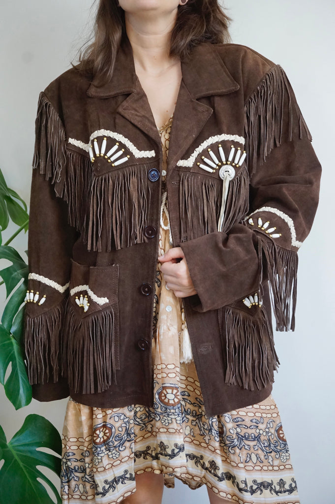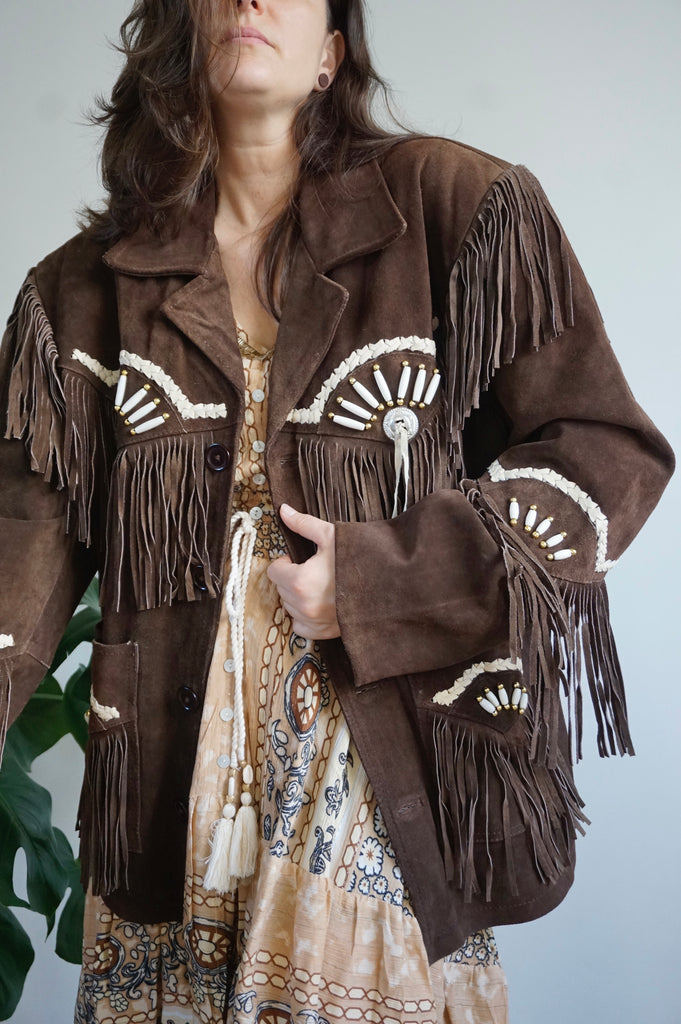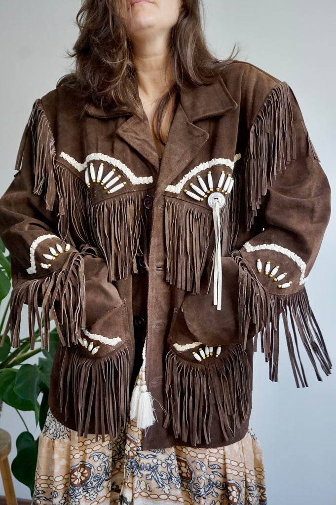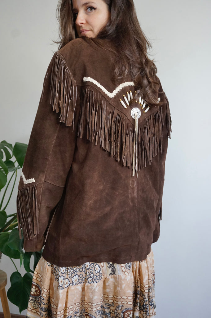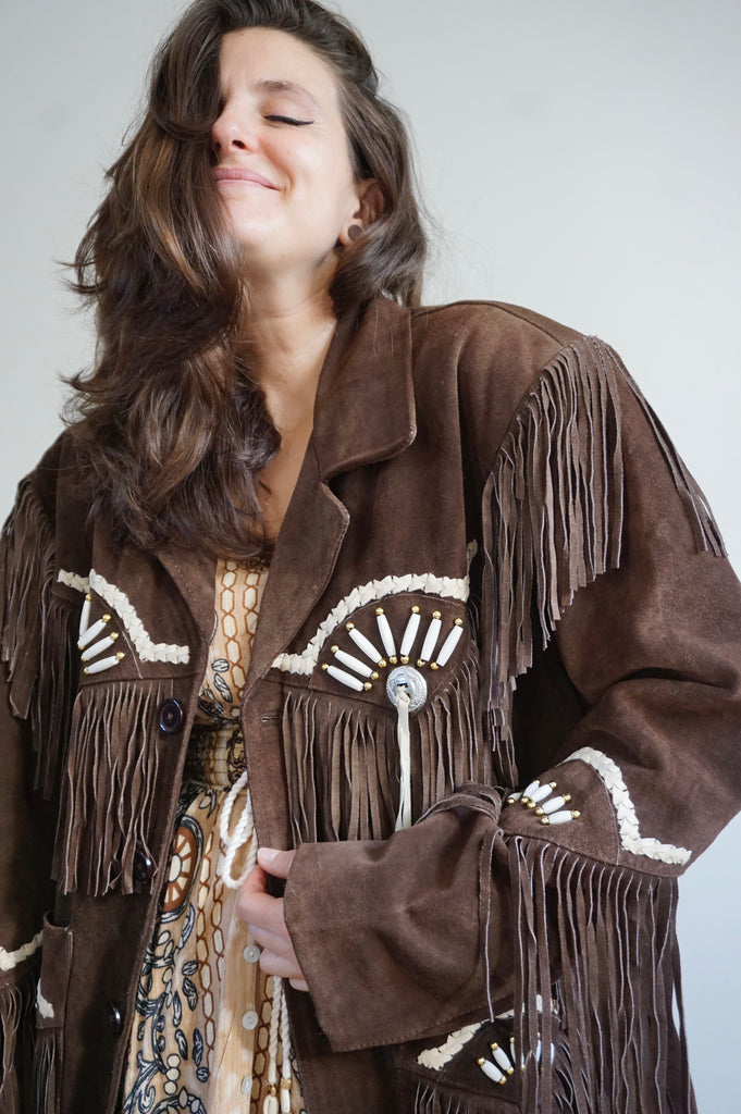 Cool girl’s attire - Vintage Suède Fringe Coat - Western/Cowboy style - L/XL