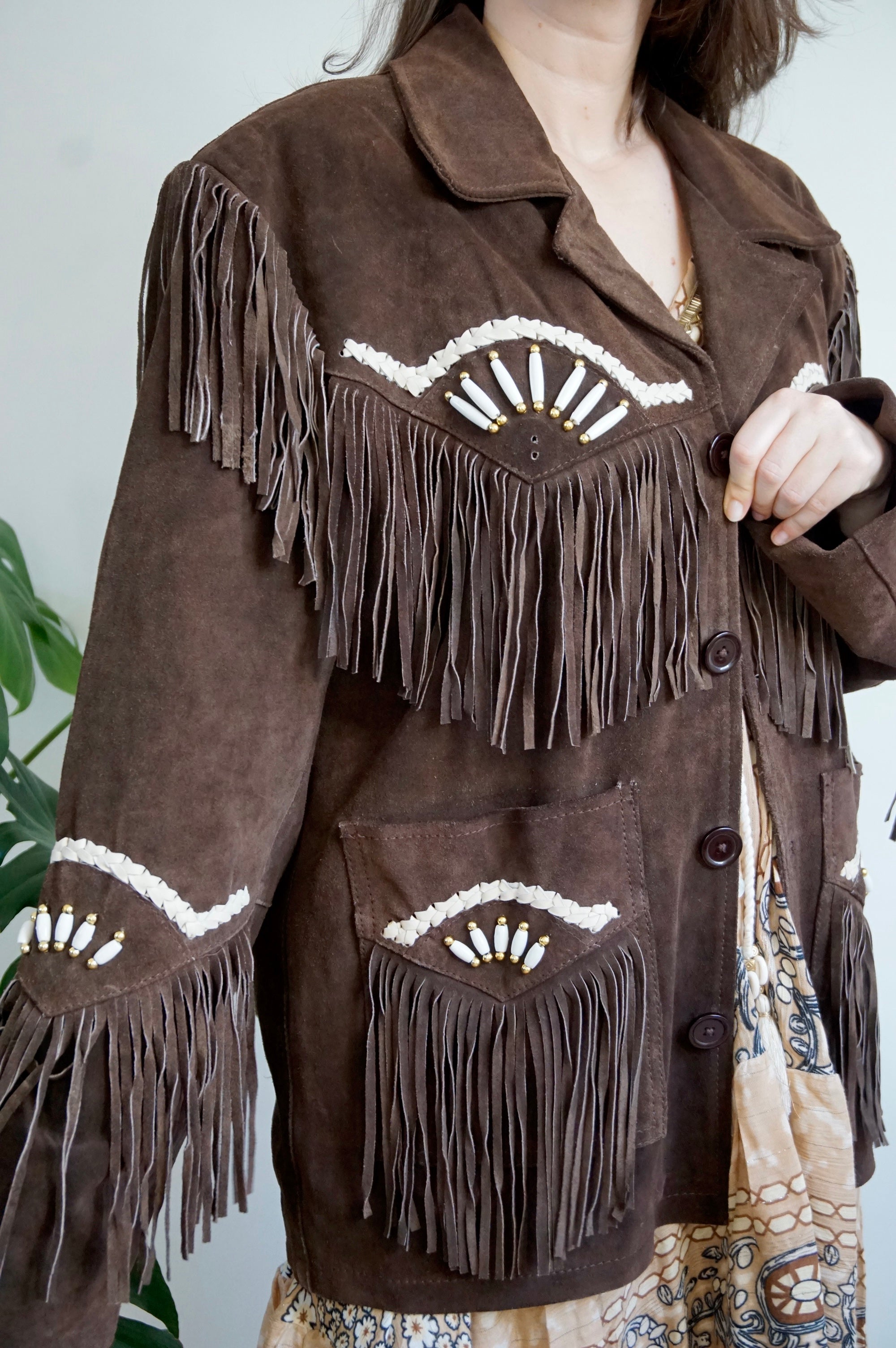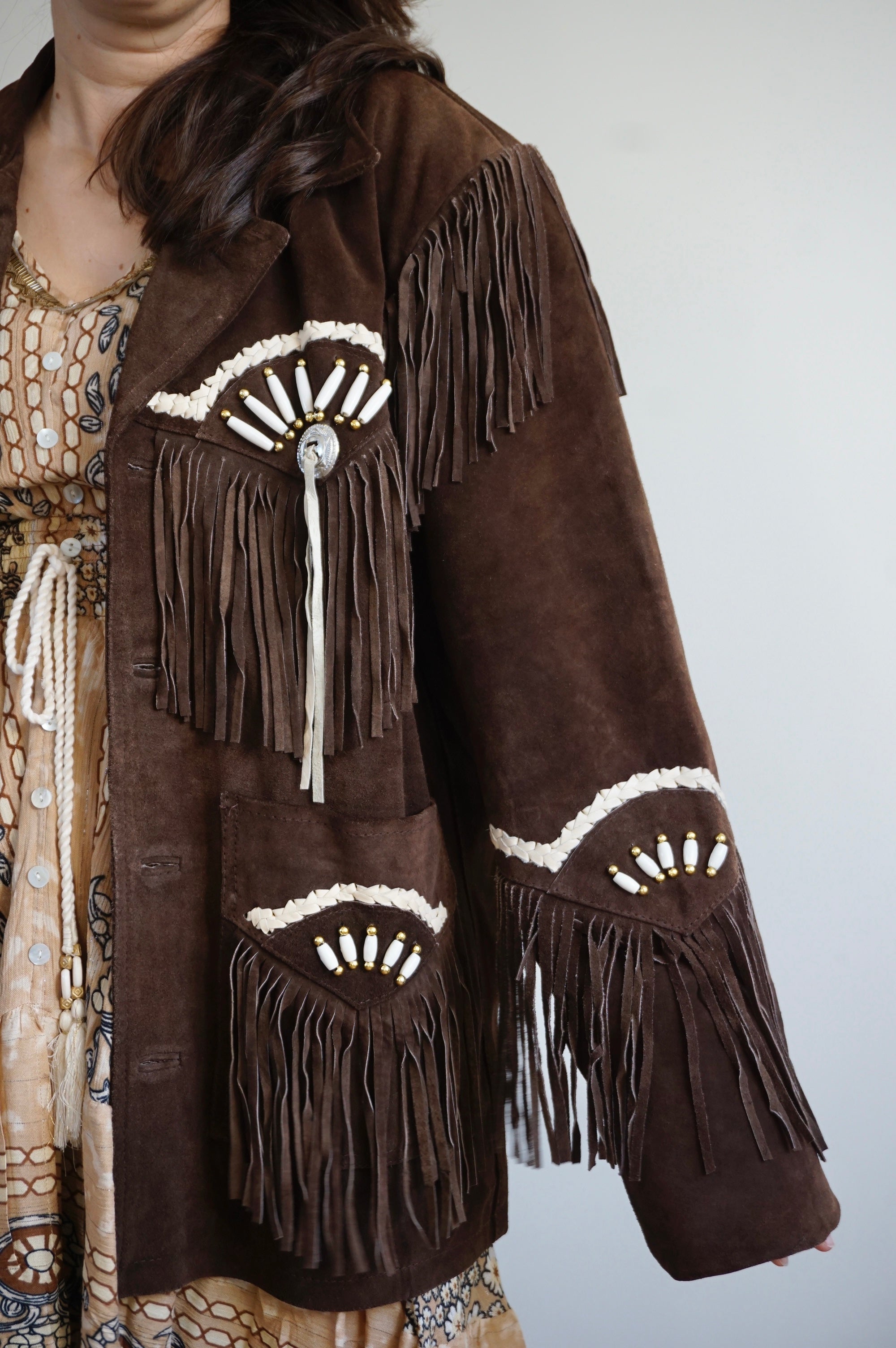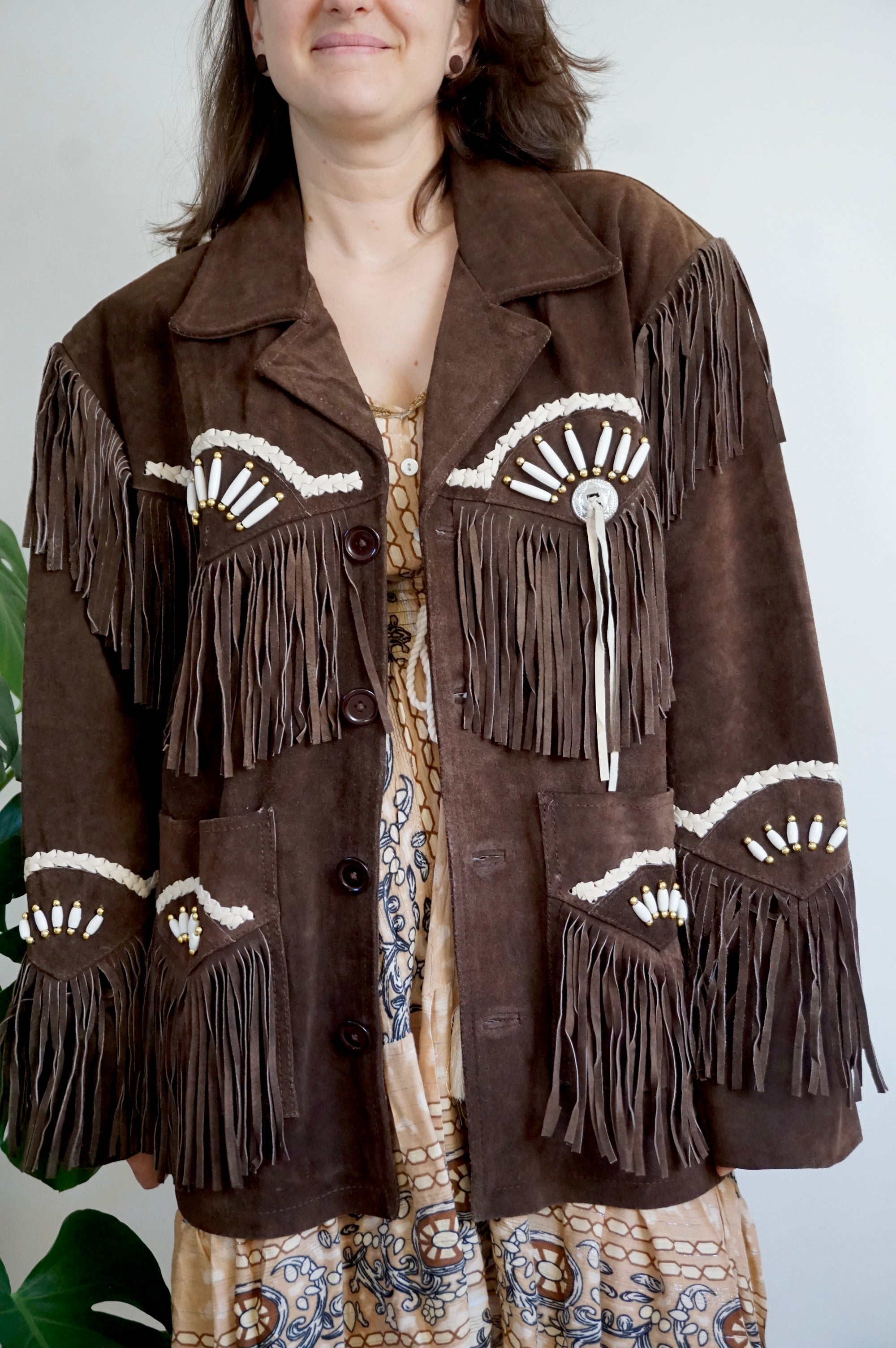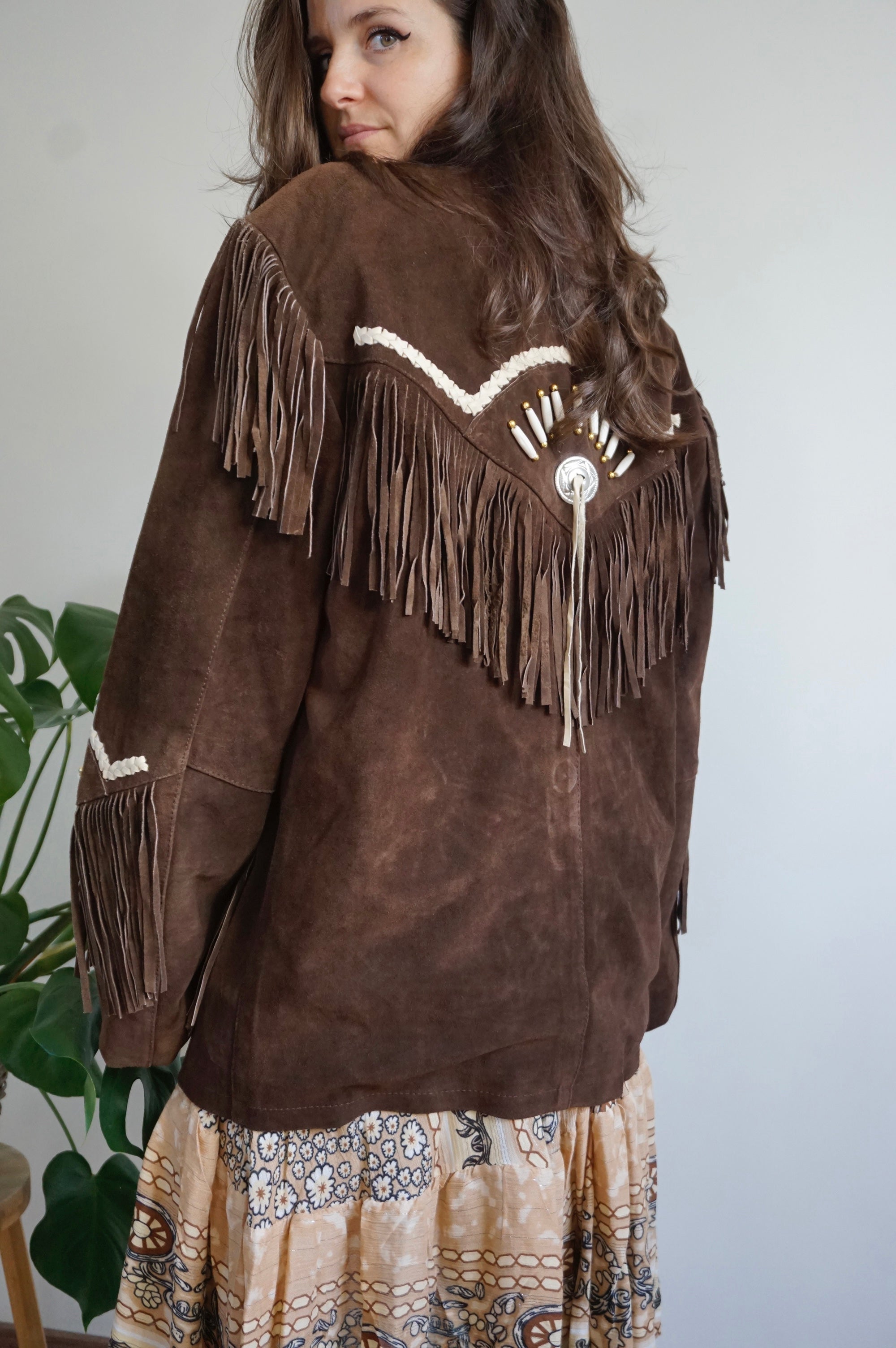 Cool girl’s attire - Vintage Suède Fringe Coat - Western/Cowboy style - L/XL