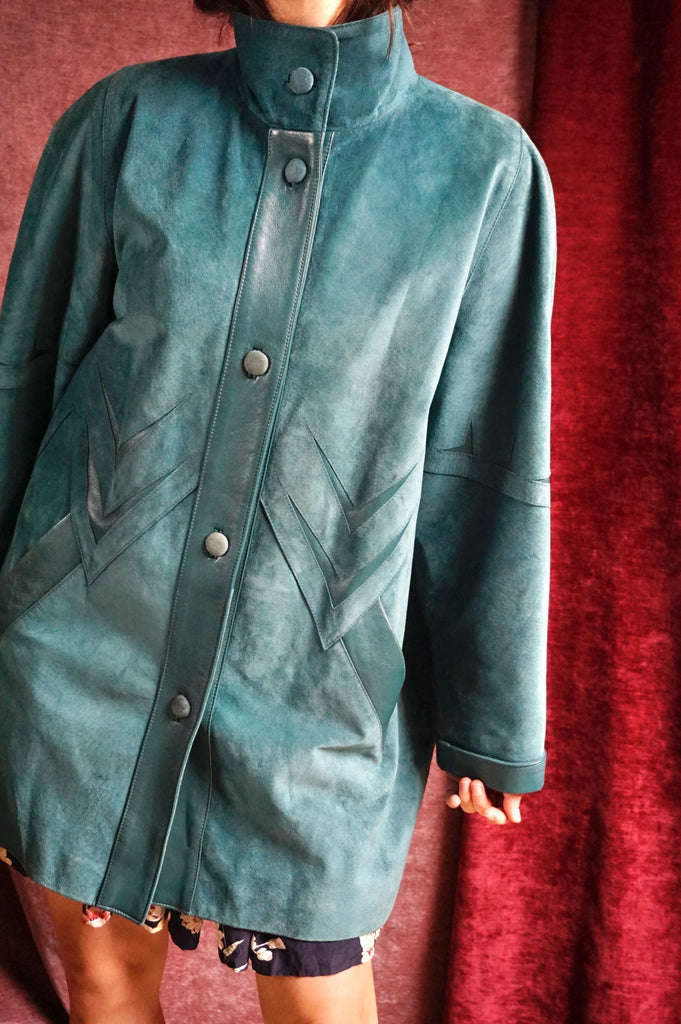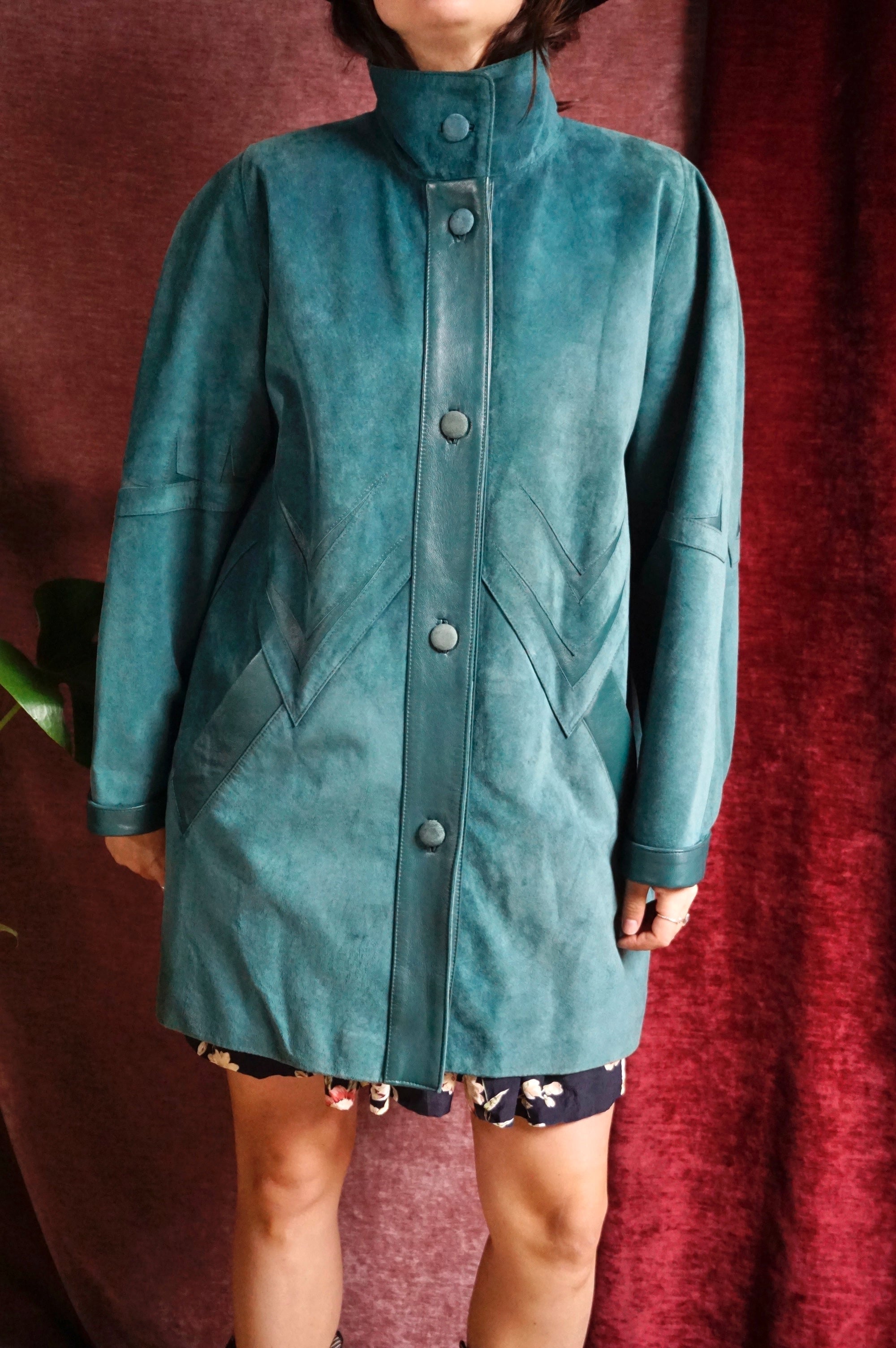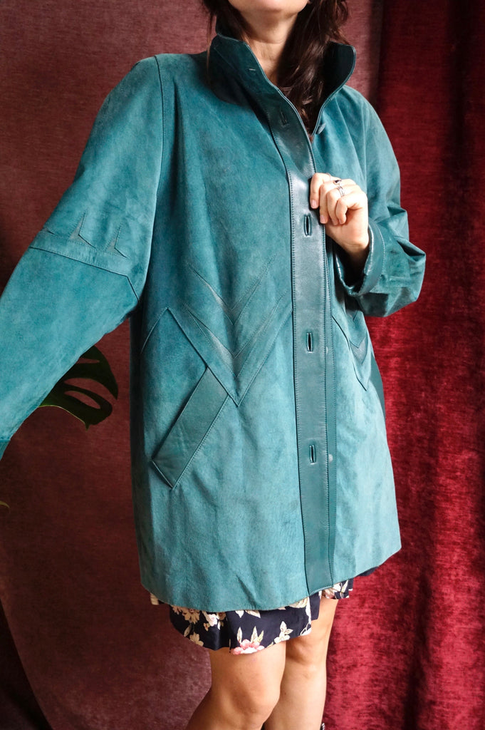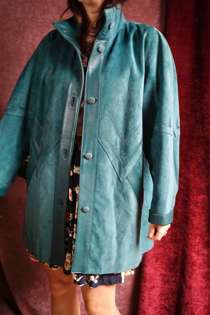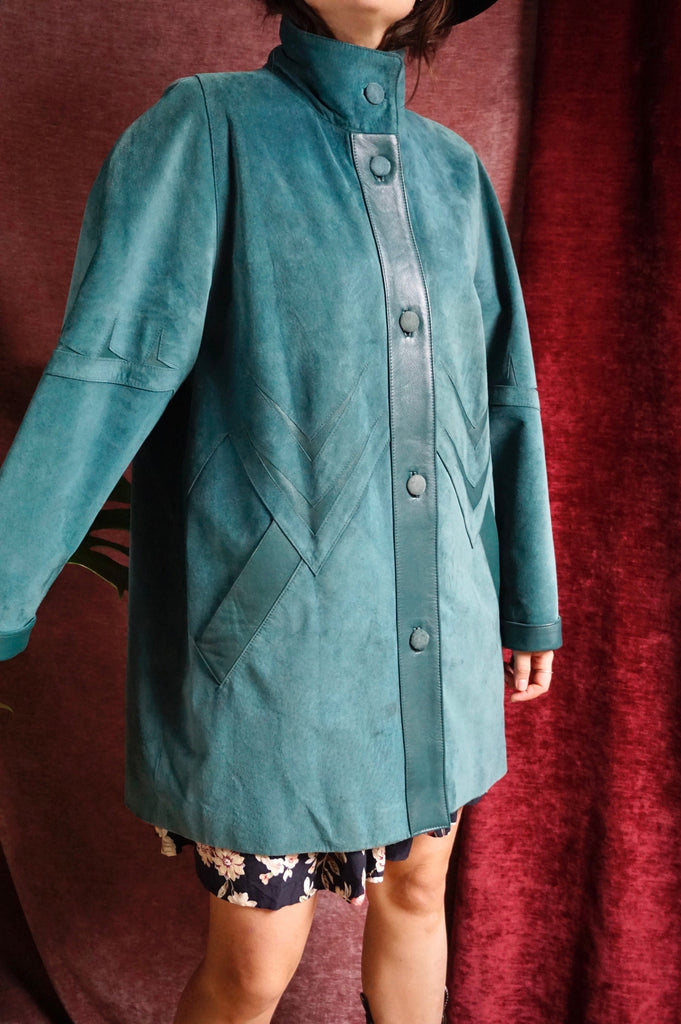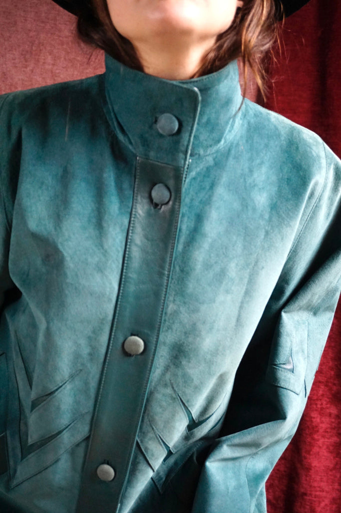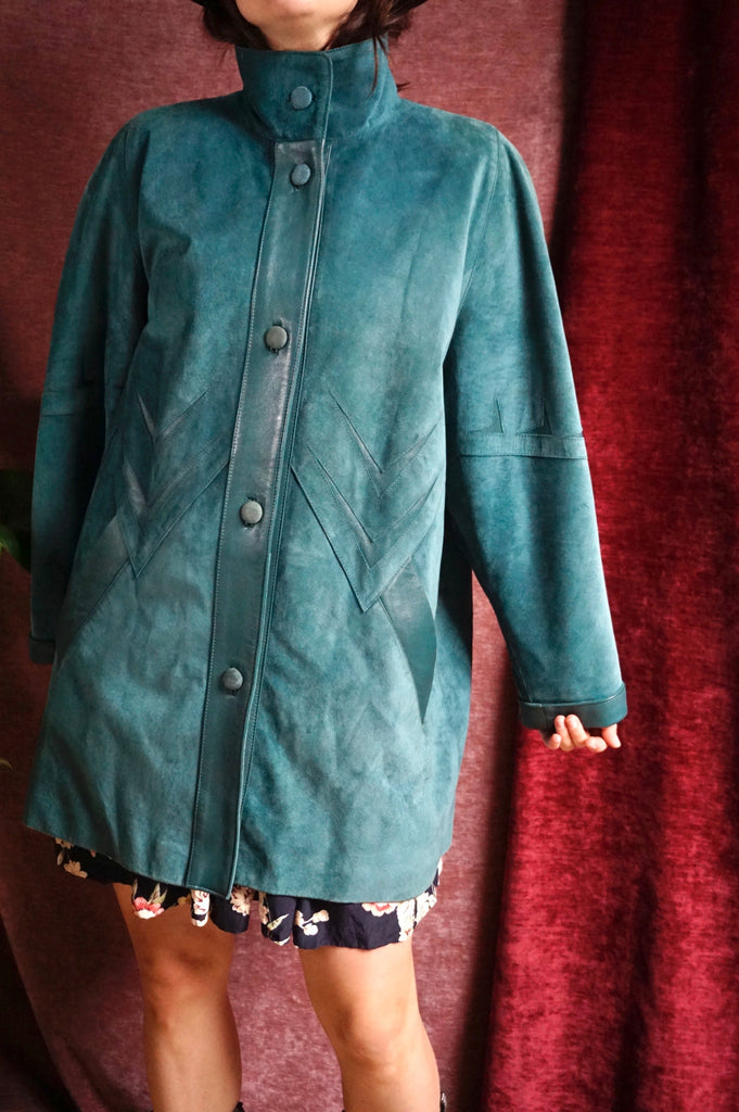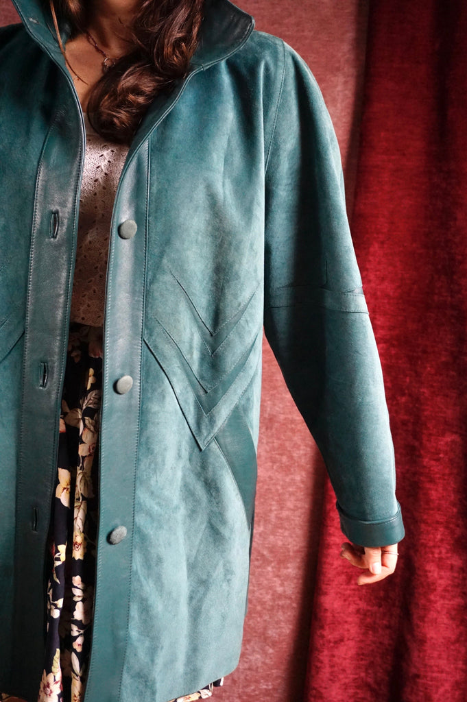Green Flags - Vintage Suède Leather Trenchcoat - M/L