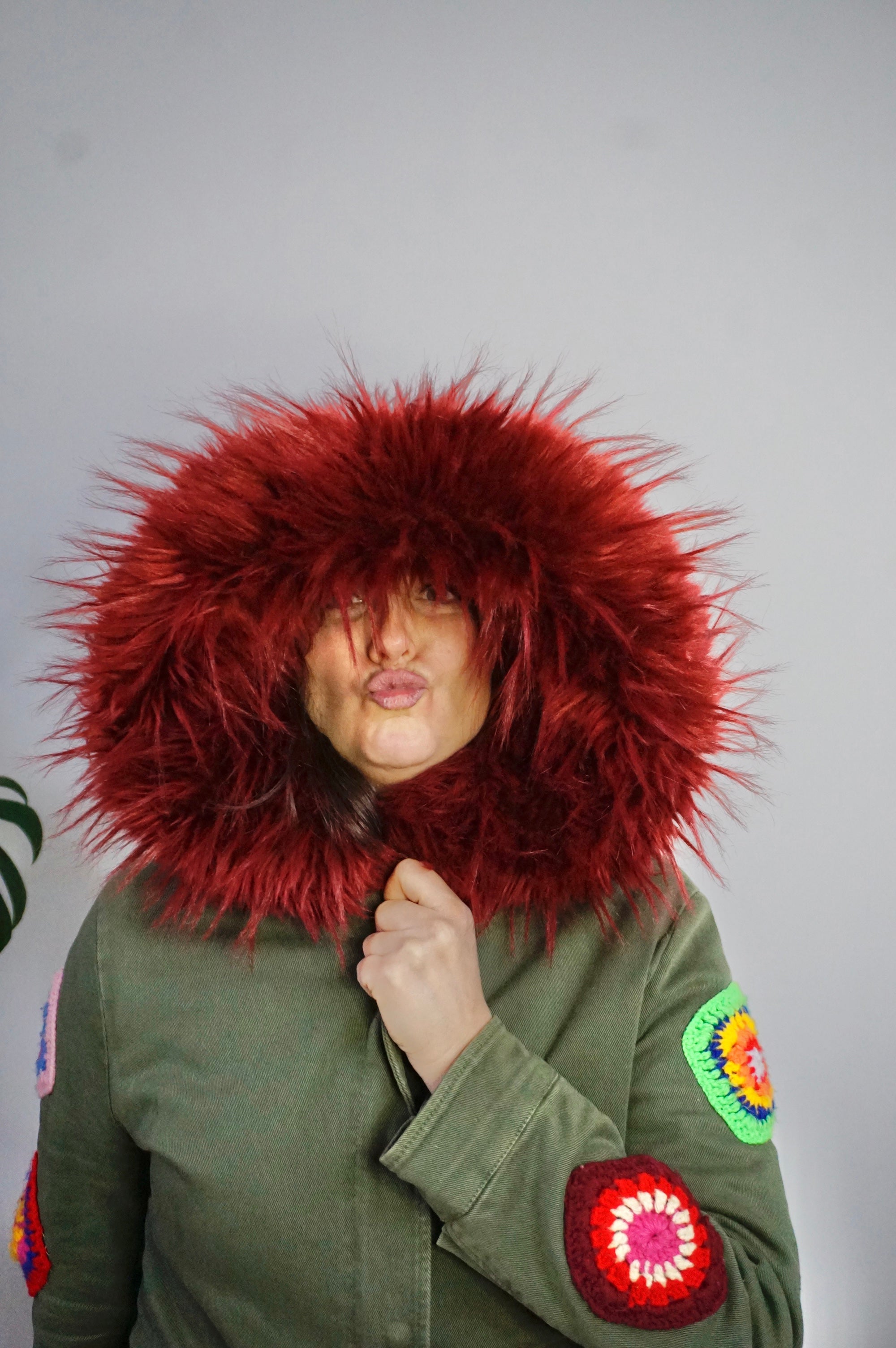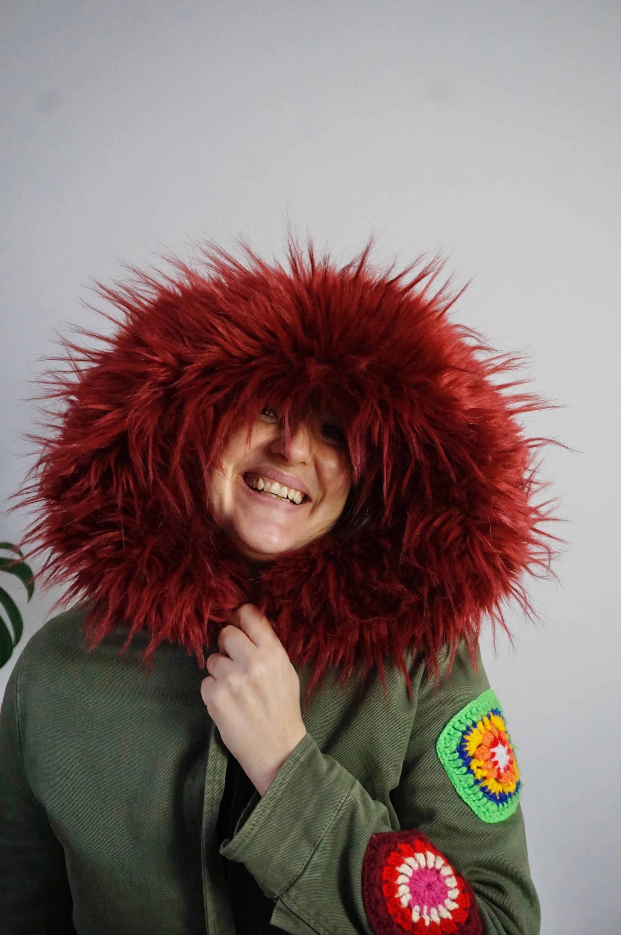 Material: Cotton, Faux Fur, Polyester