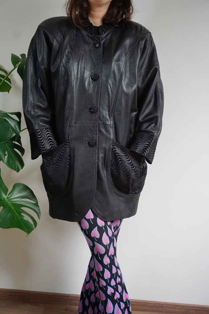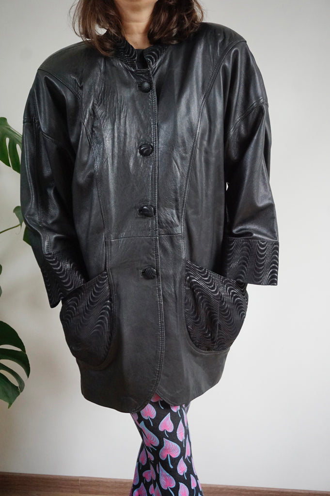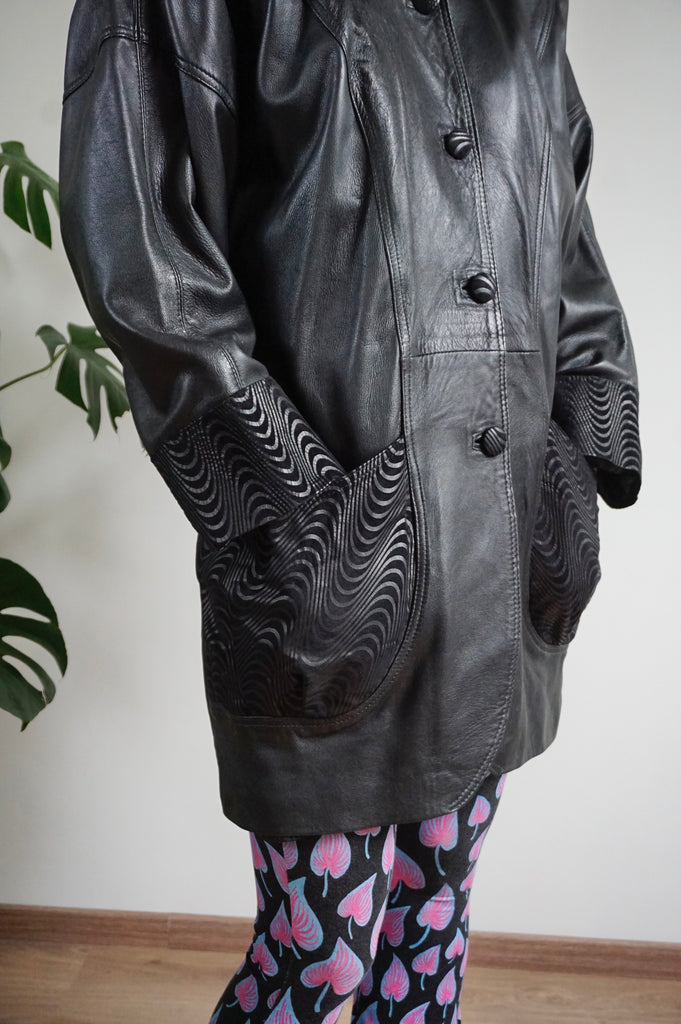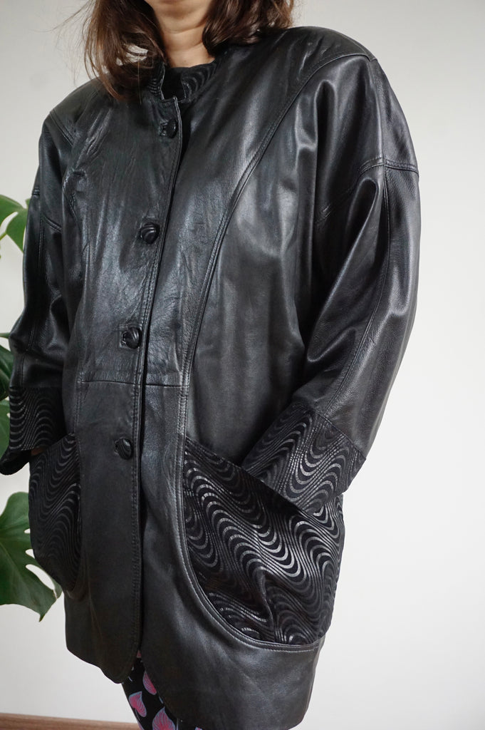Leather Waves - Vintage Leather Jacket/Trenchcoat - L