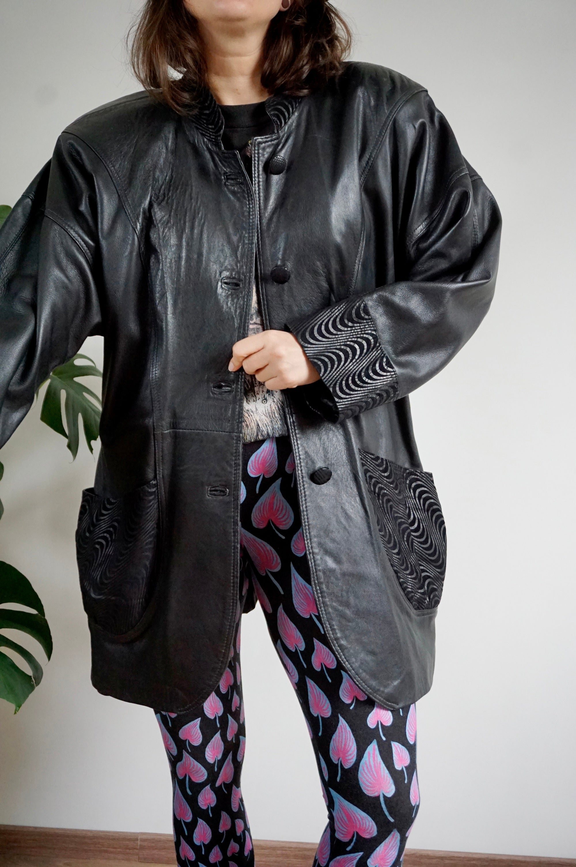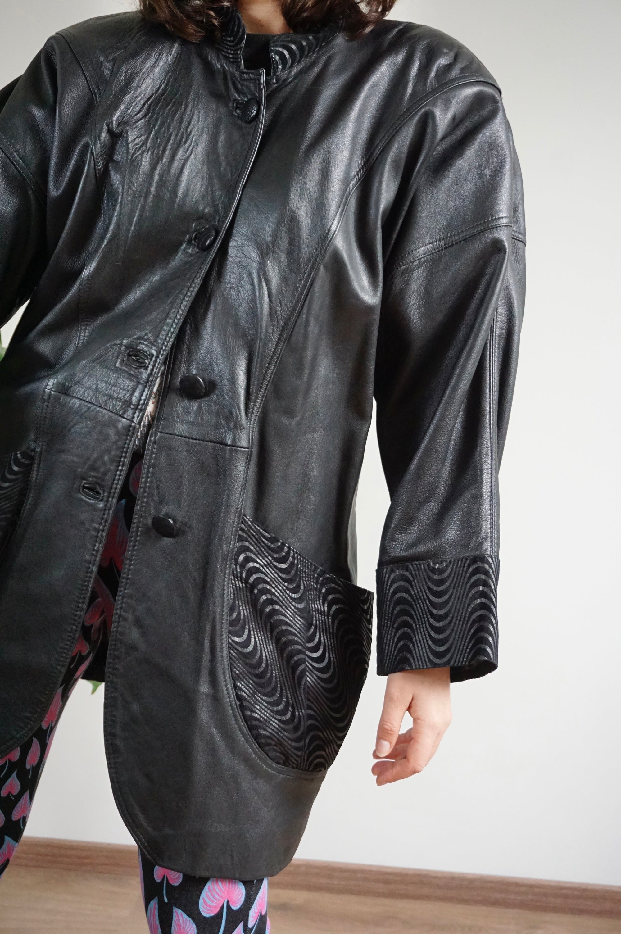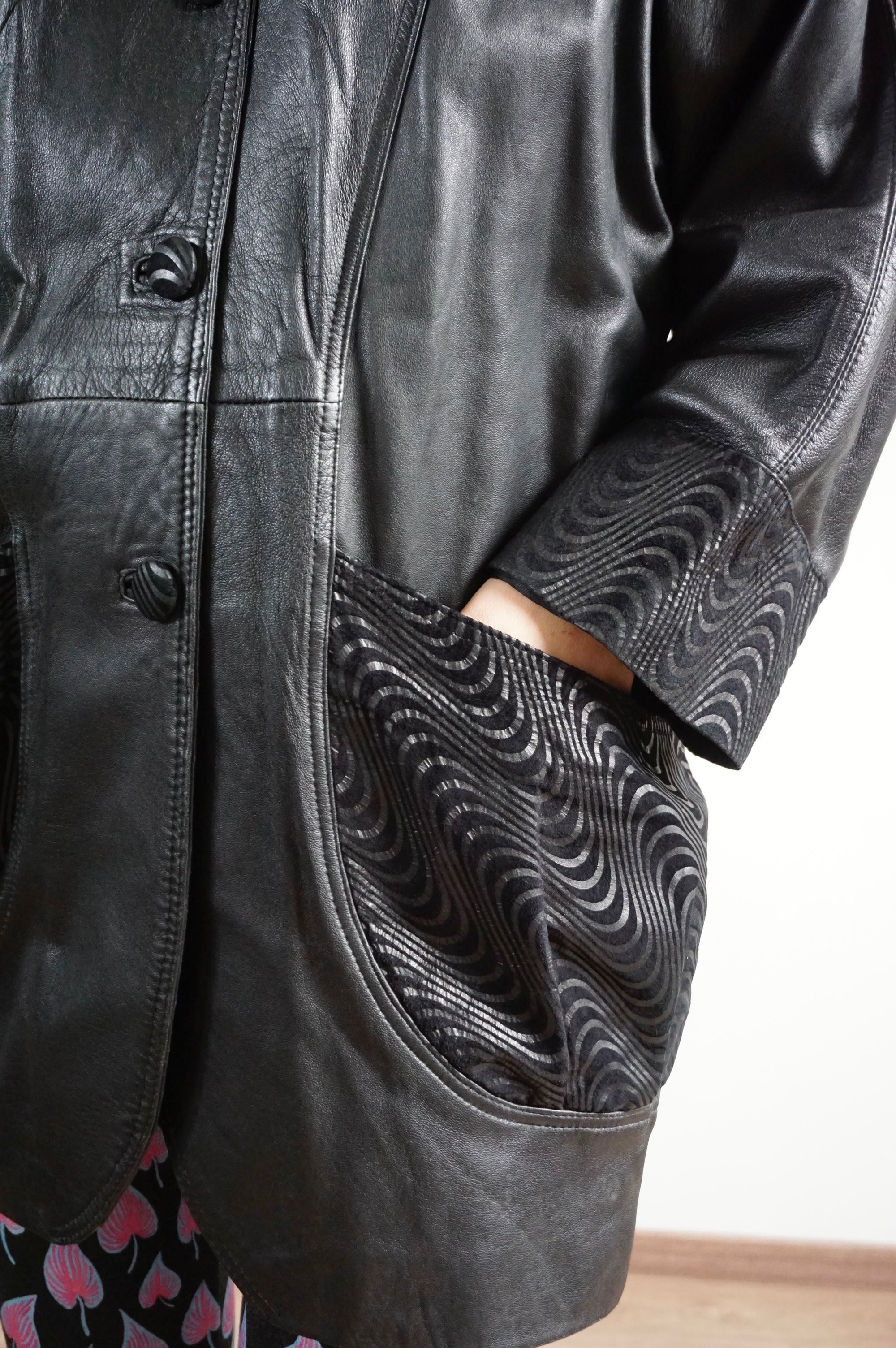 Leather Waves - Vintage Leather Jacket/Trenchcoat - L