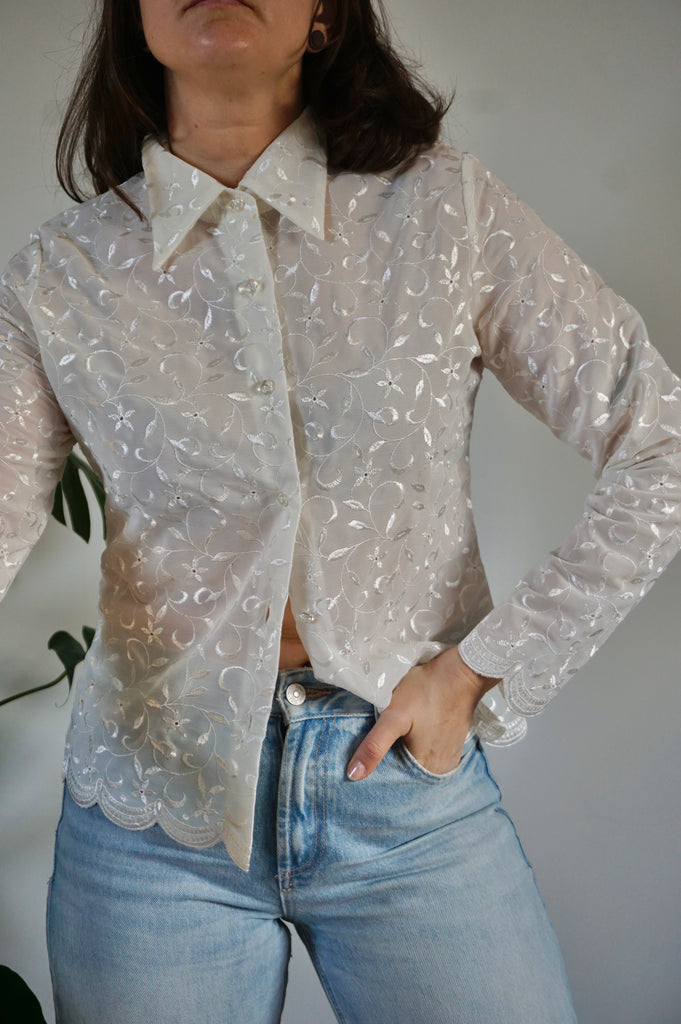 Clean slate - Vintage Blouse - Broderie Colar - M
