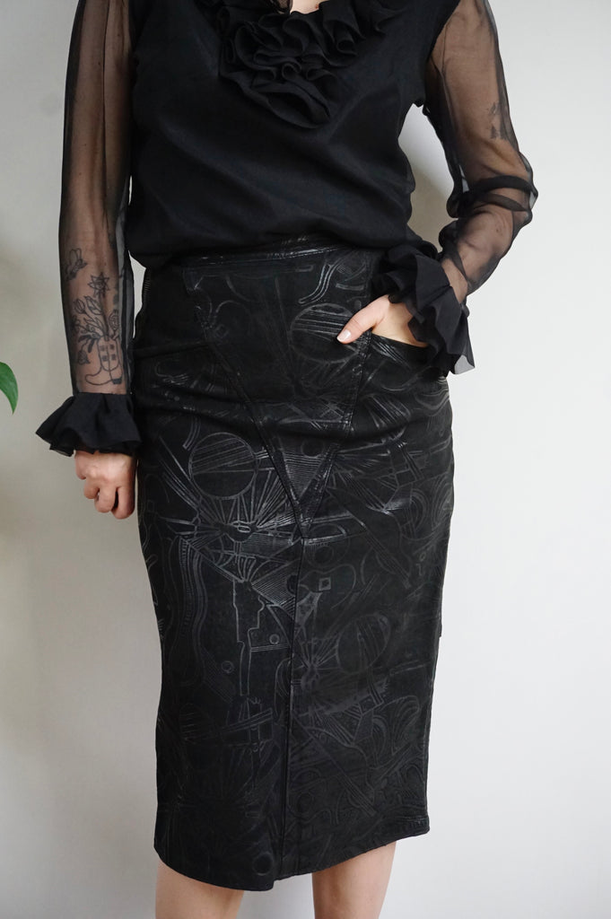 Secret Message - Vintage Printed Leather Skirt - S