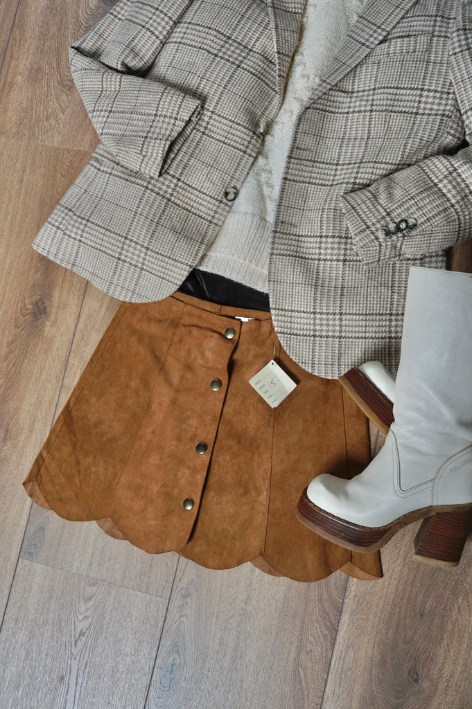 Vera Pelle Brown - Vintage Suède Scallop Skirt - 70s Deadstock - XS