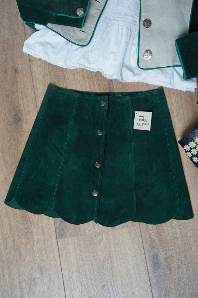 Vera Pelle Green - Vintage Suède Scallop Skirt - 70s Deadstock - XS