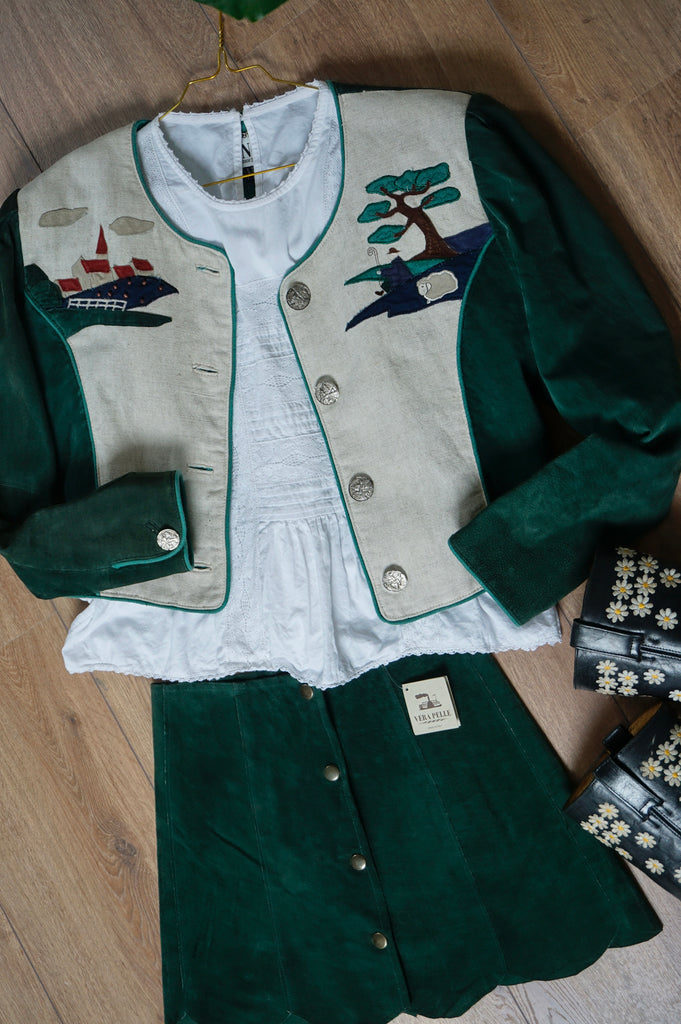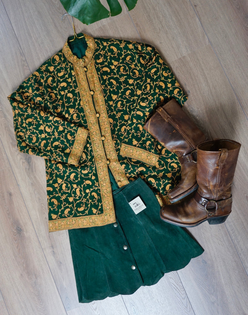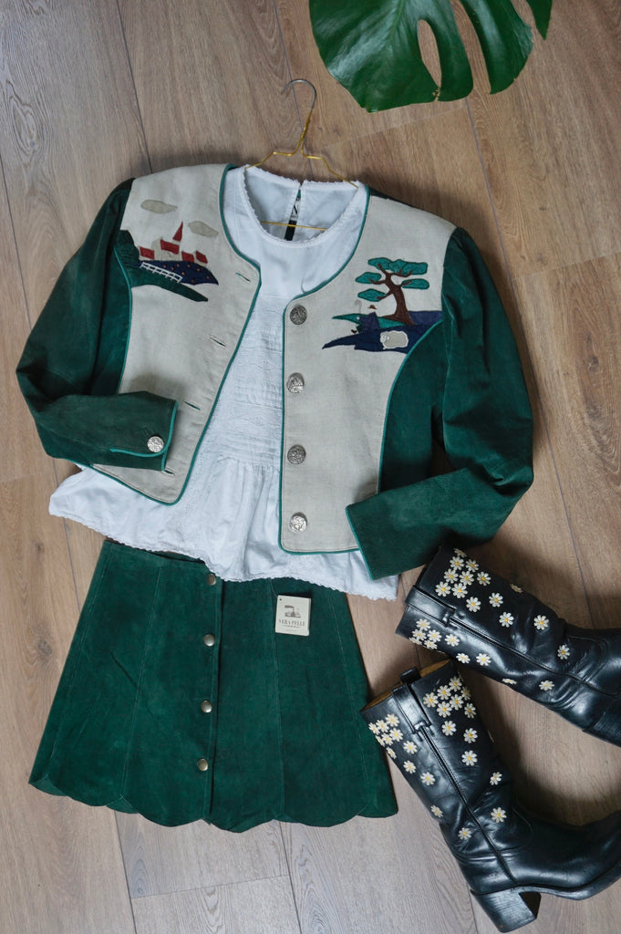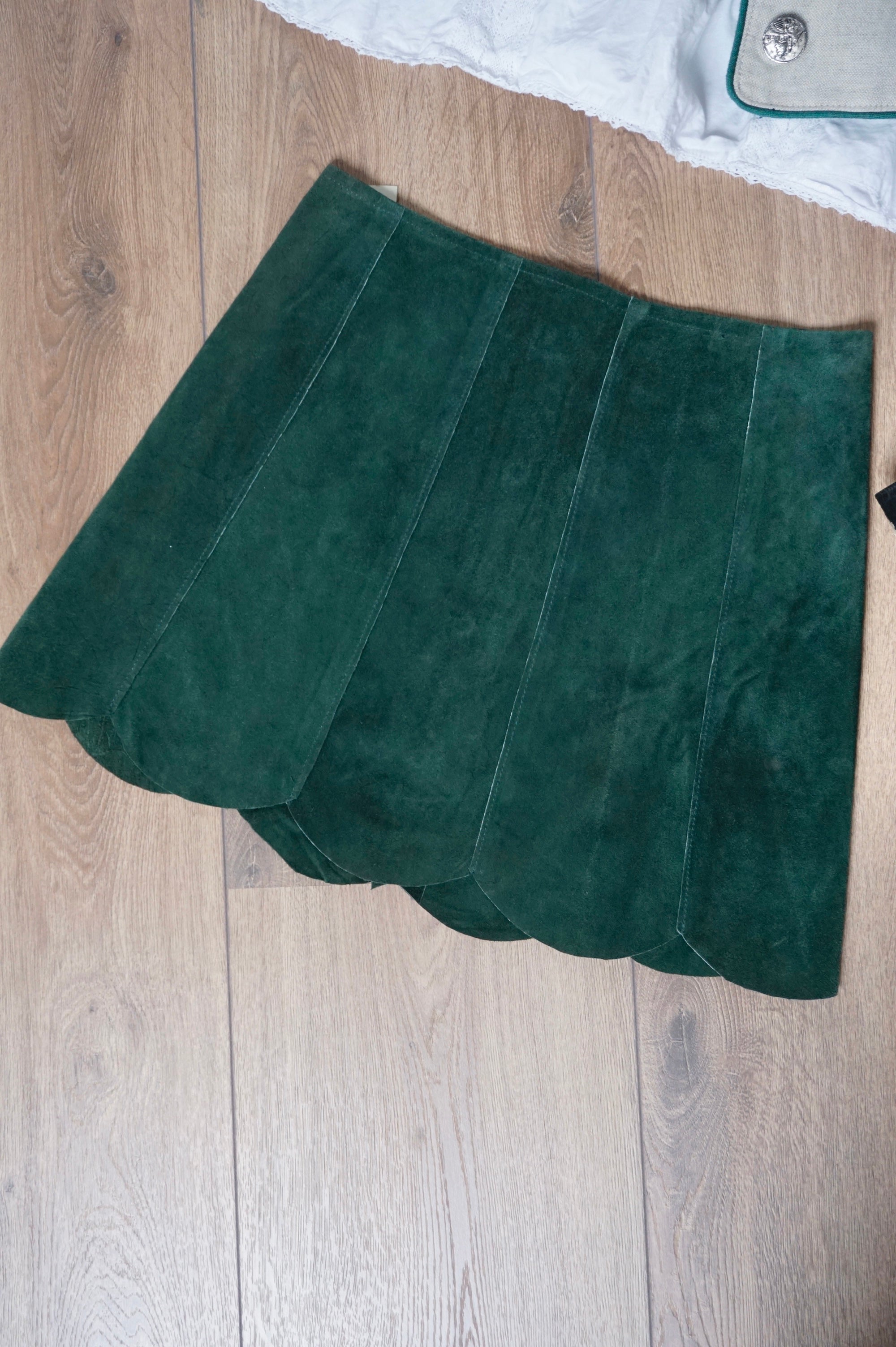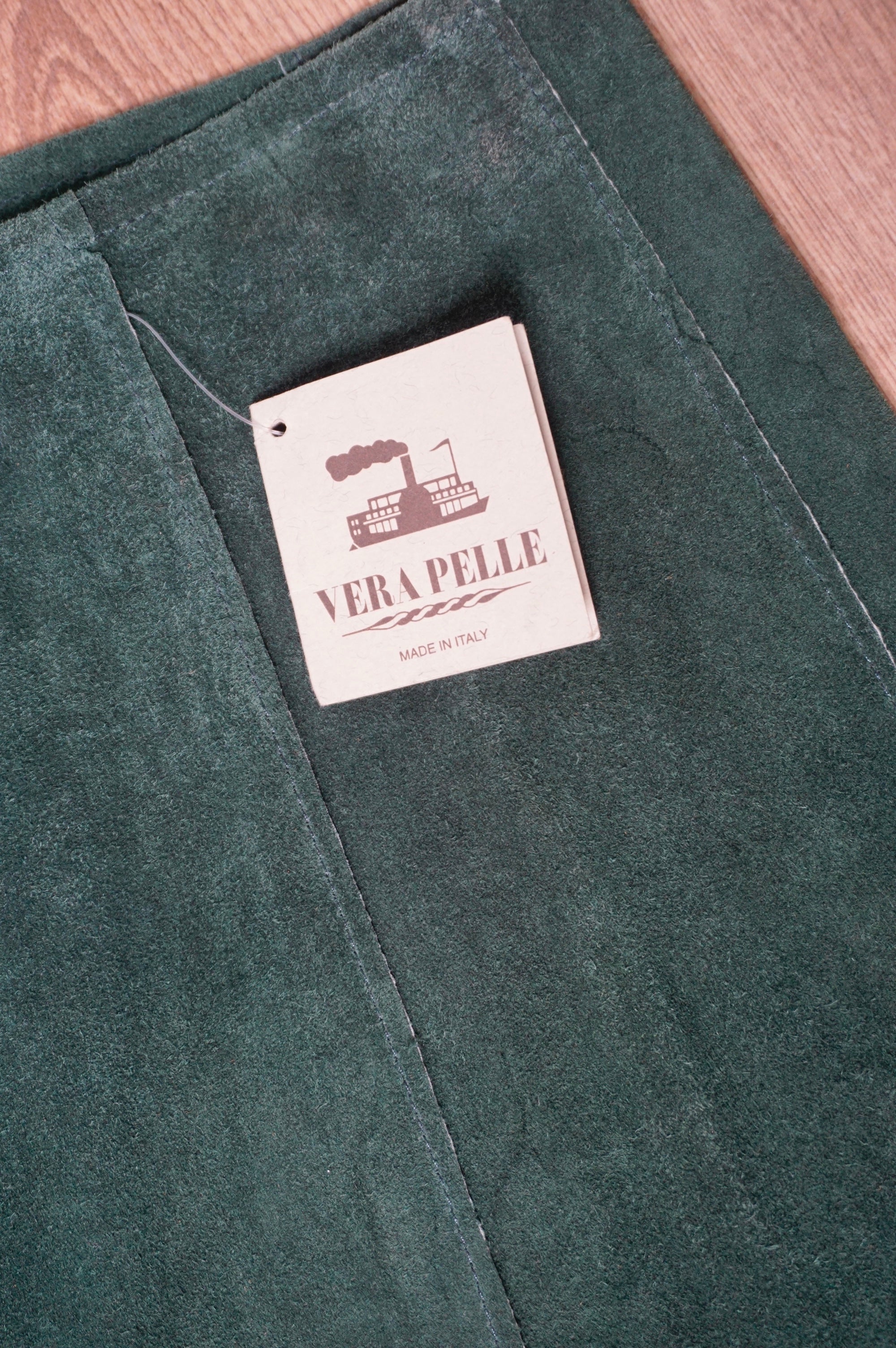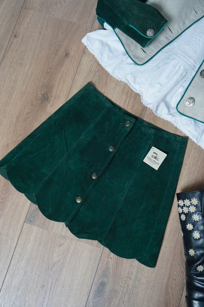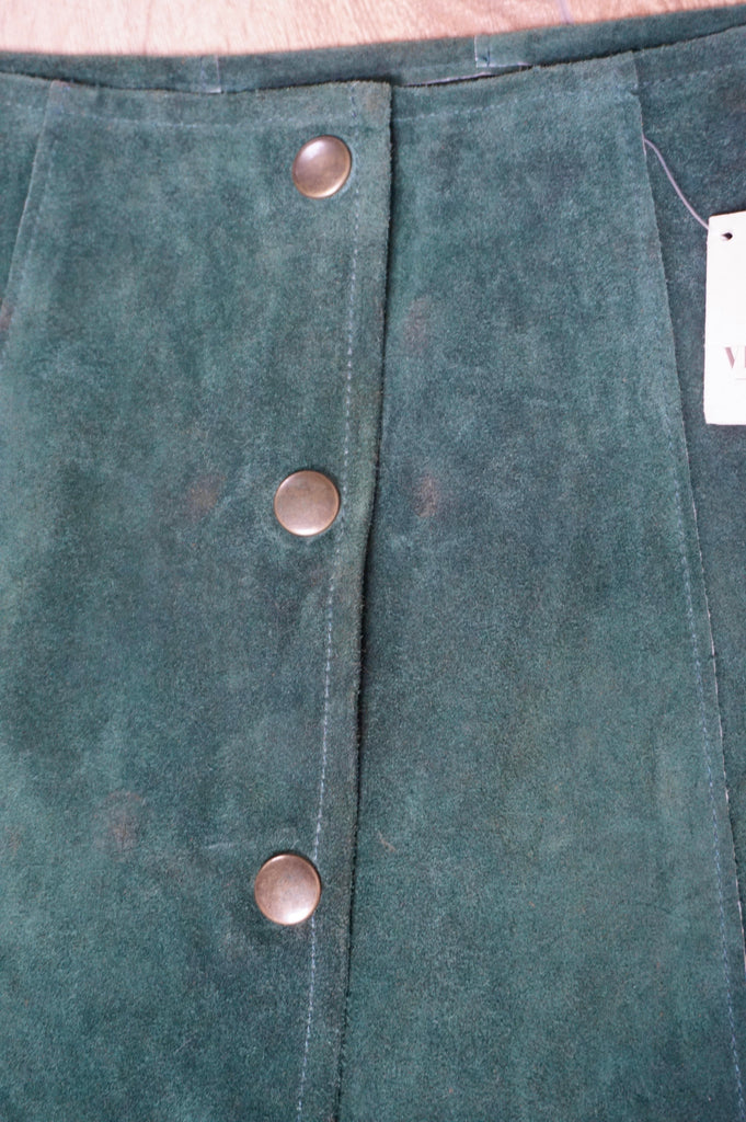 Vera Pelle Green - Vintage Suède Scallop Skirt - 70s Deadstock - XS