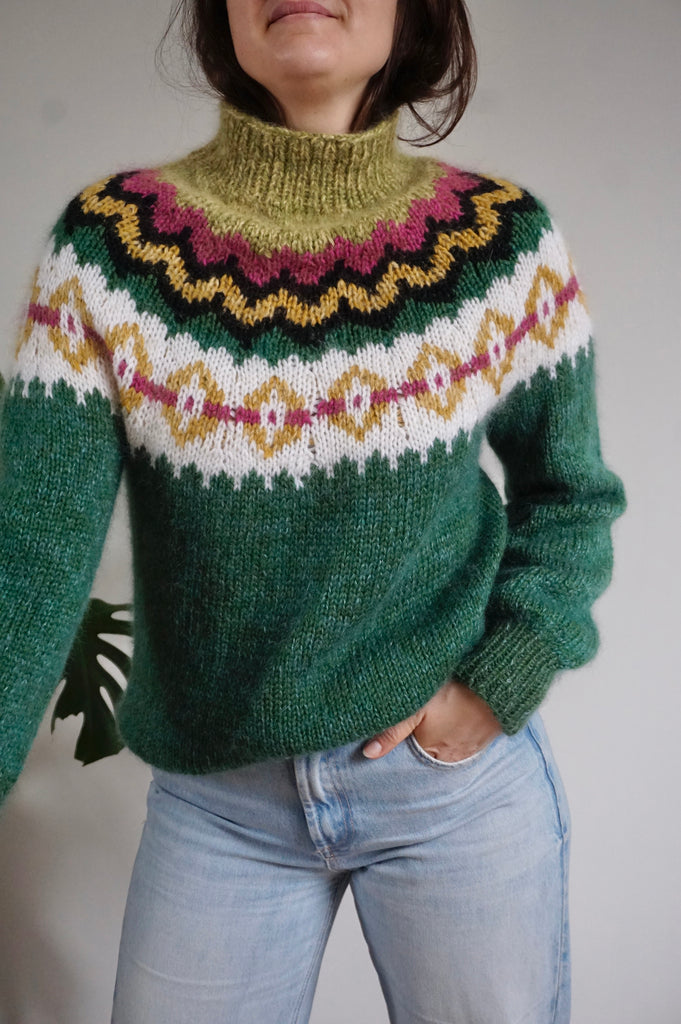 Miss Green - Vintage Faire Isle Sweater - Mohair Wool - M