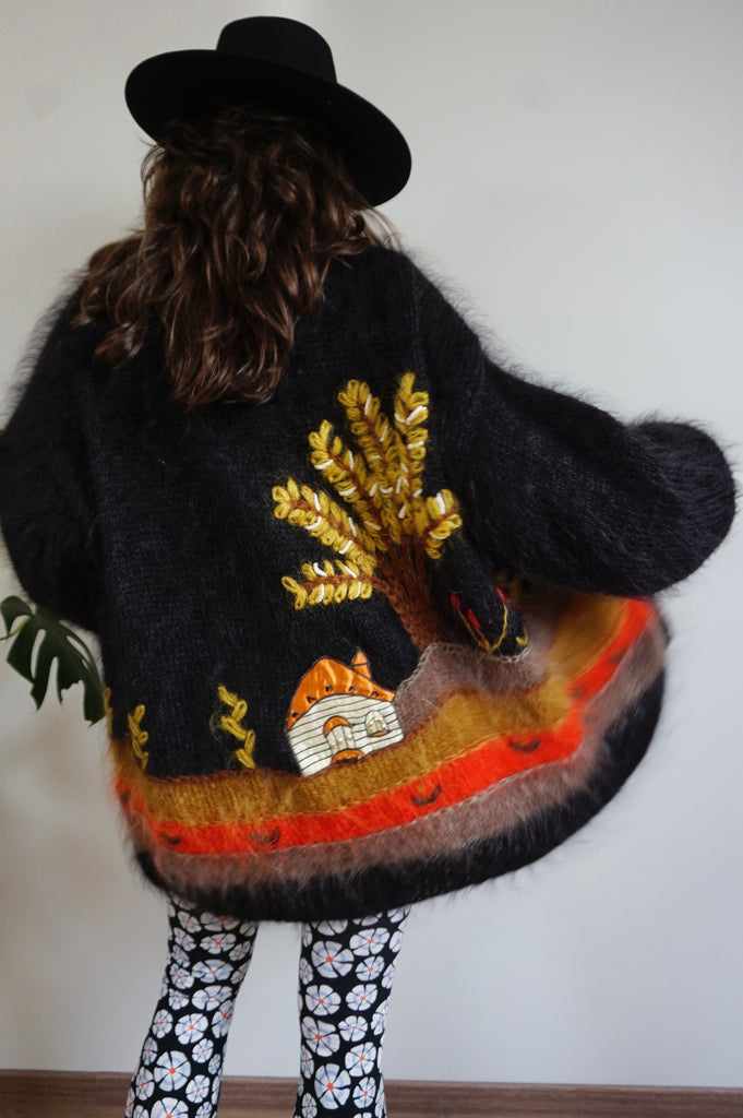 Happy Home - Vintage Cardigan - Mohair Wool - Embroidered Details - Free Size