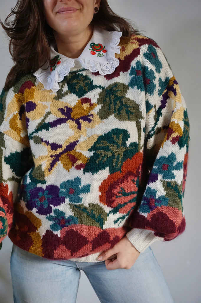 Forest Flowers - Vintage Sweater - Wool - Flower print - M/L