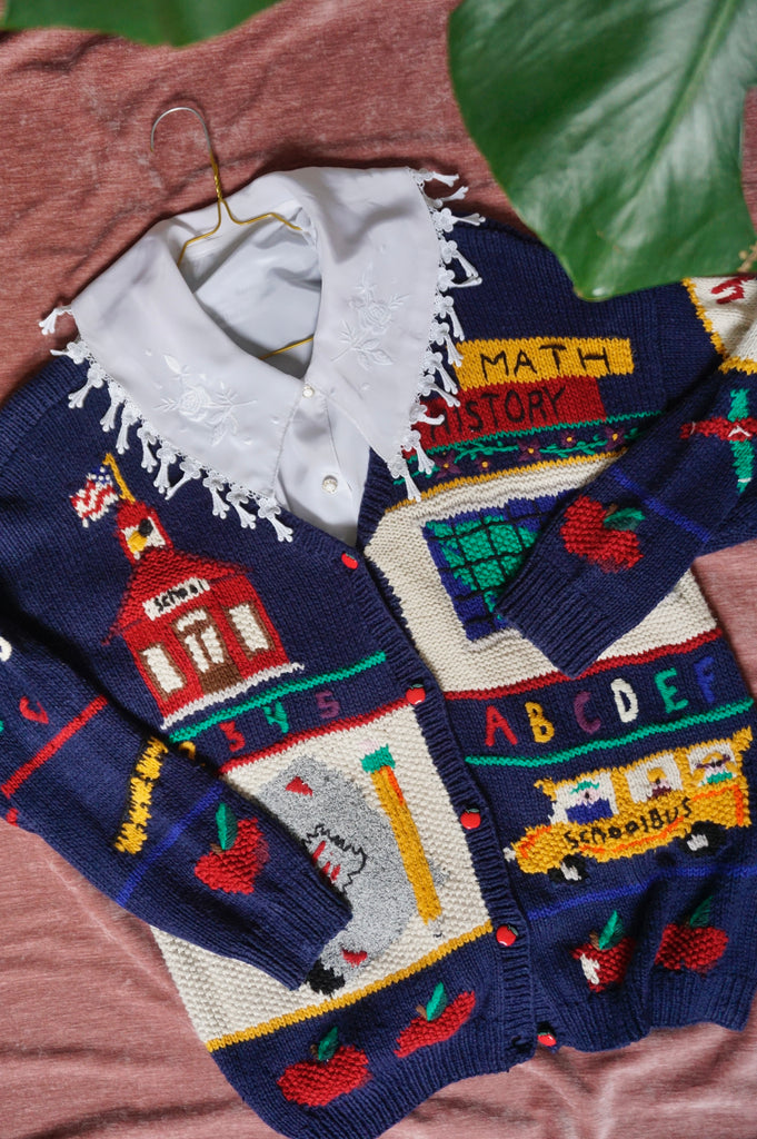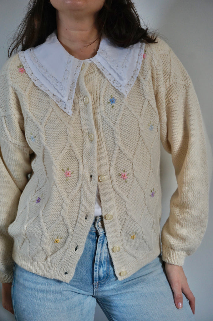 Floral Legend - Vintage Cardigan - Wool - Embroidered details - M
