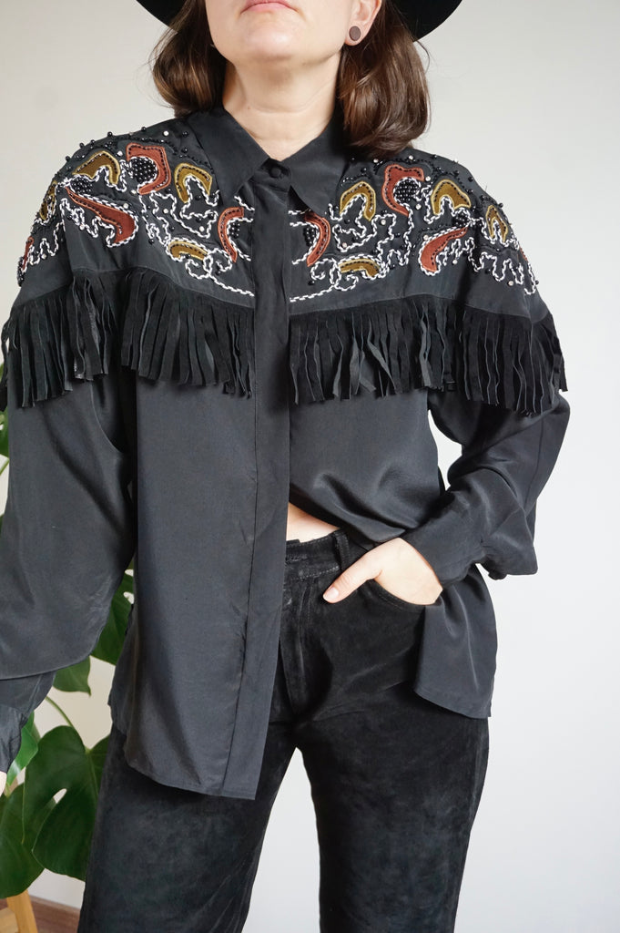 Flamboyant Cowboy - Vintage Western Blouse - 100% Silk - M/L