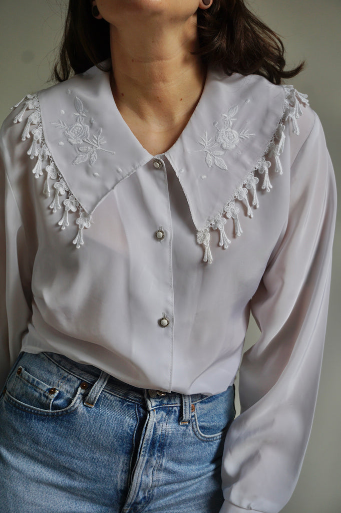 Big Collar Queen - Vintage Blouse - Embroidered details - M/L