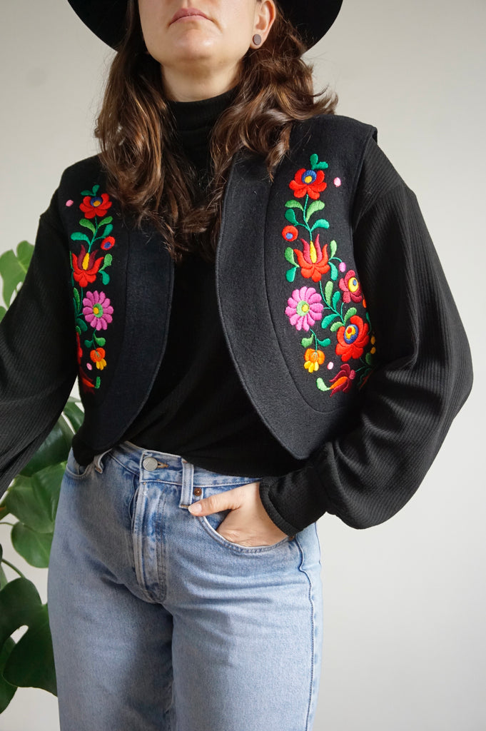 Folklore Florist - Vintage Embroidered Gilet/Waistcoat - Wool - M