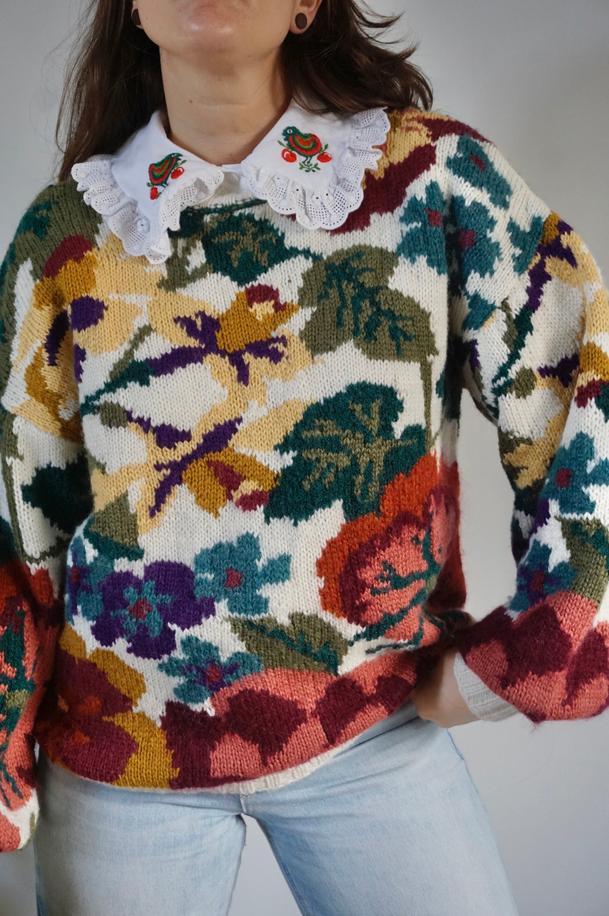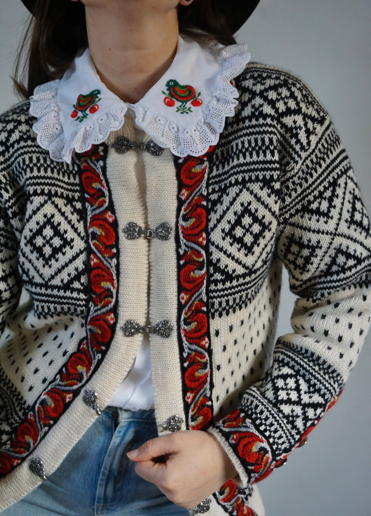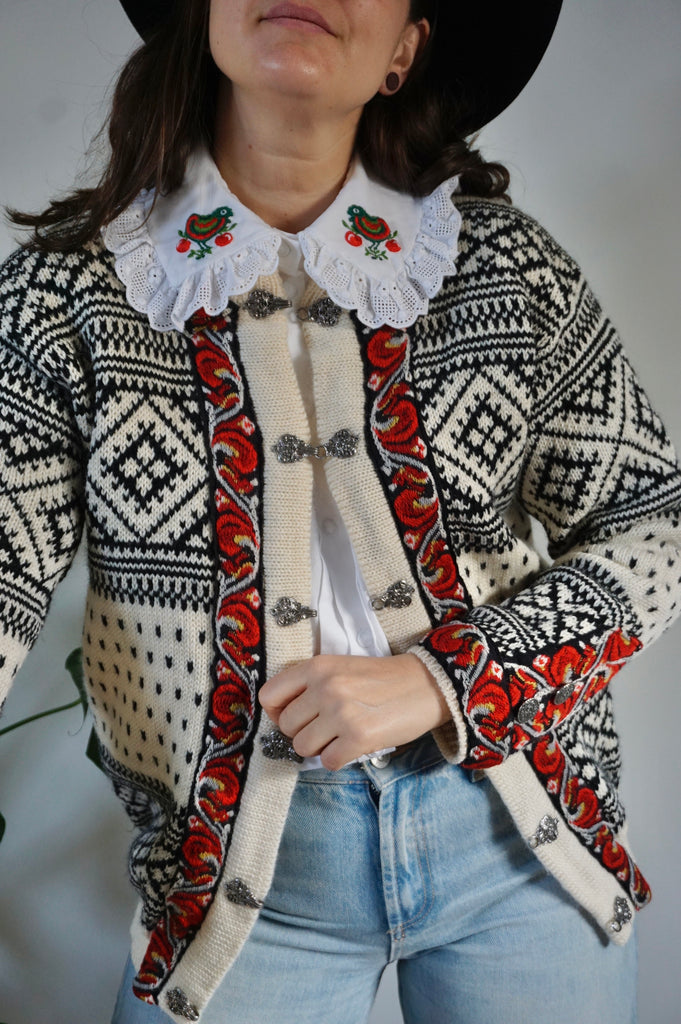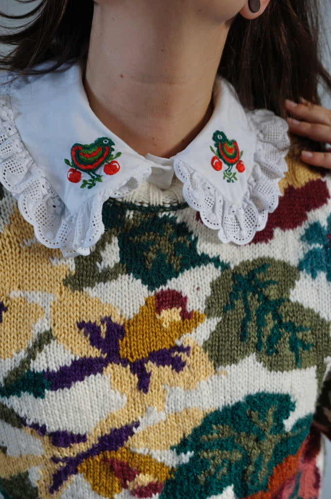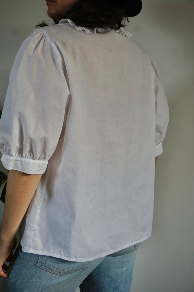 Birds and the Cherries - Vintage Blouse - Lace and Embroidered details - L