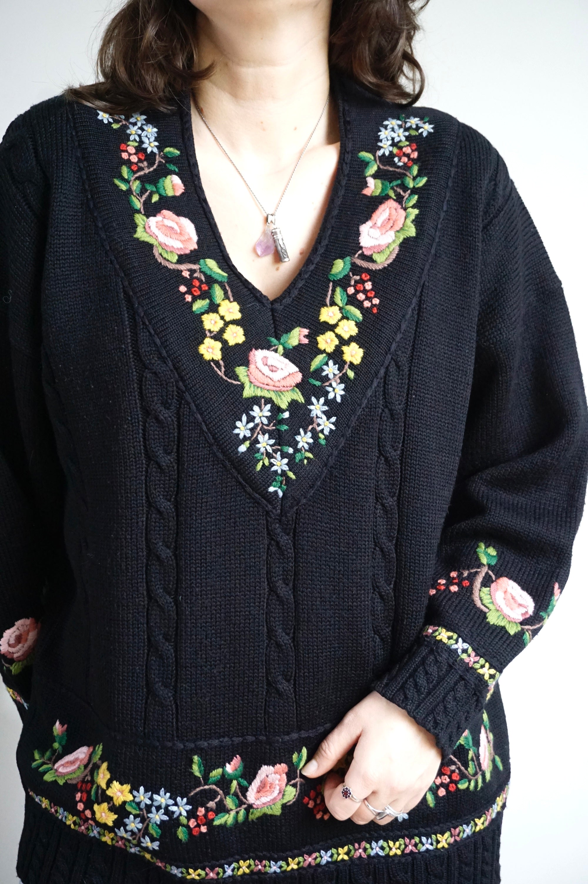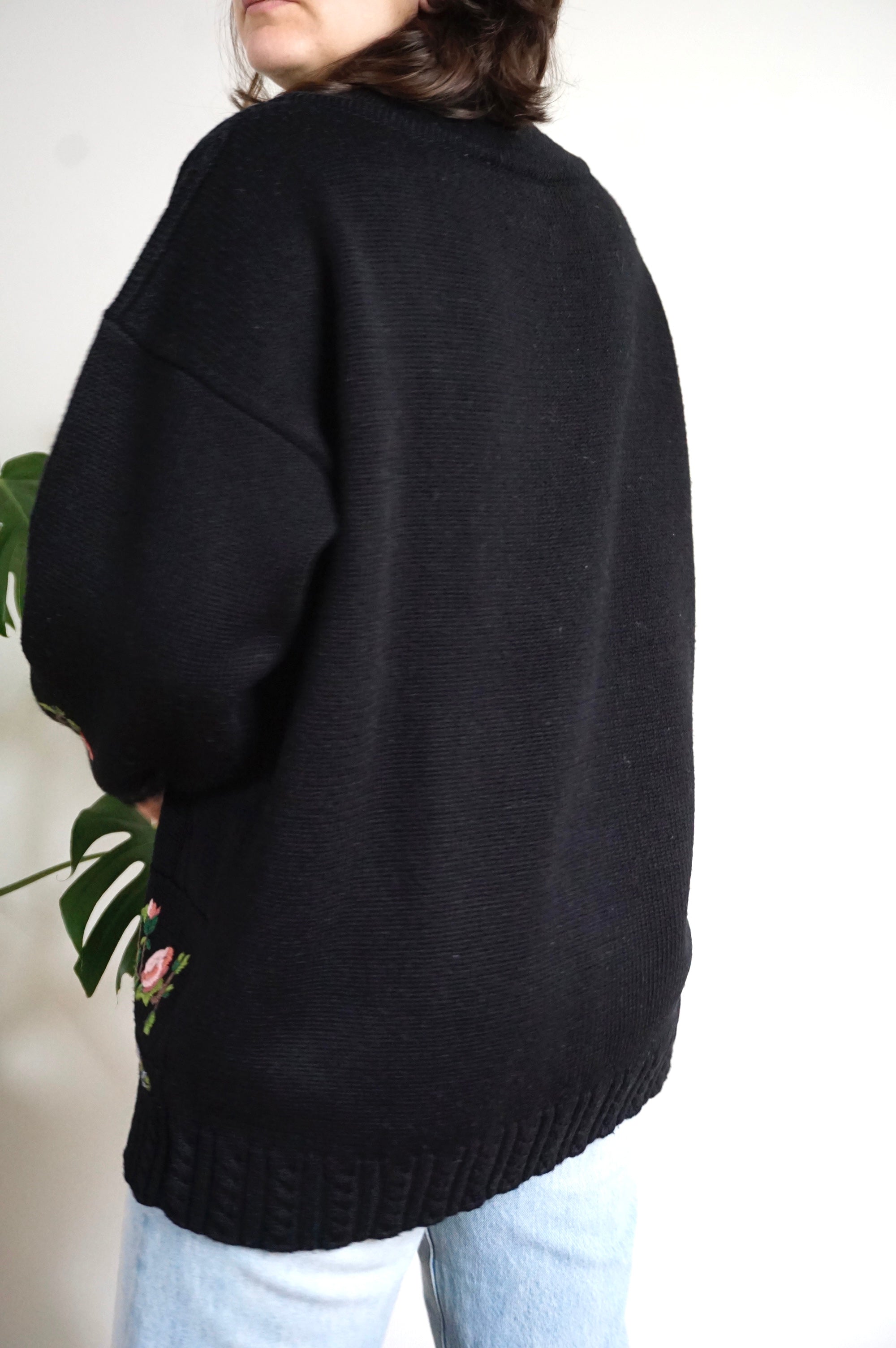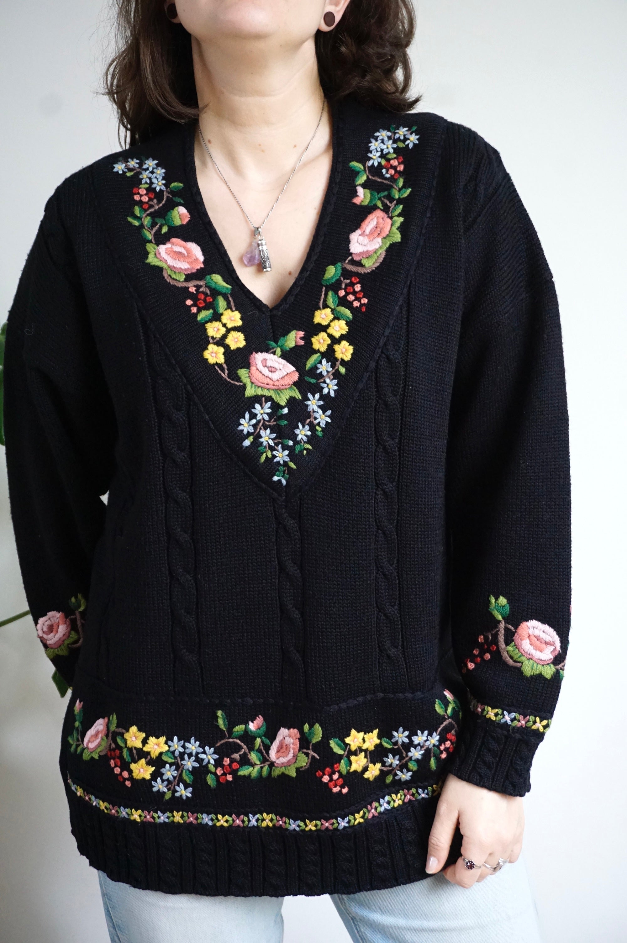 Flower Blessings - Vintage Embroidered Sweater - L
