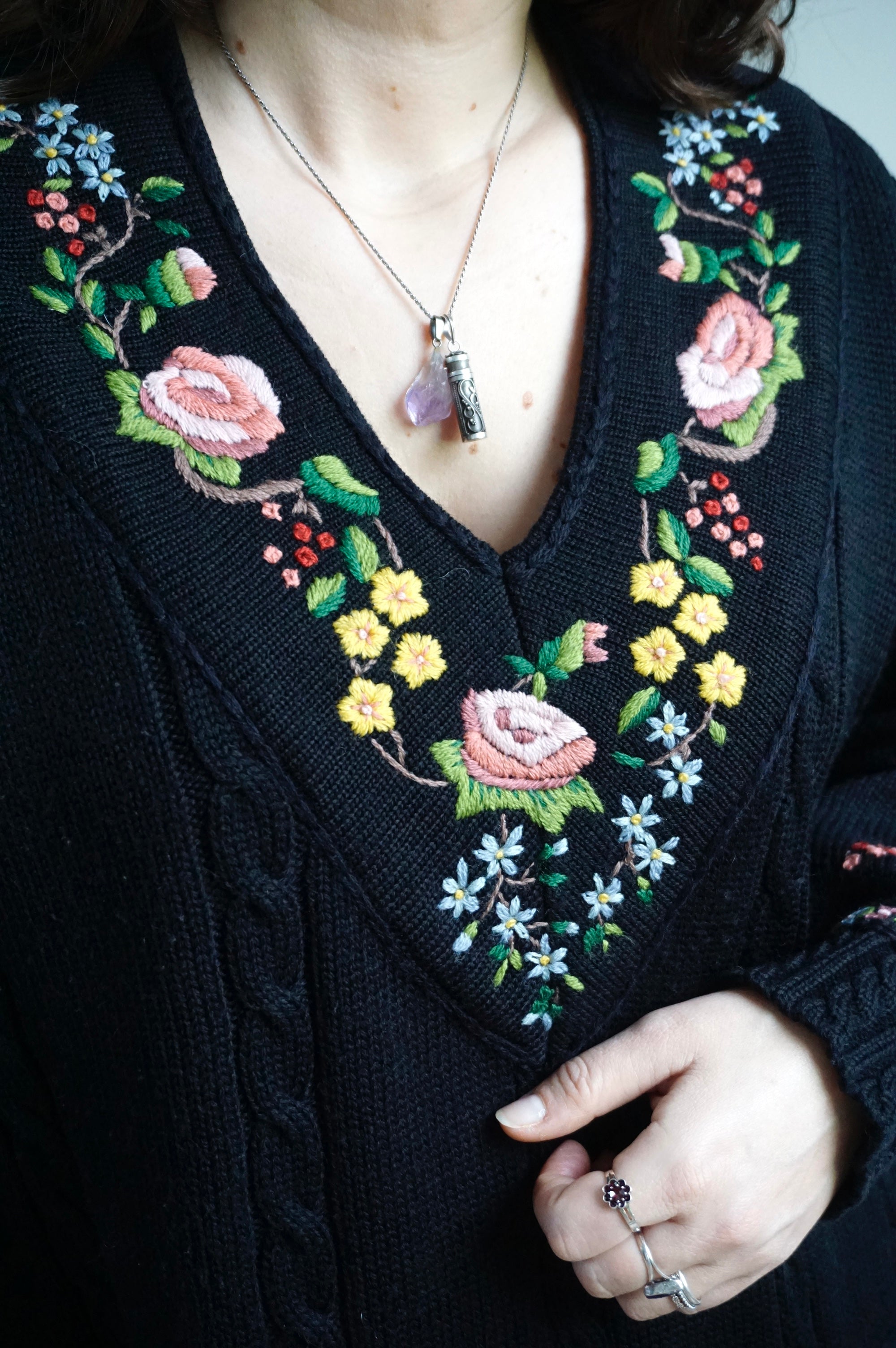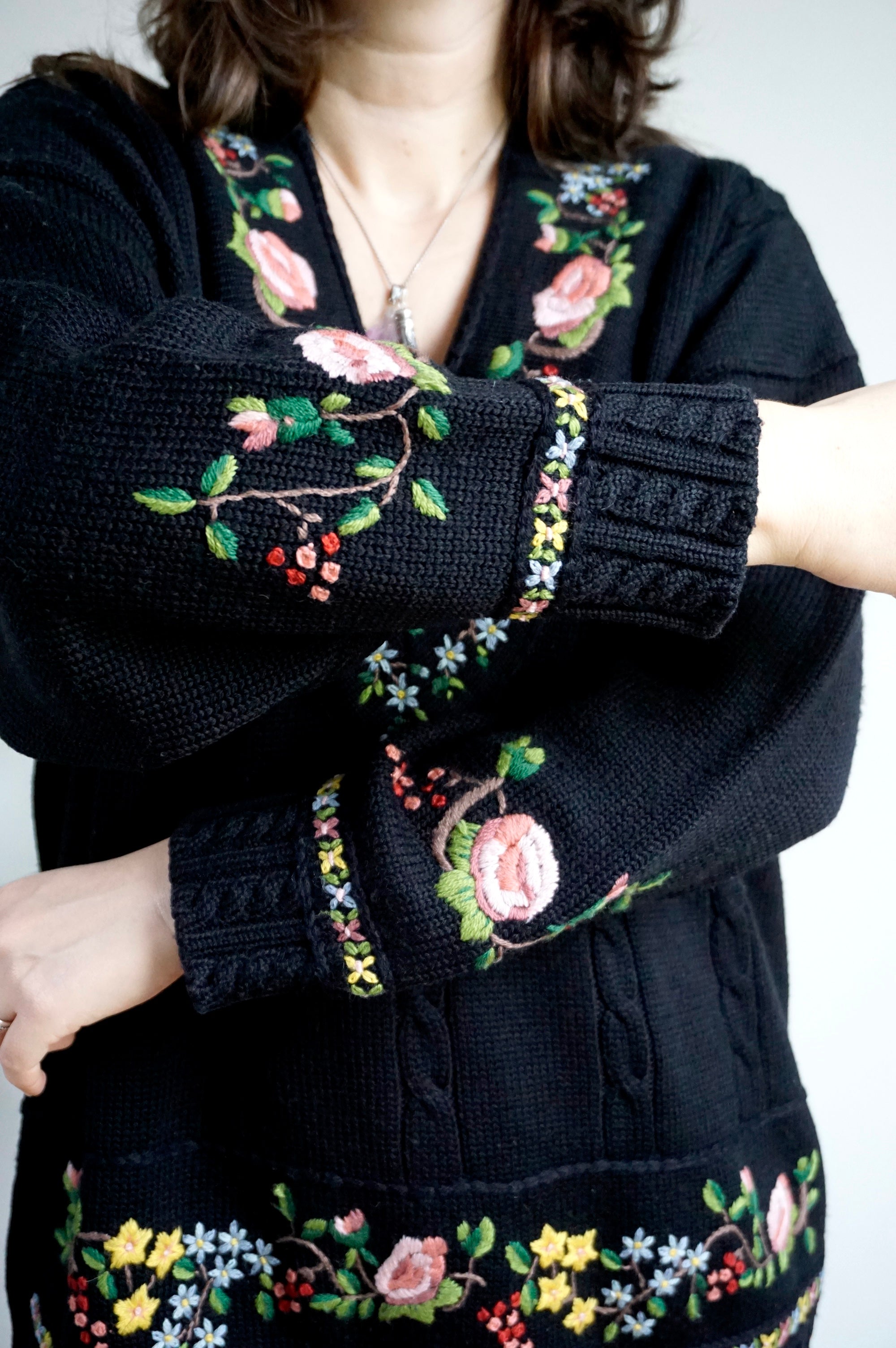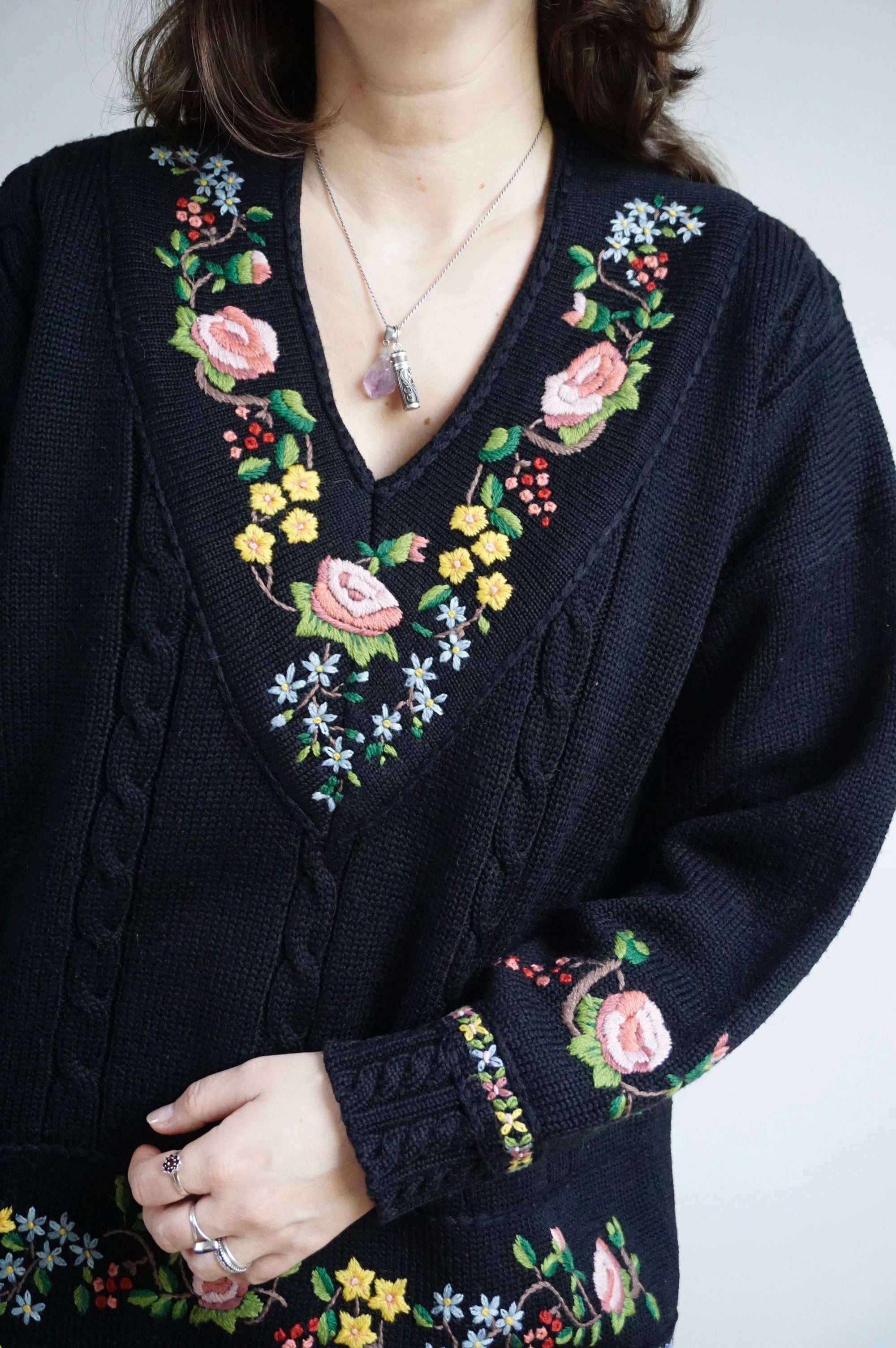 Flower Blessings - Vintage Embroidered Sweater - L