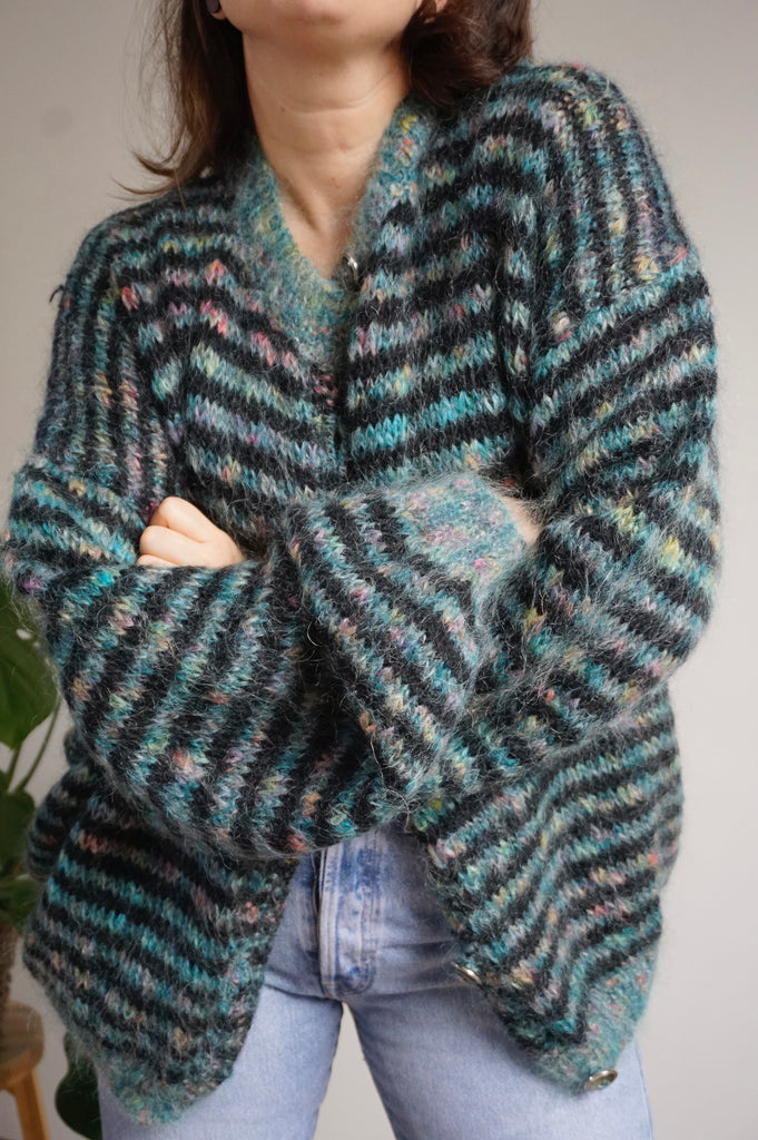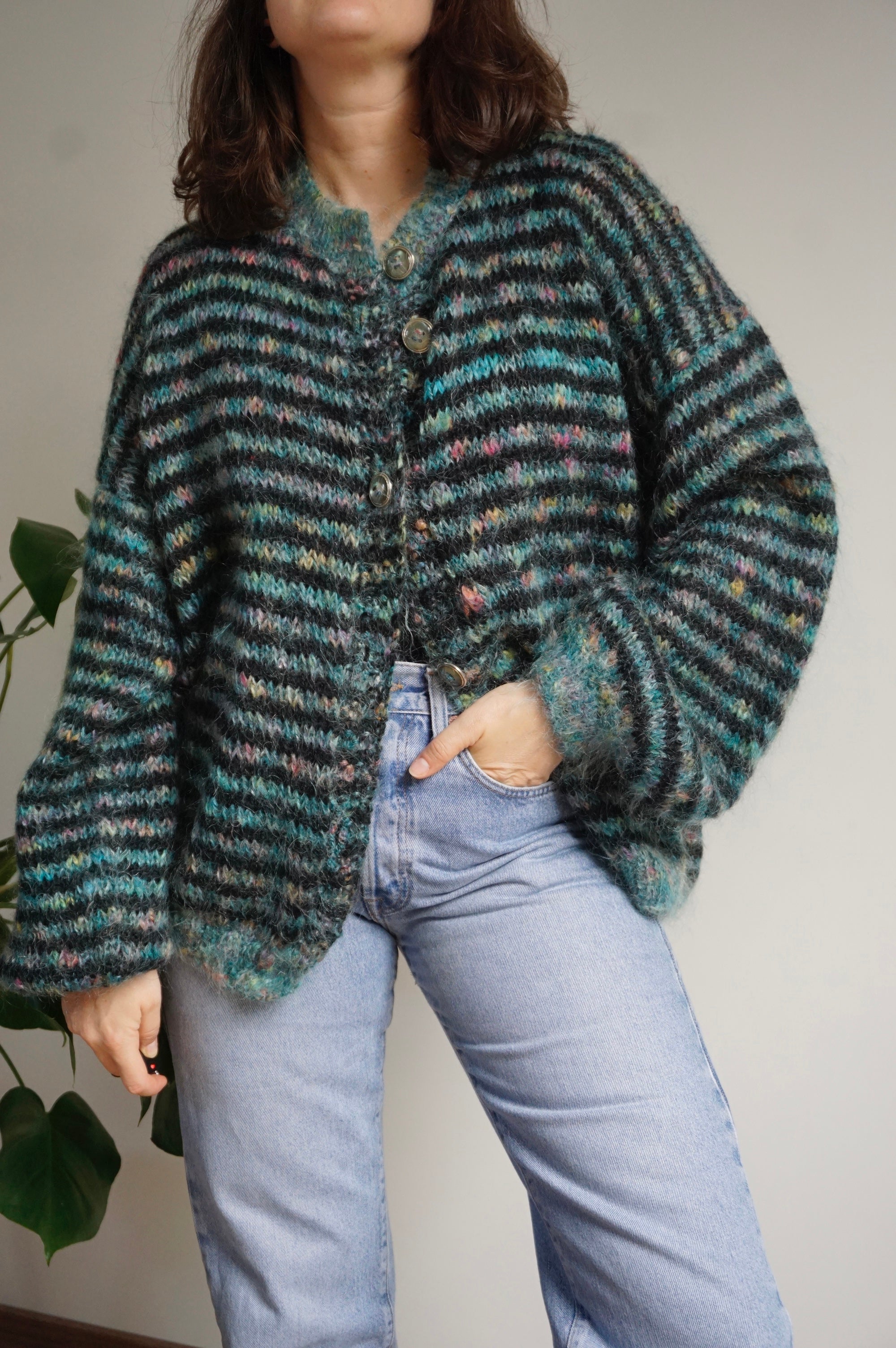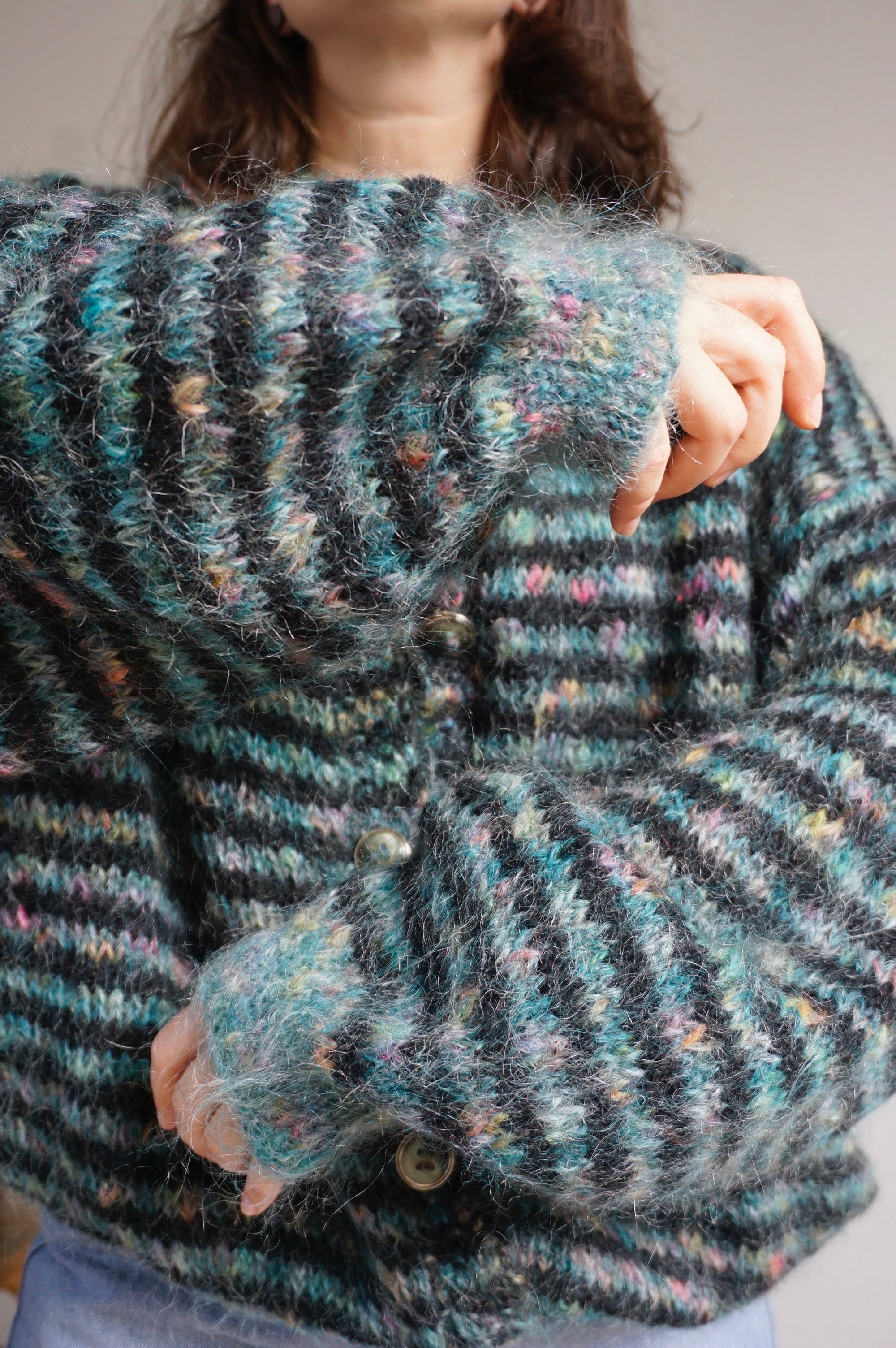 Fluffy Margot - Vintage Cardigan - Mohair Wool - L/XL