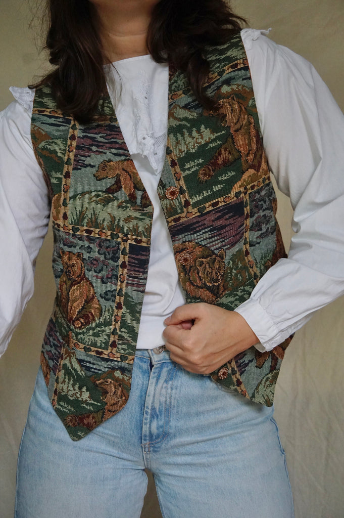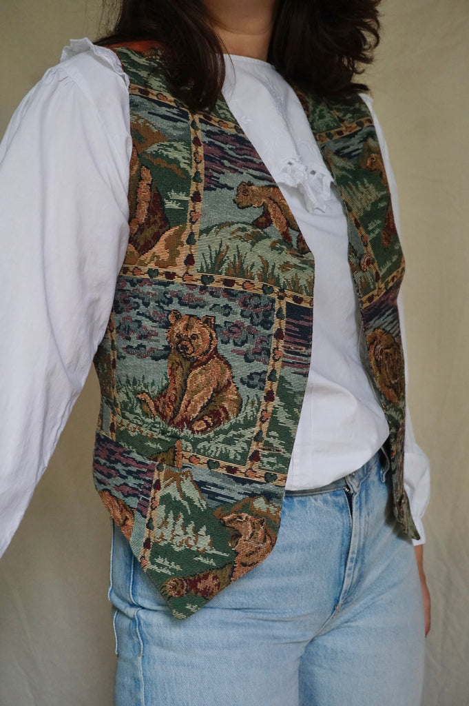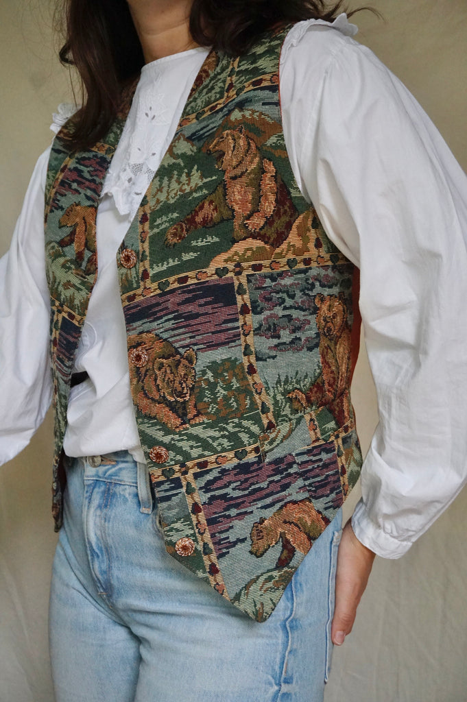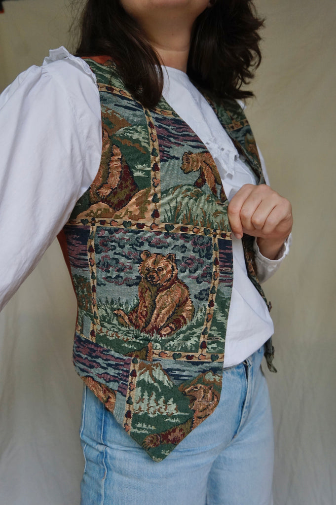 Grizzly Friends - Vintage Woven Gilet/Waistcoat - M/L