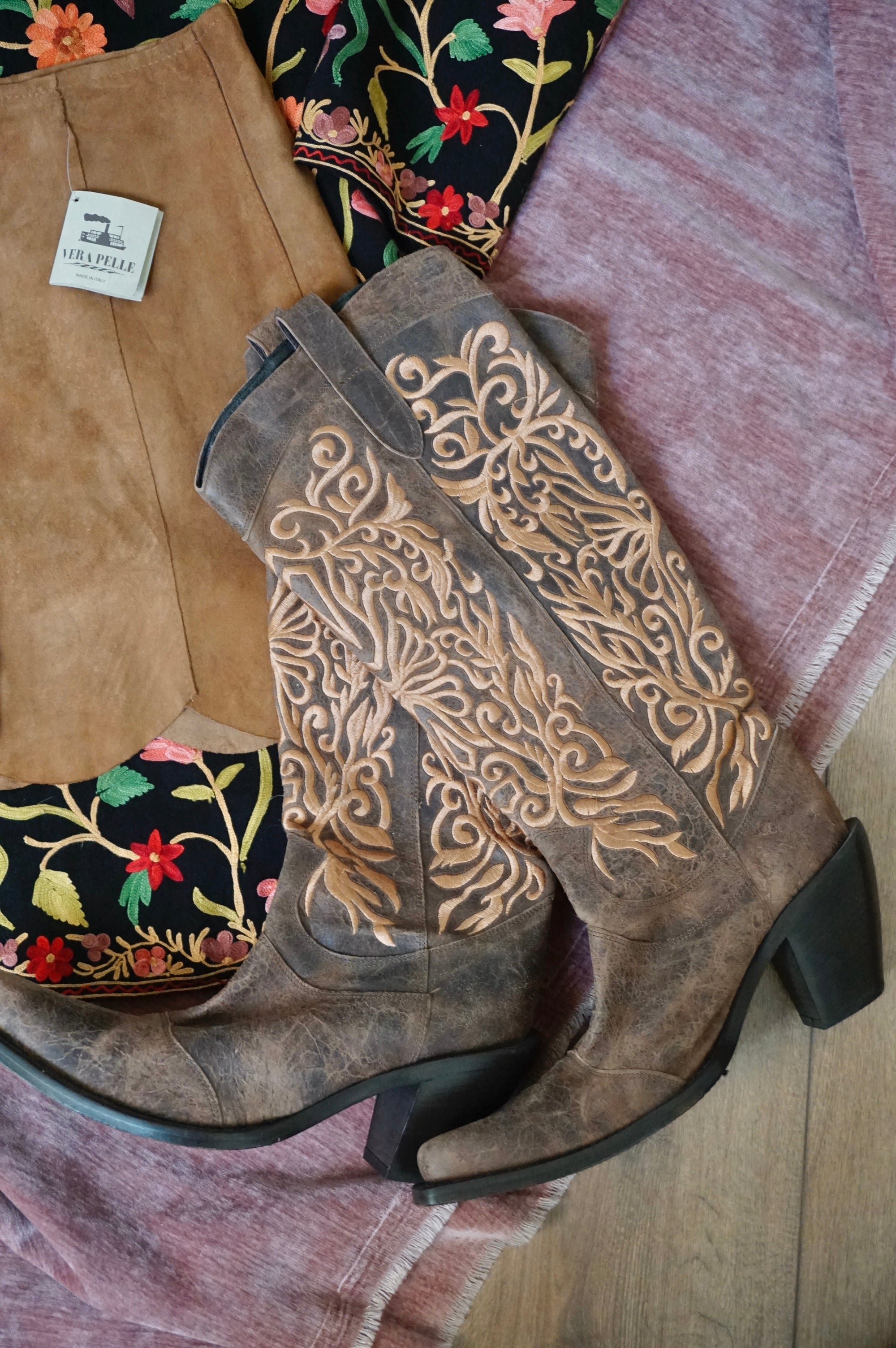 Higher Love - Pre Loved Western/Cowboy Boots - Embroidered Details - EU39