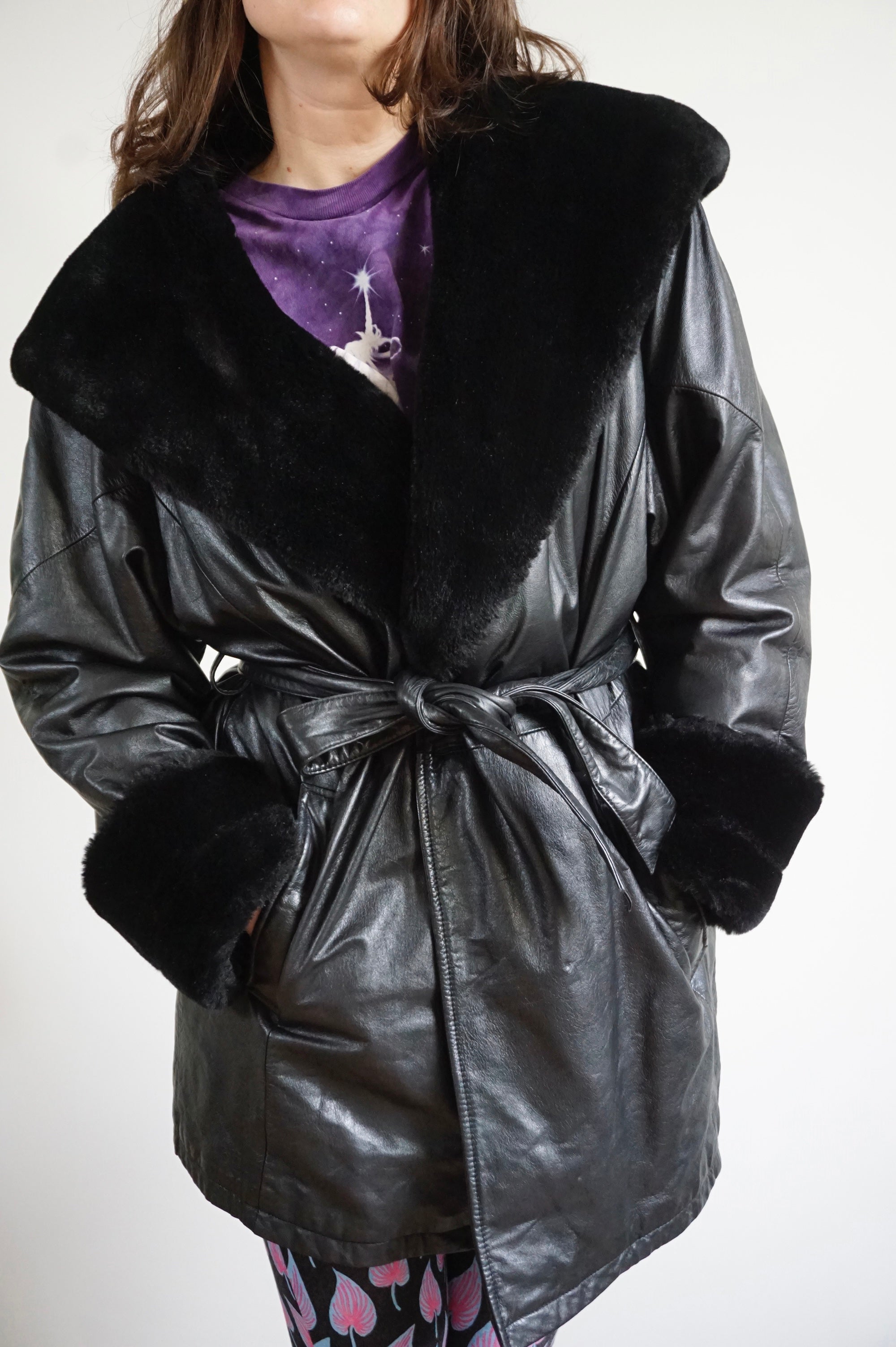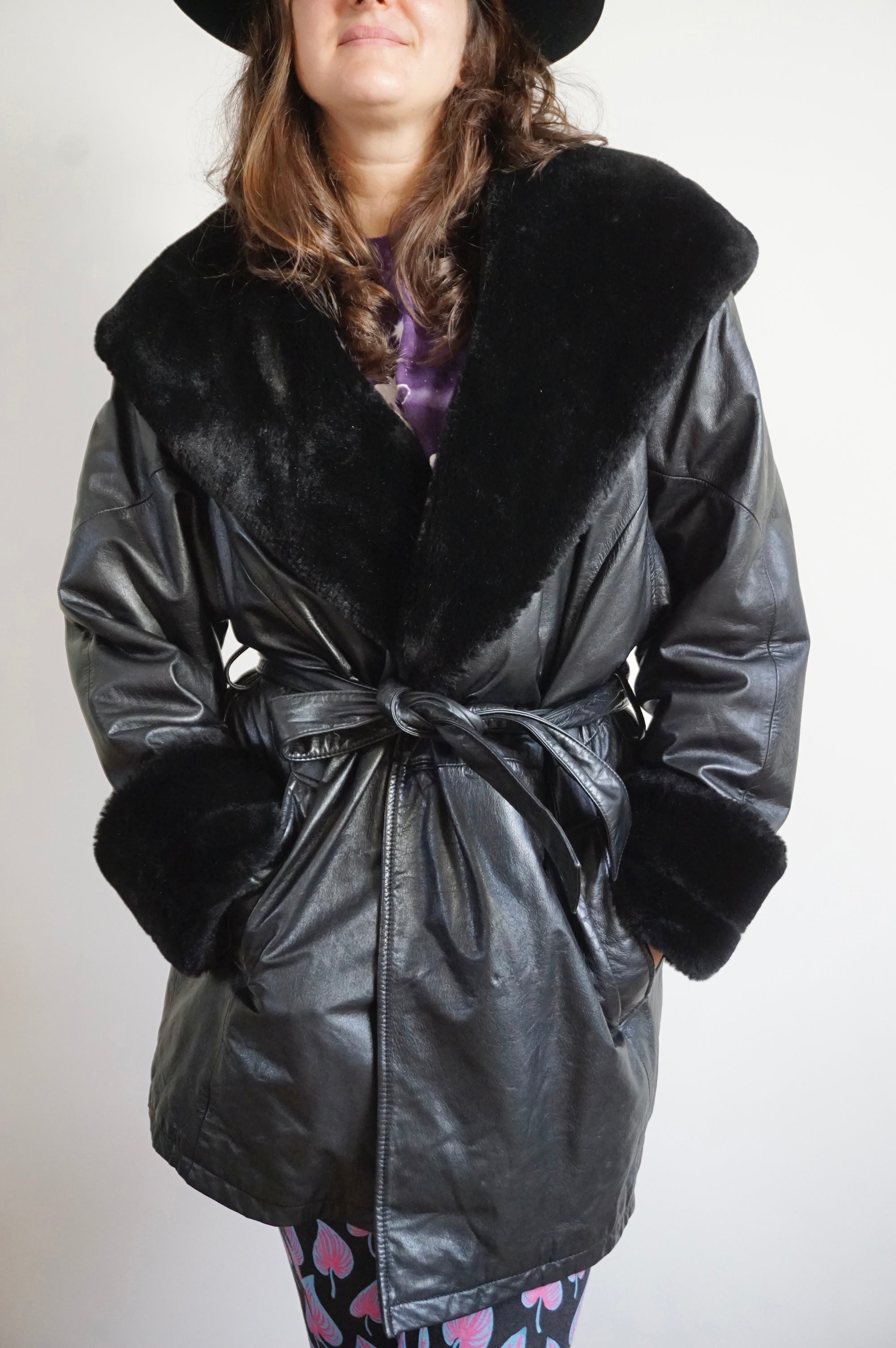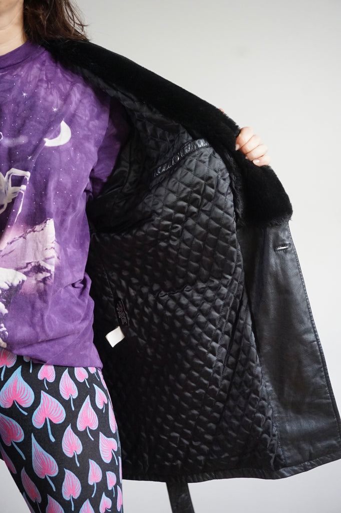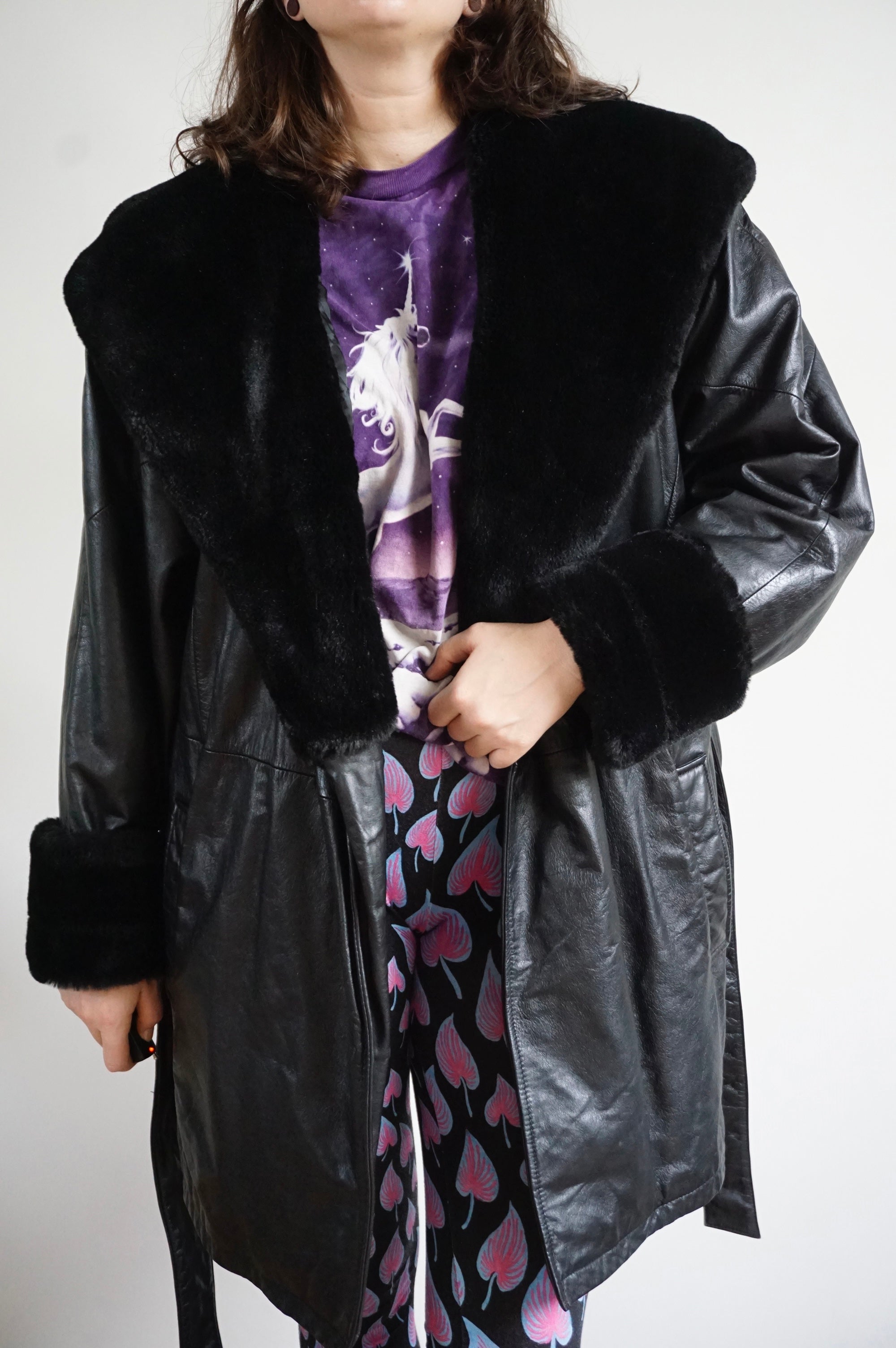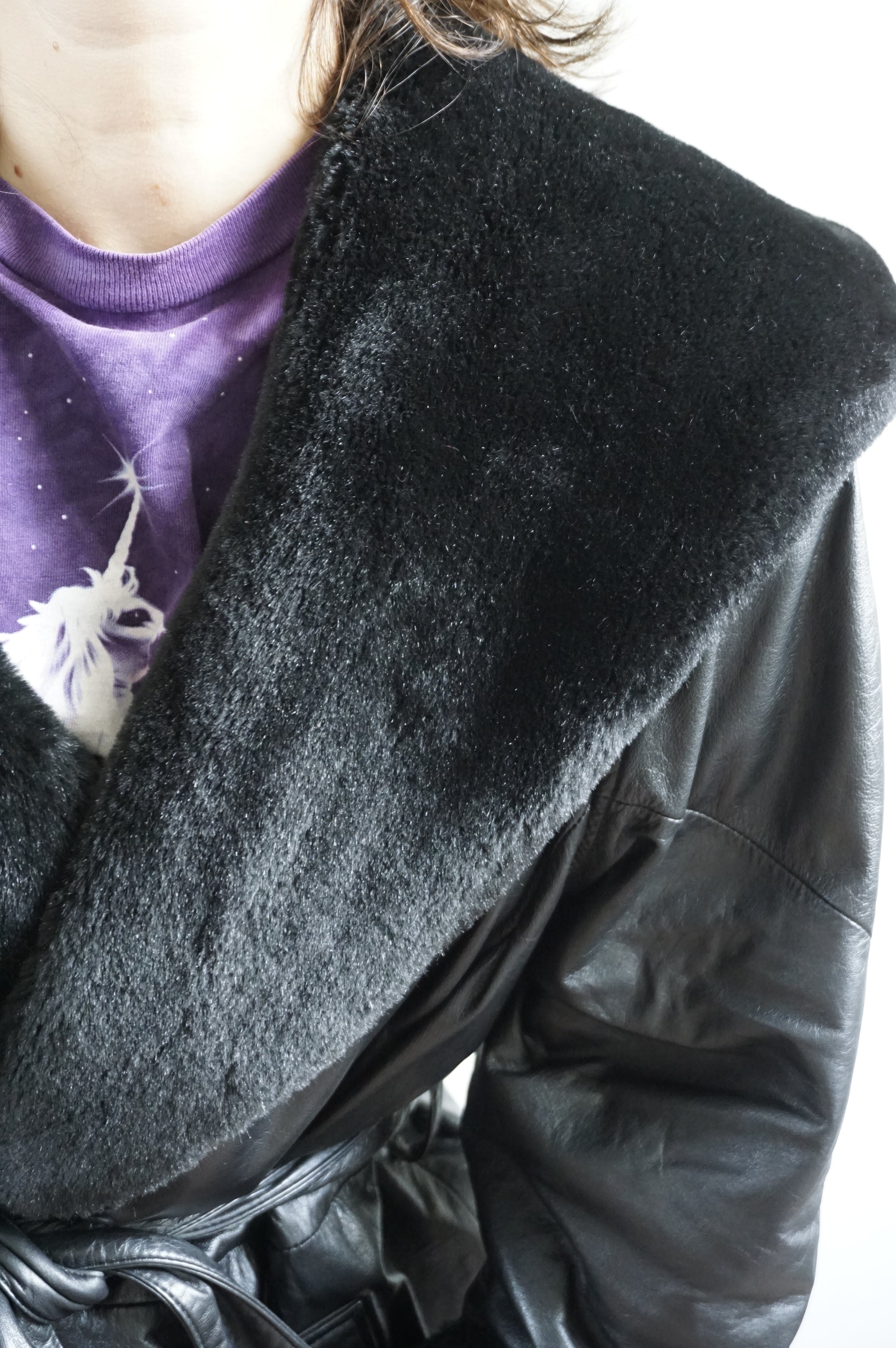 Night Owl - Vintage Trenchcoat with Faux Fur - L