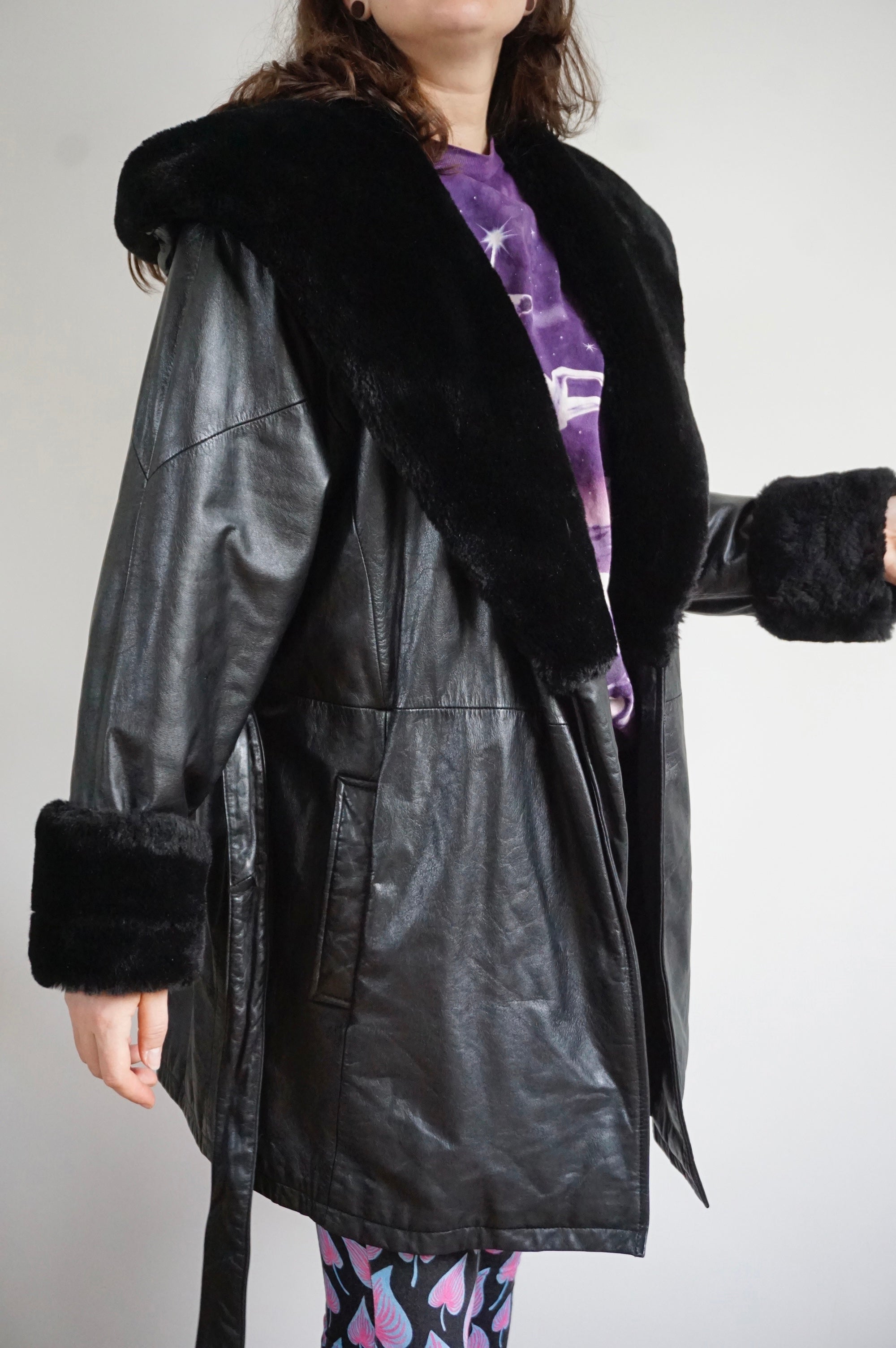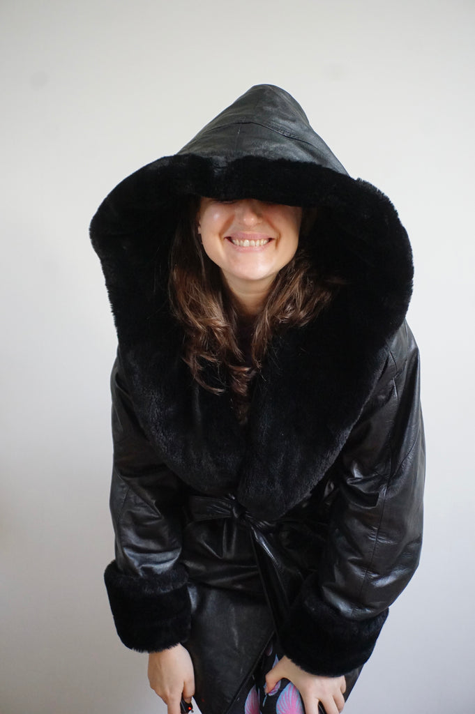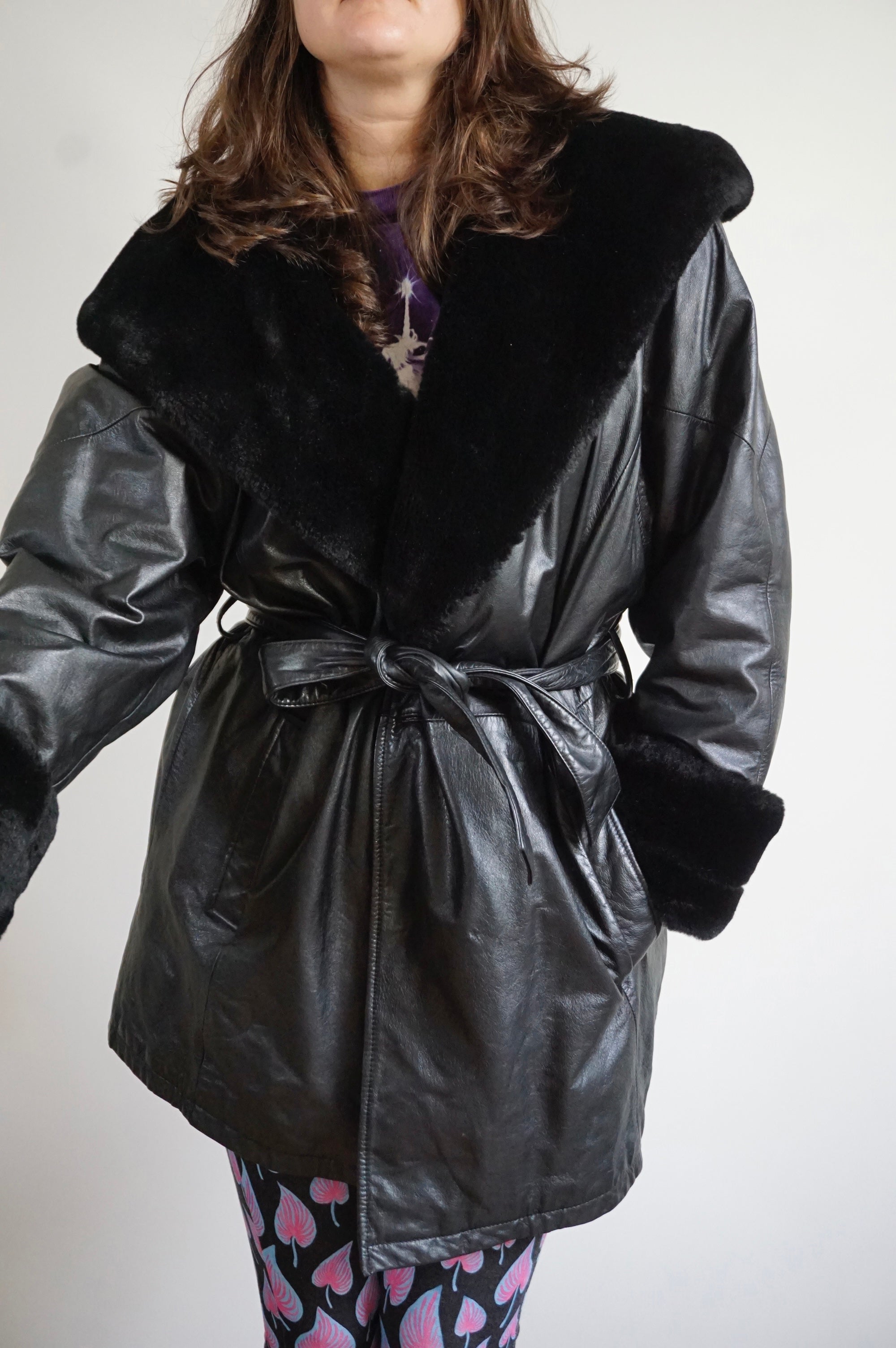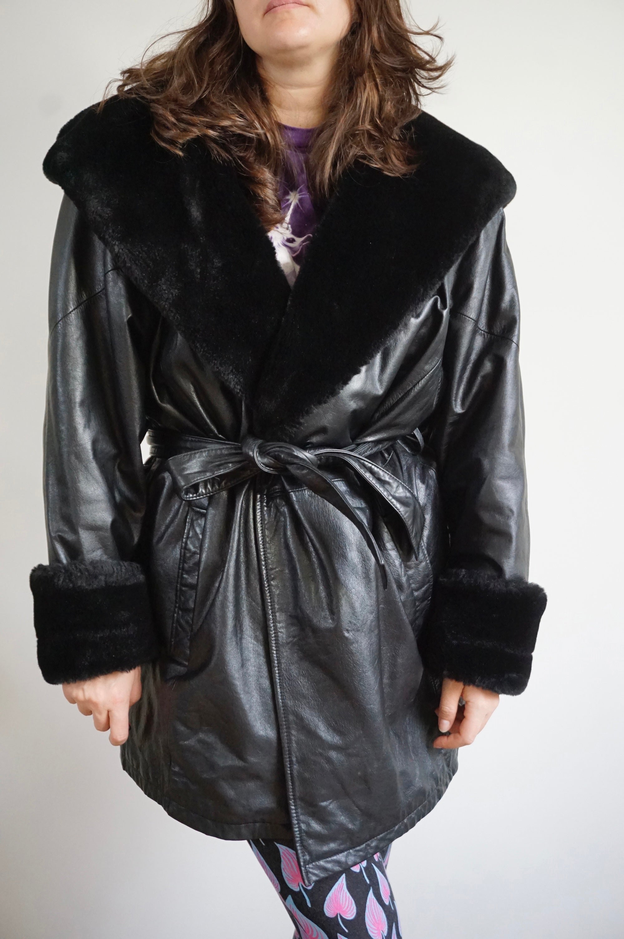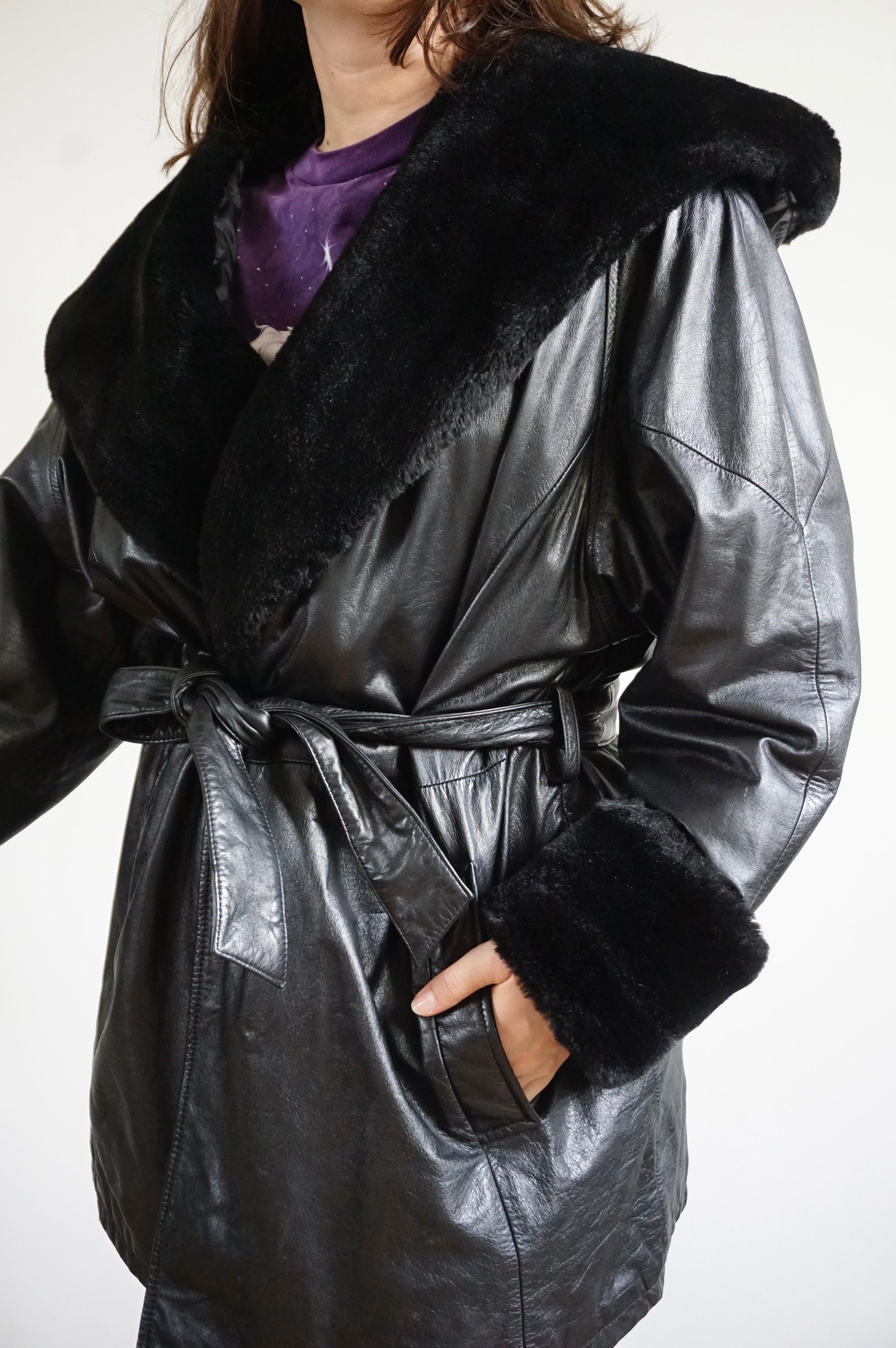 Night Owl - Vintage Trenchcoat with Faux Fur - L