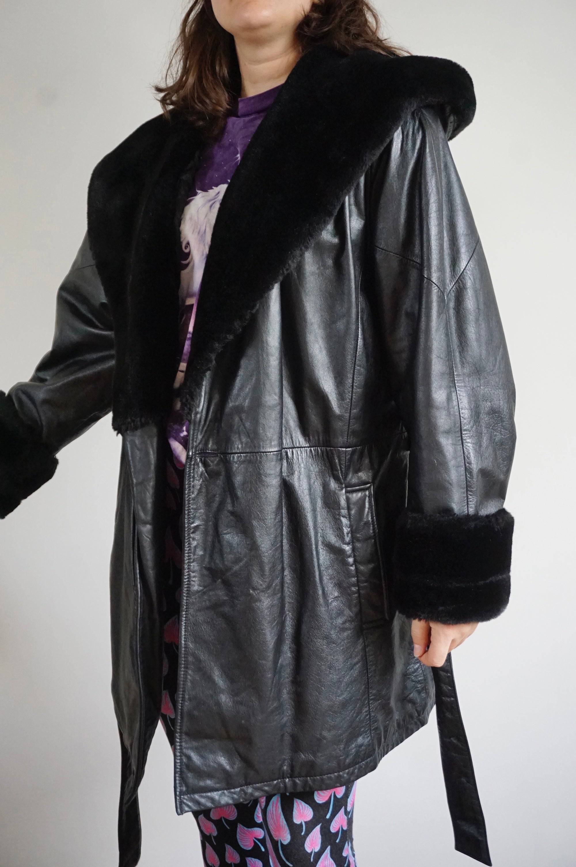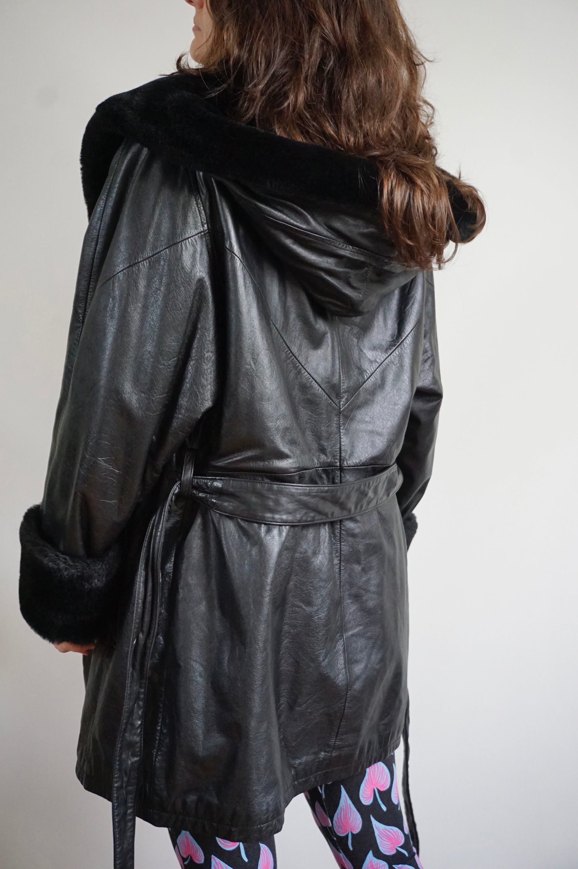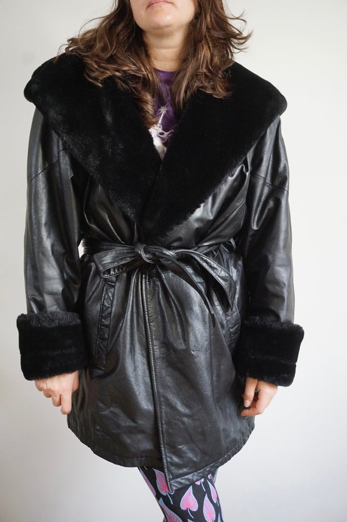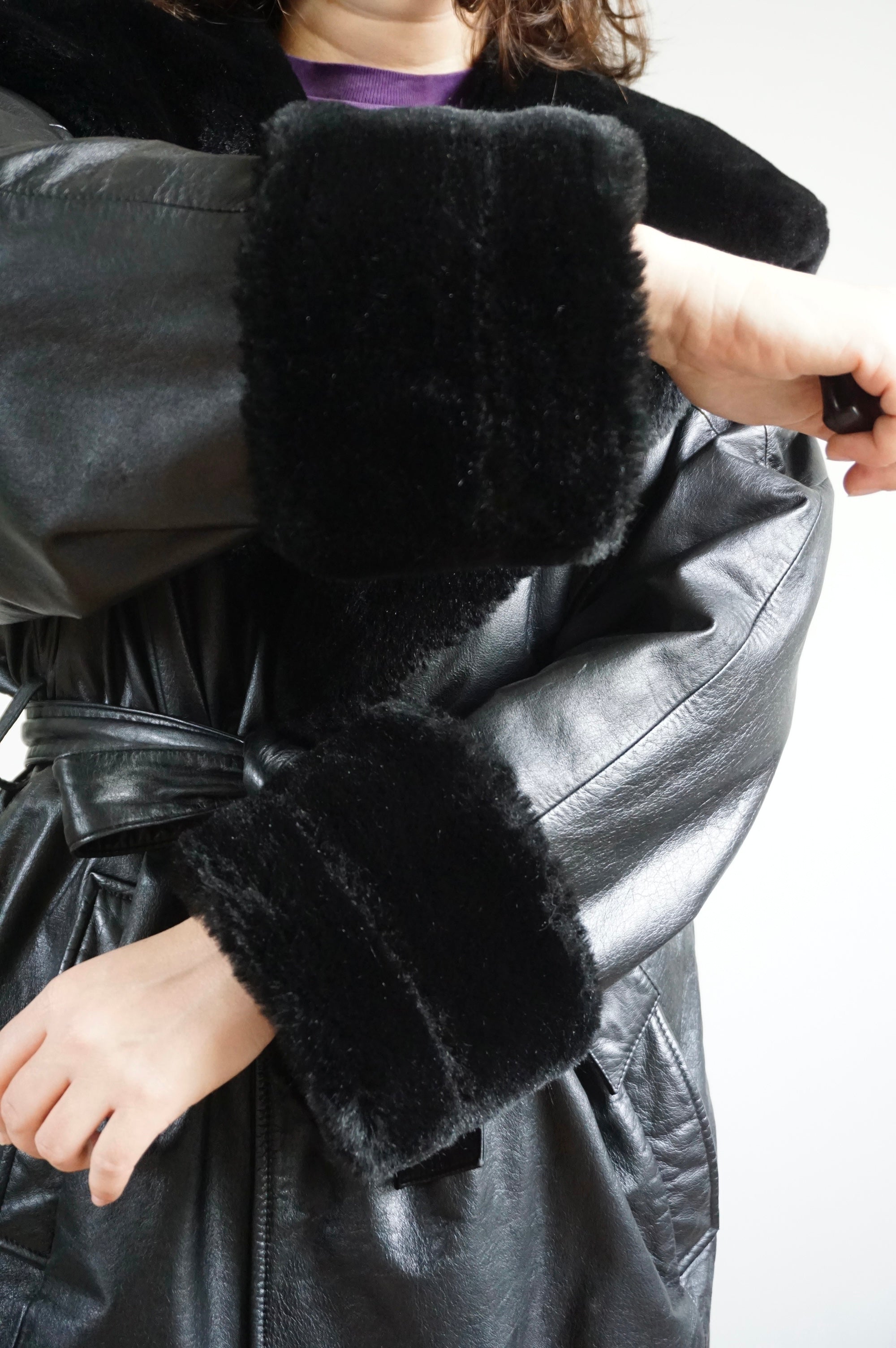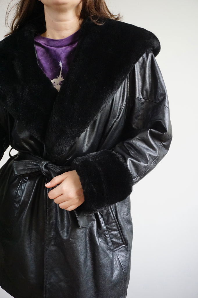 Night Owl - Vintage Trenchcoat with Faux Fur - L