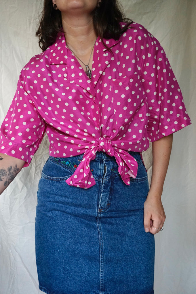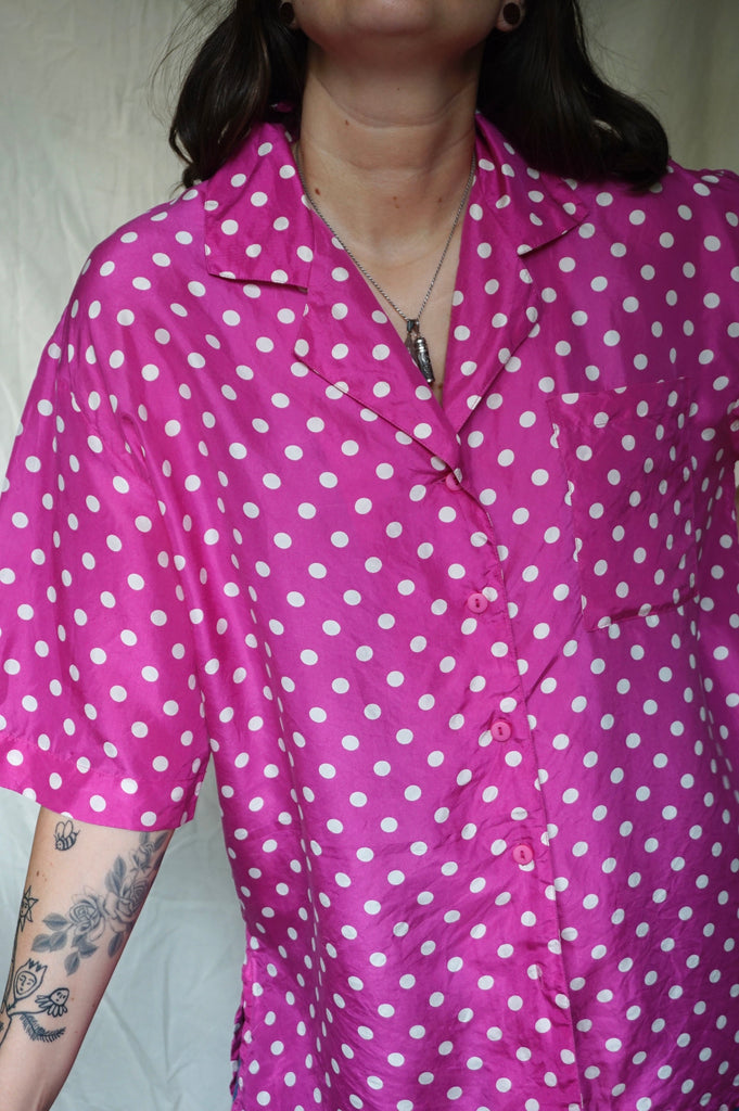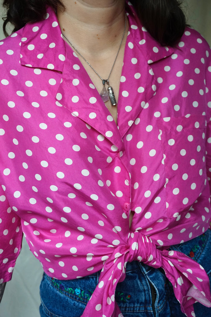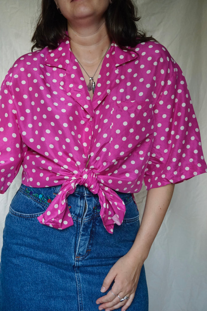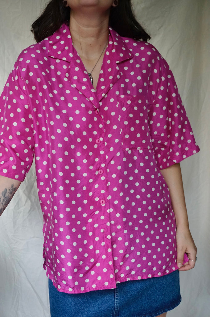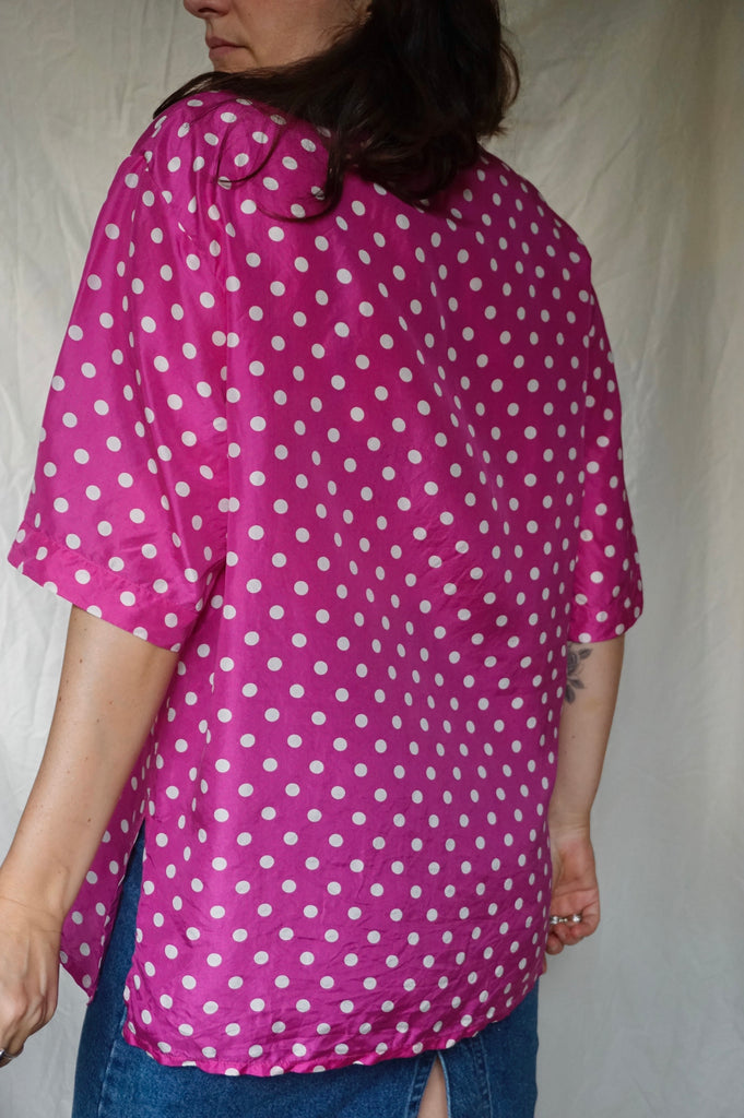 P. Dotty- Vintage 100% Silk Blouse - XL