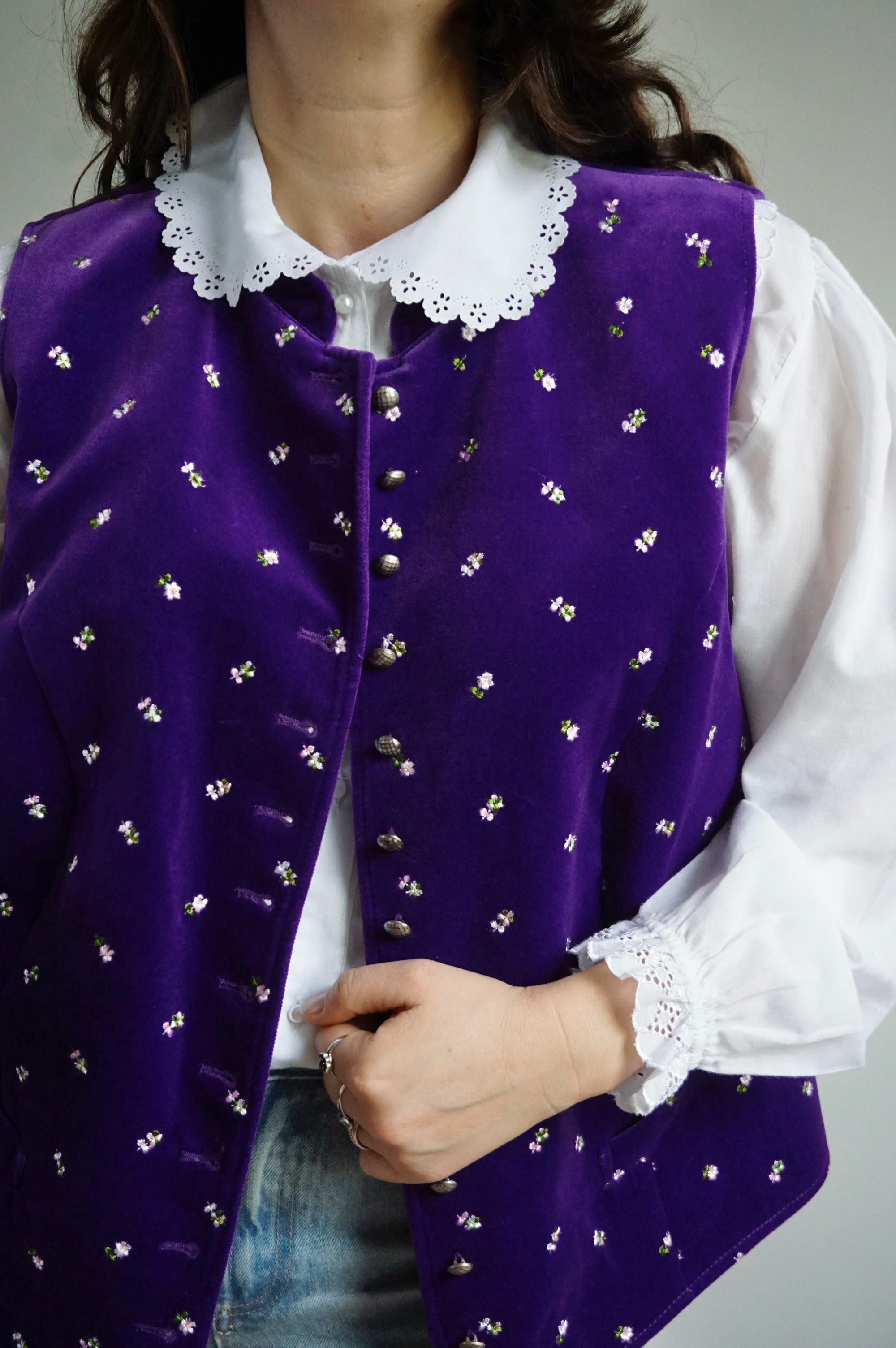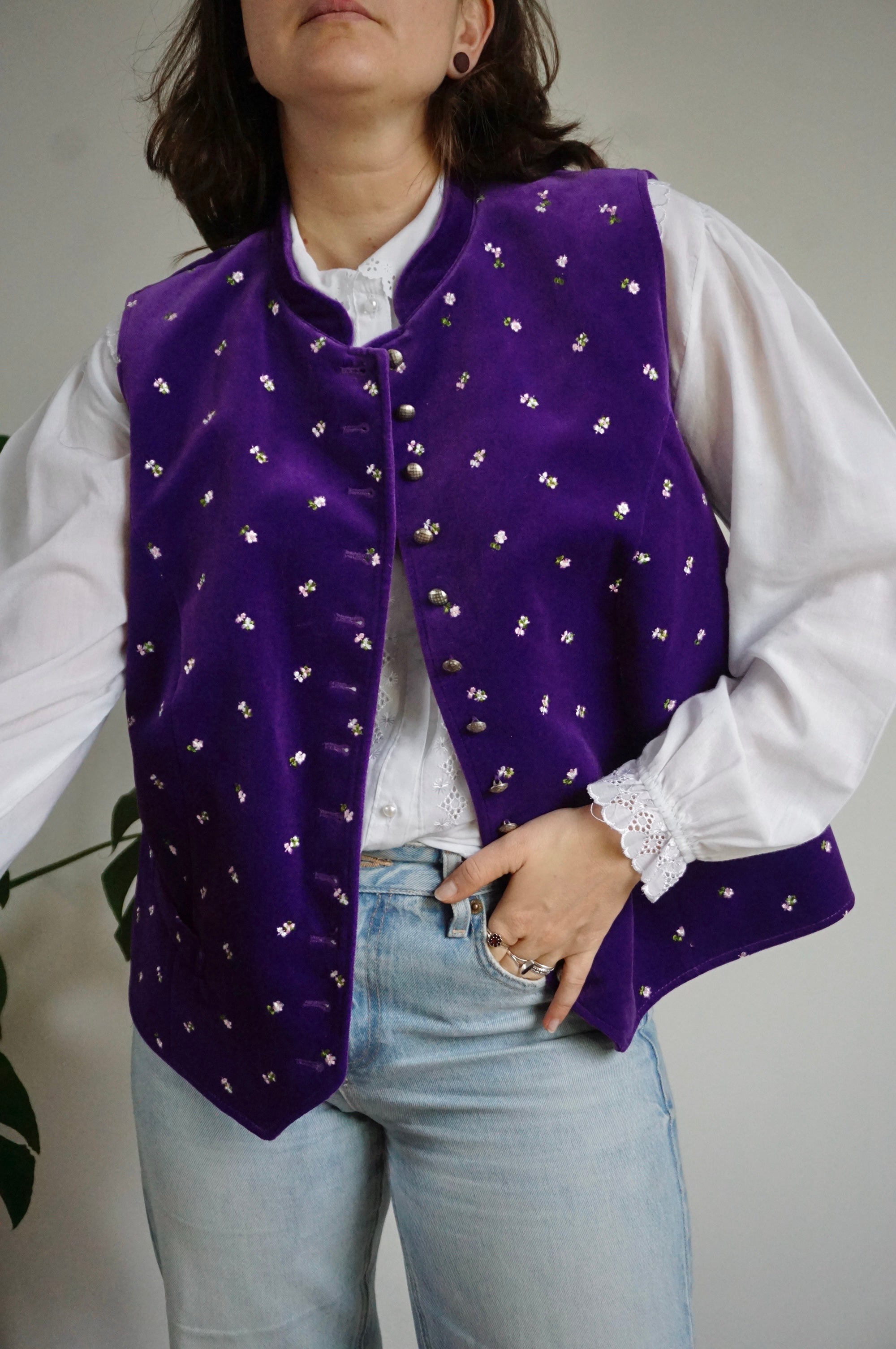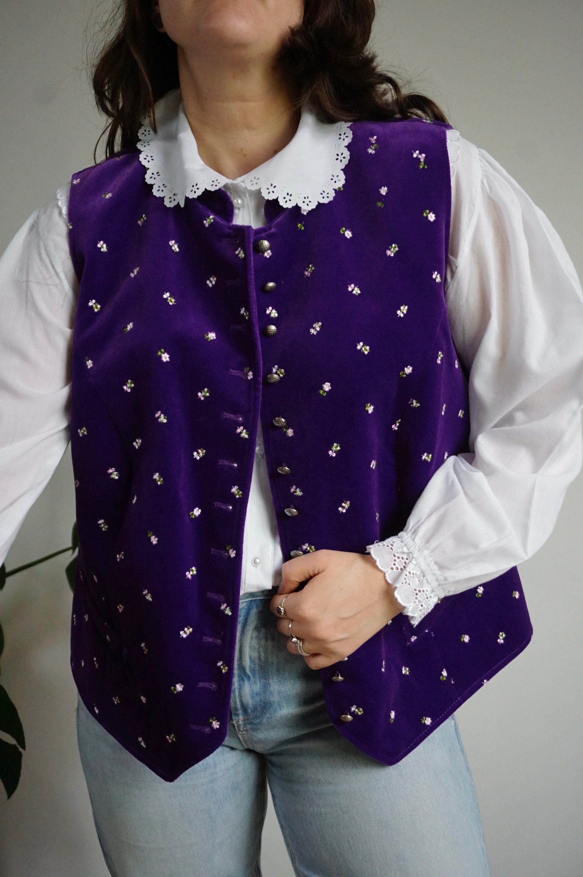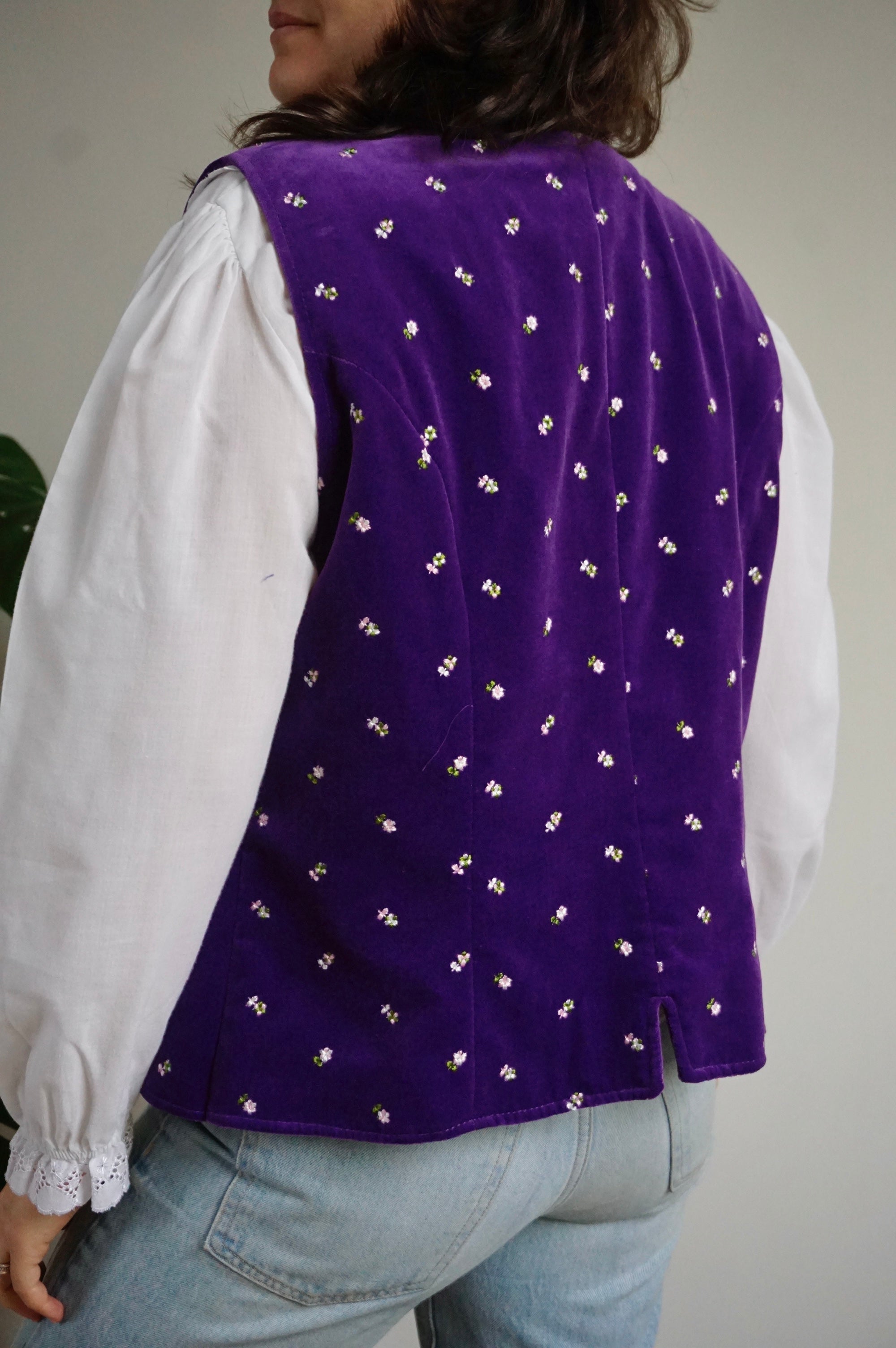 Purple Blessings - Vintage Embroidered Velvet Gilet/Waistcoat - M/L