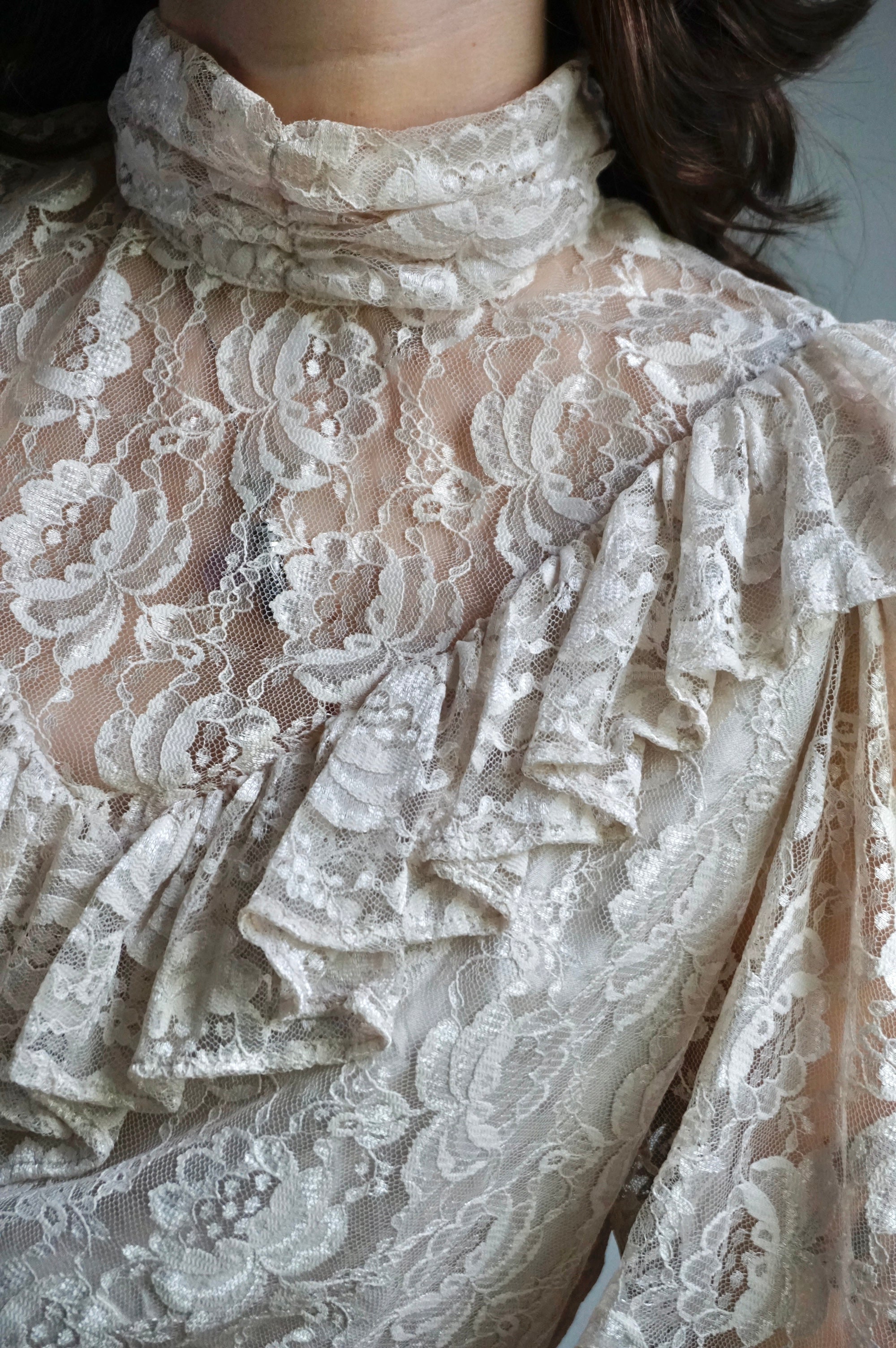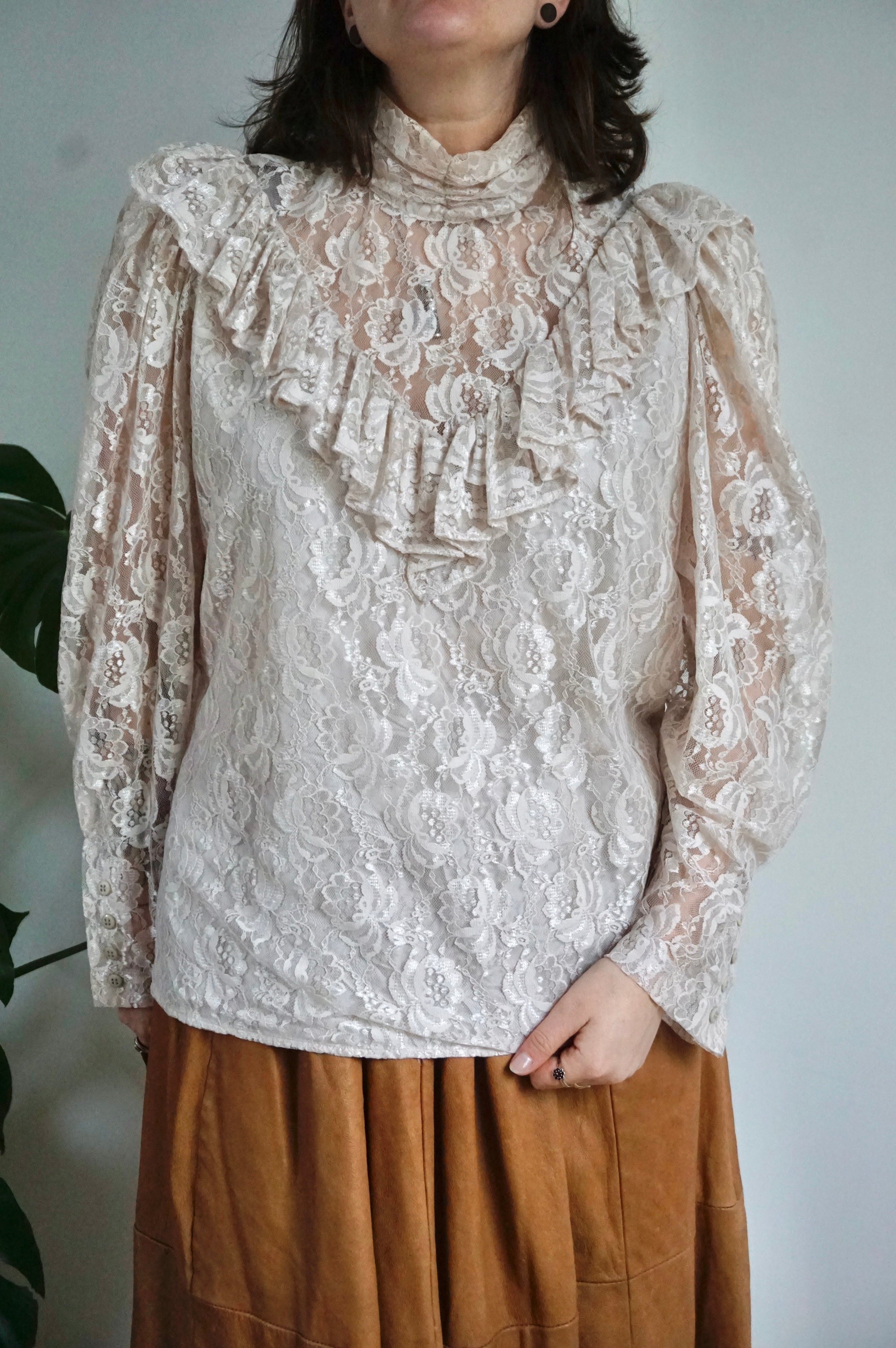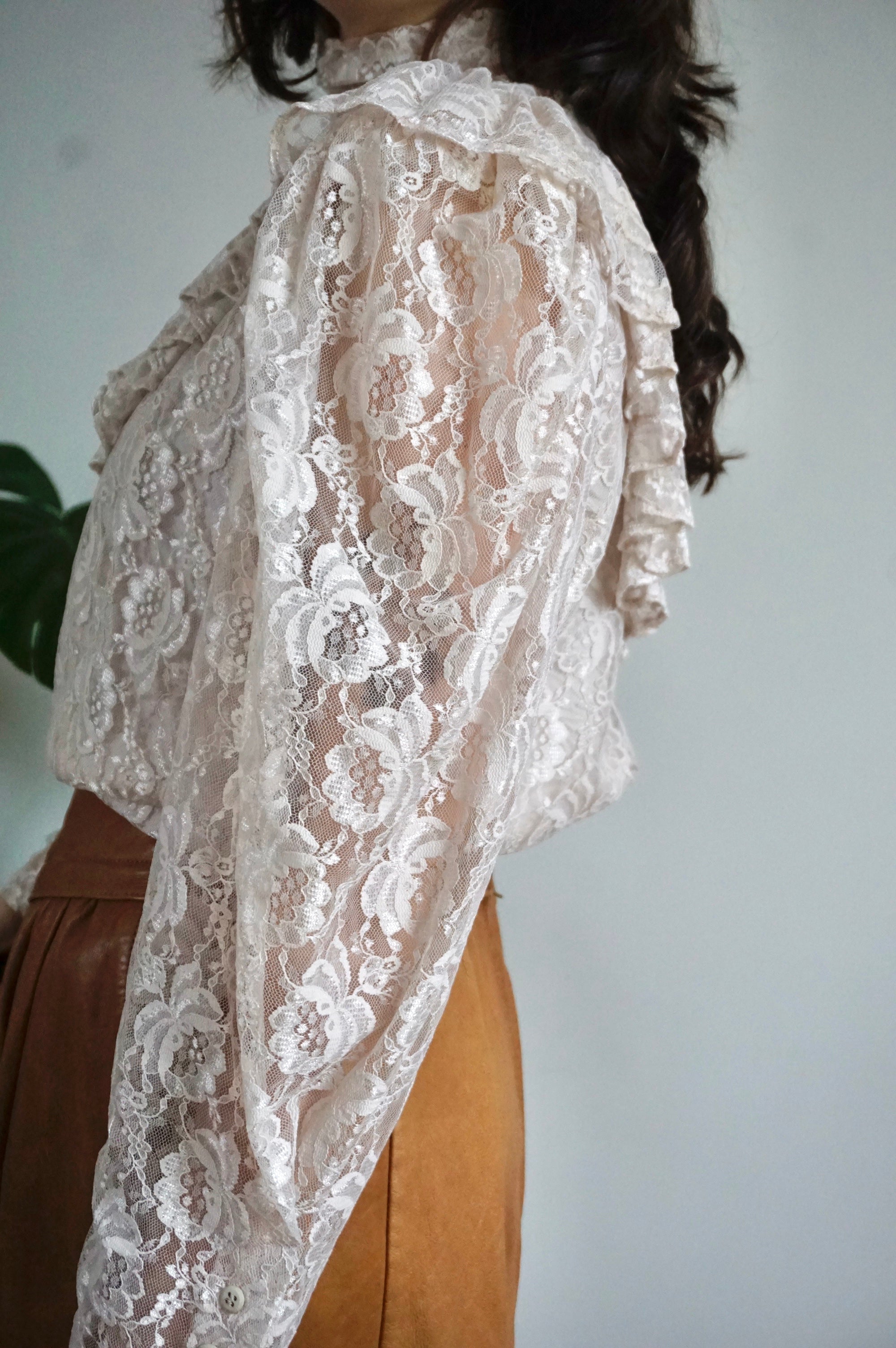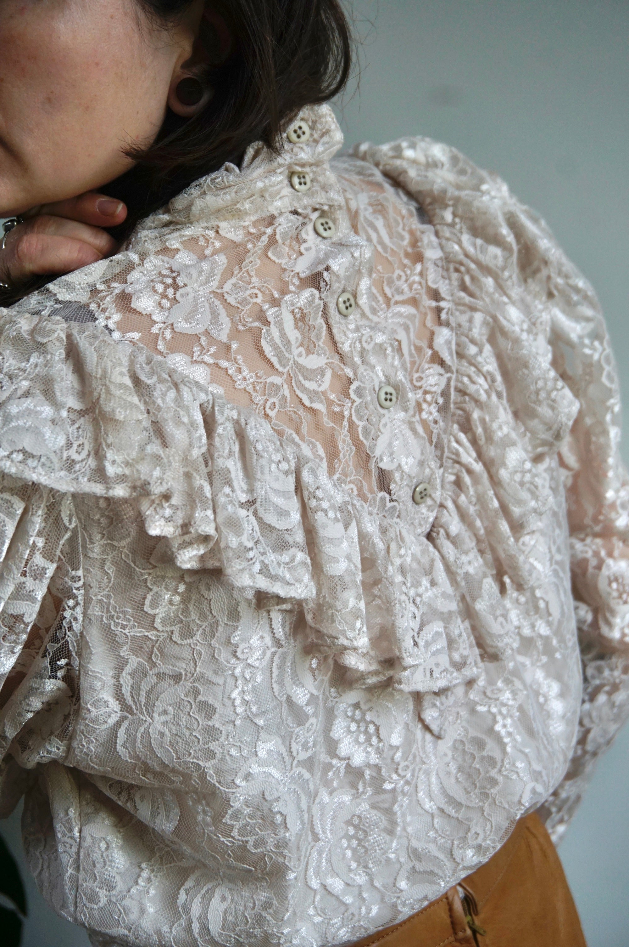 Rosey Dreams - Vintage Ruffle Blouse - Lace - L