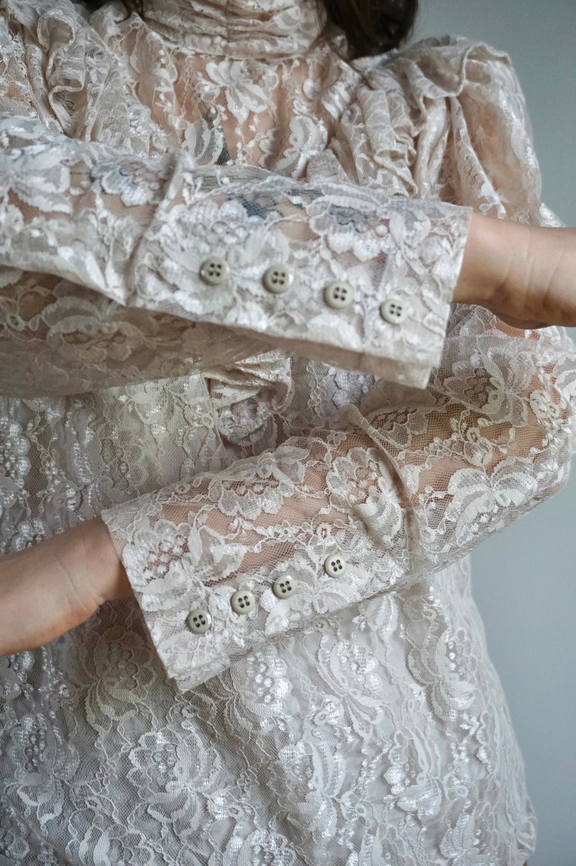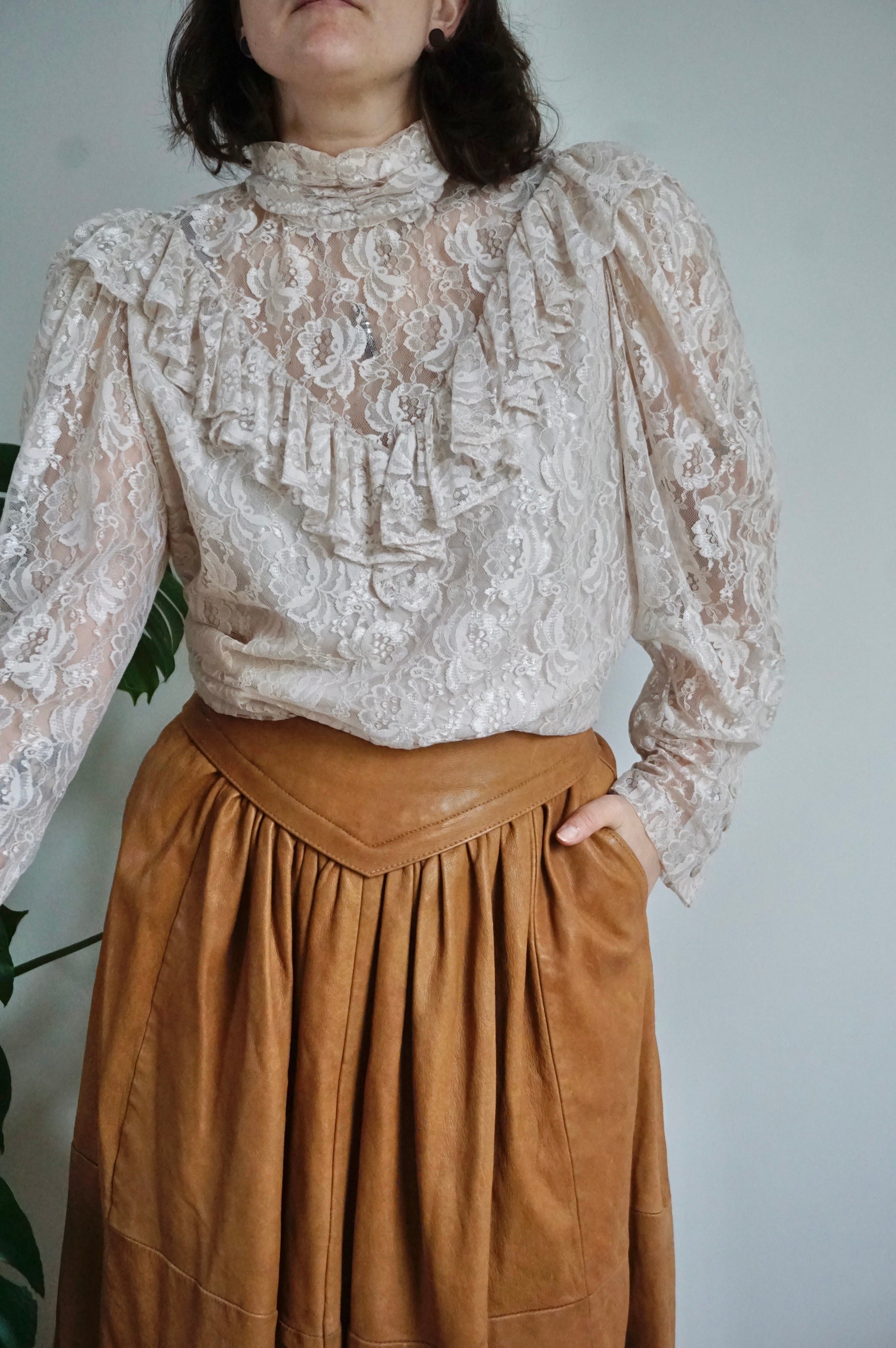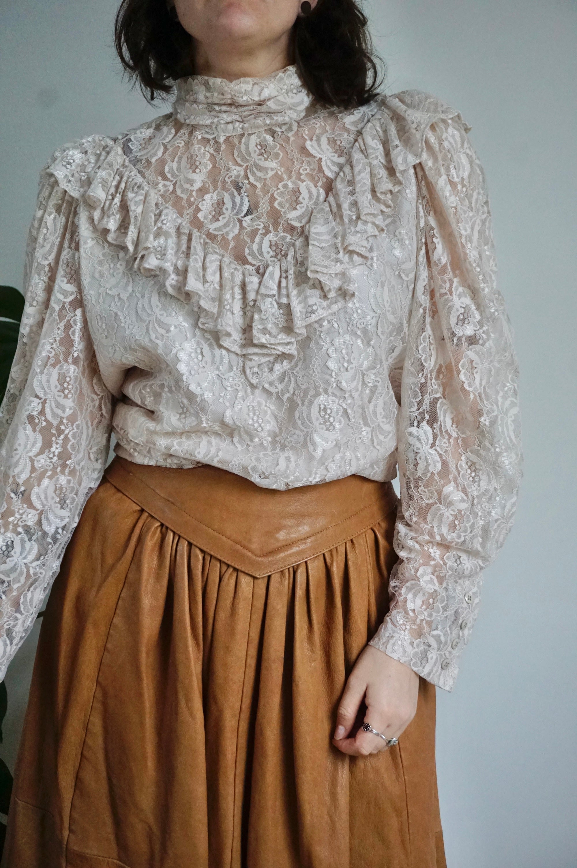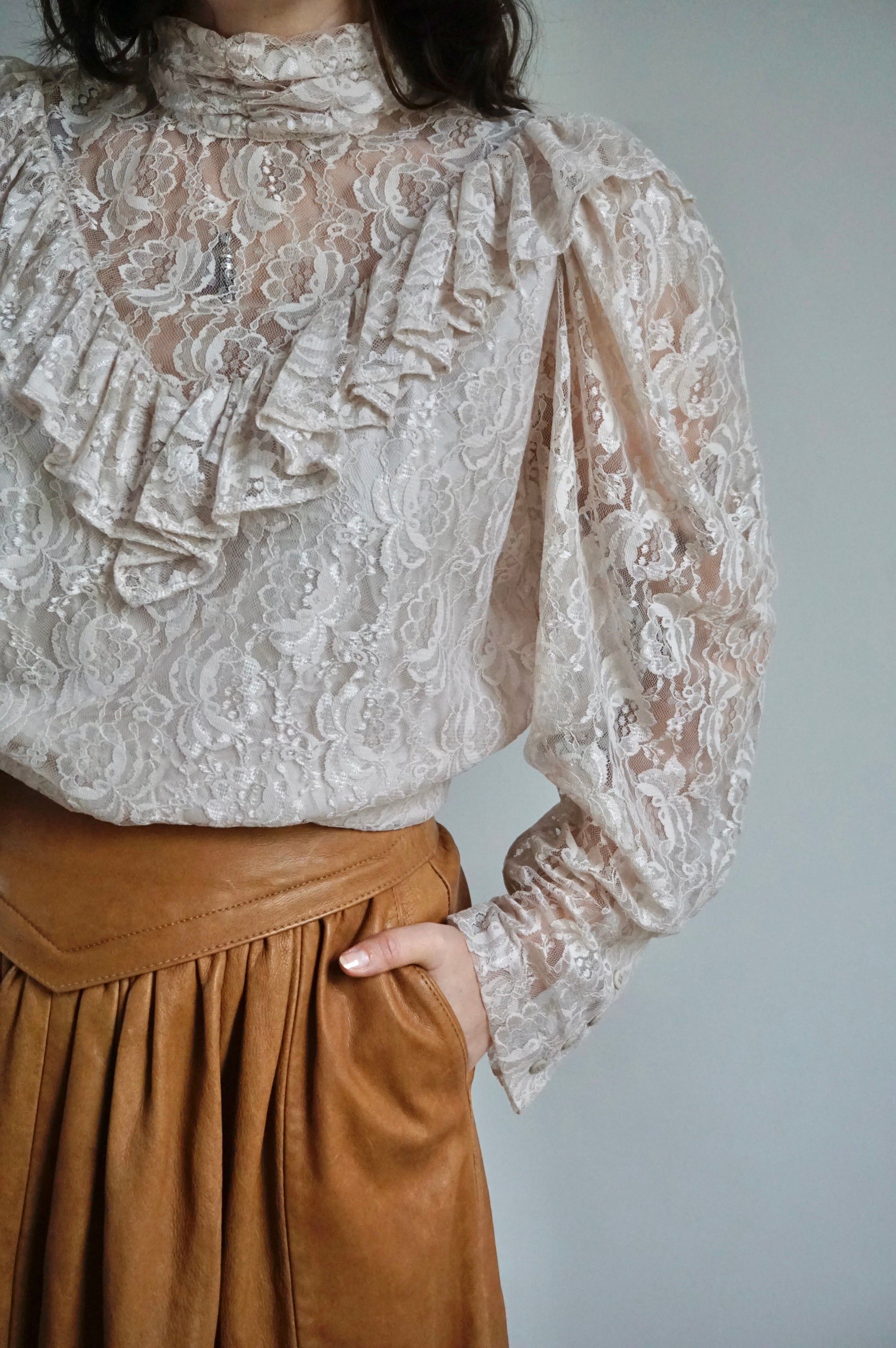 Rosey Dreams - Vintage Ruffle Blouse - Lace - L