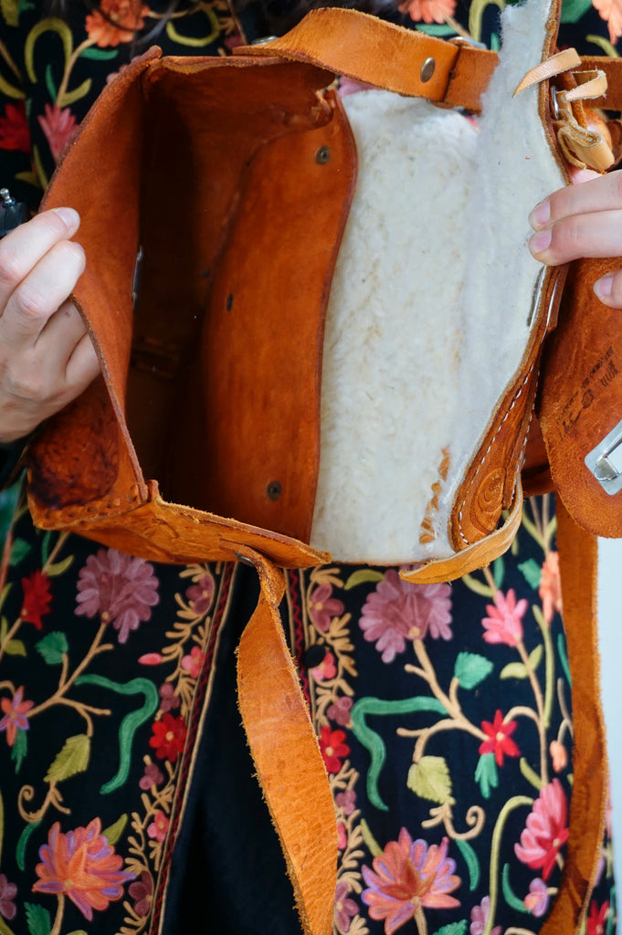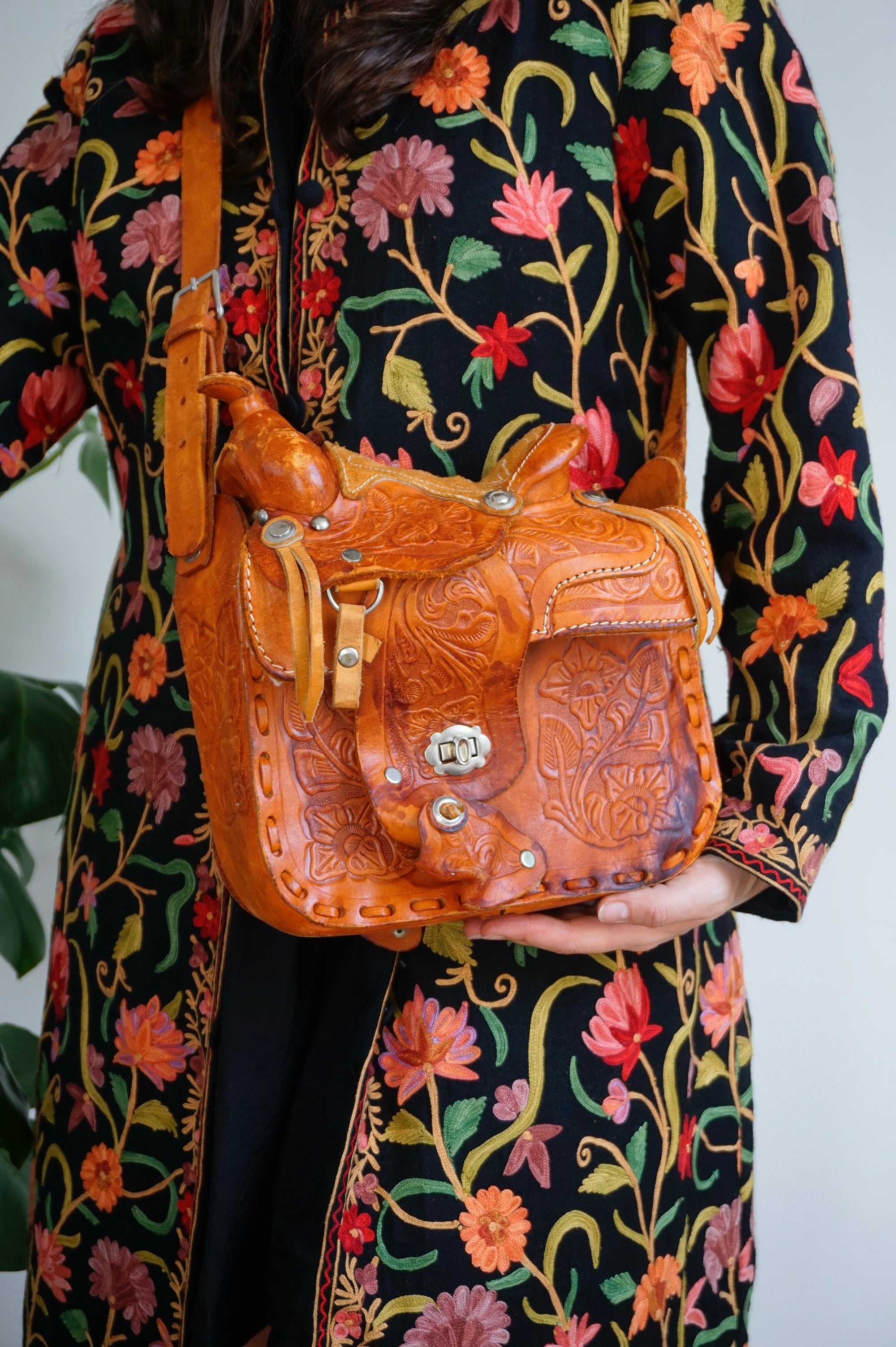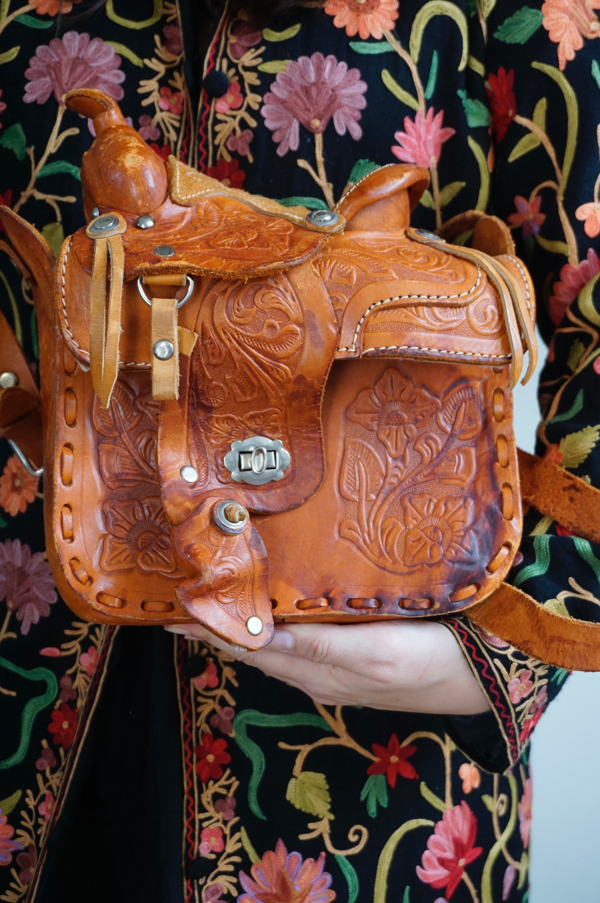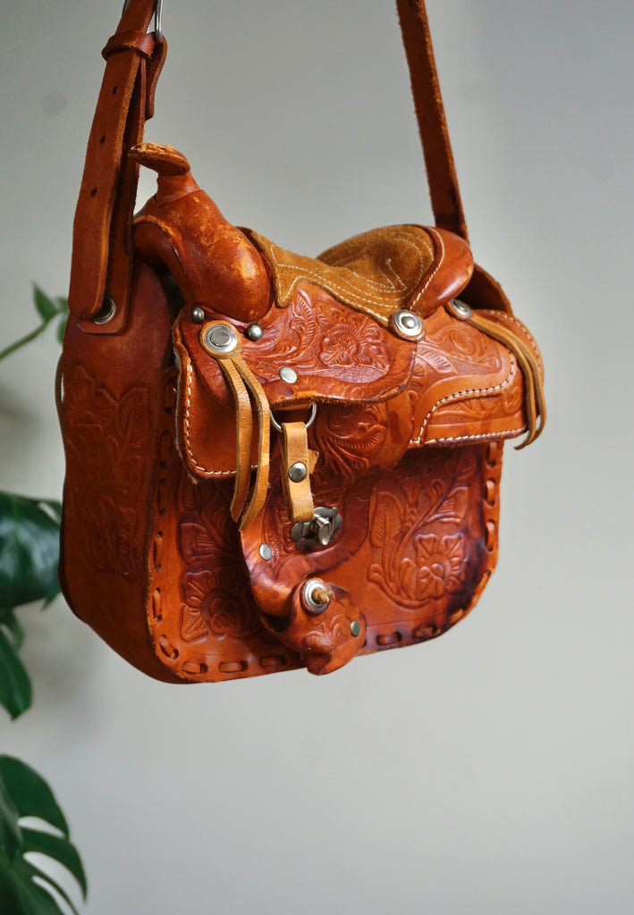 Saddle Up Guuurl - Vintage Leather Saddle Bag - Sheepskin lining