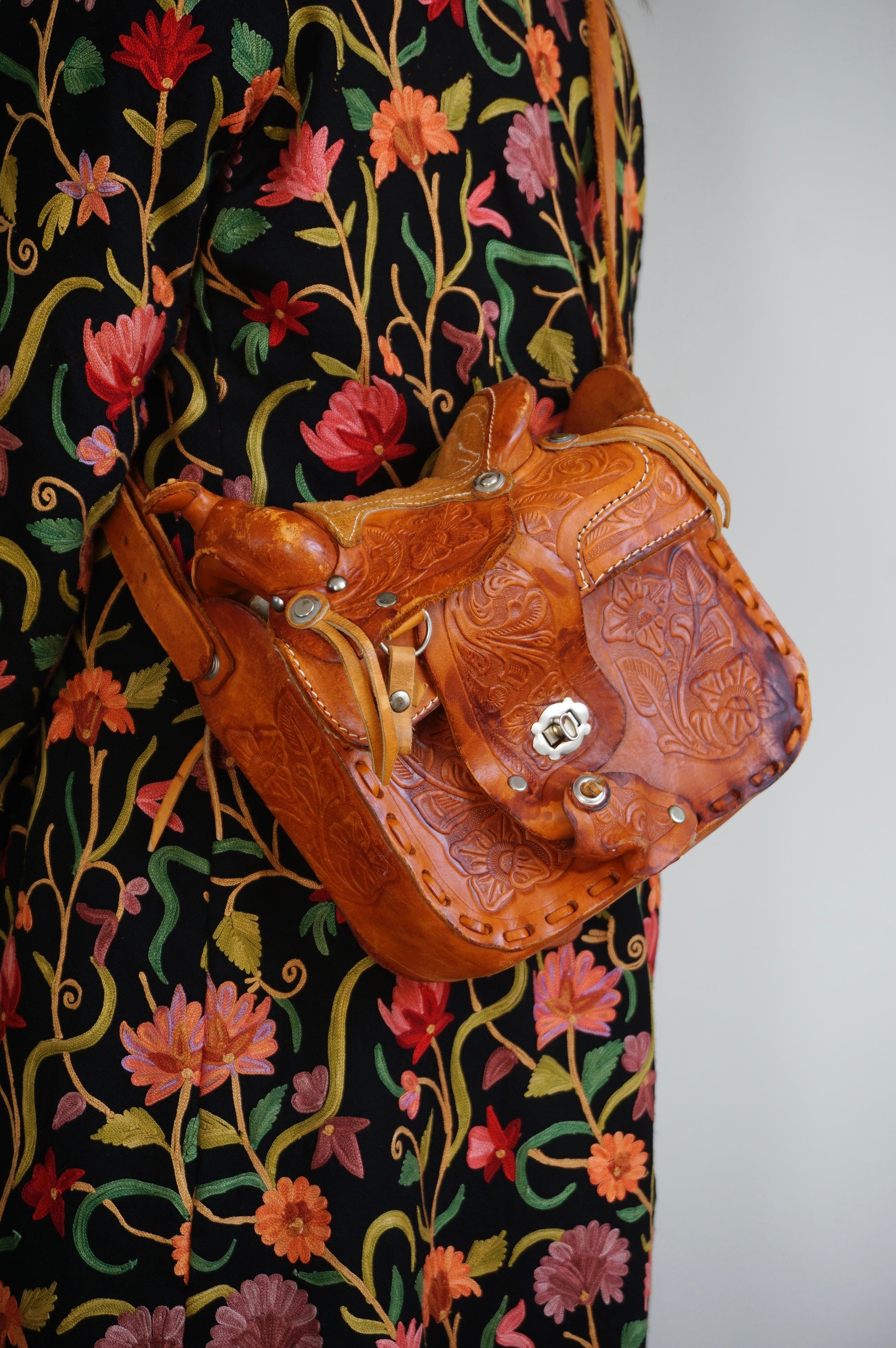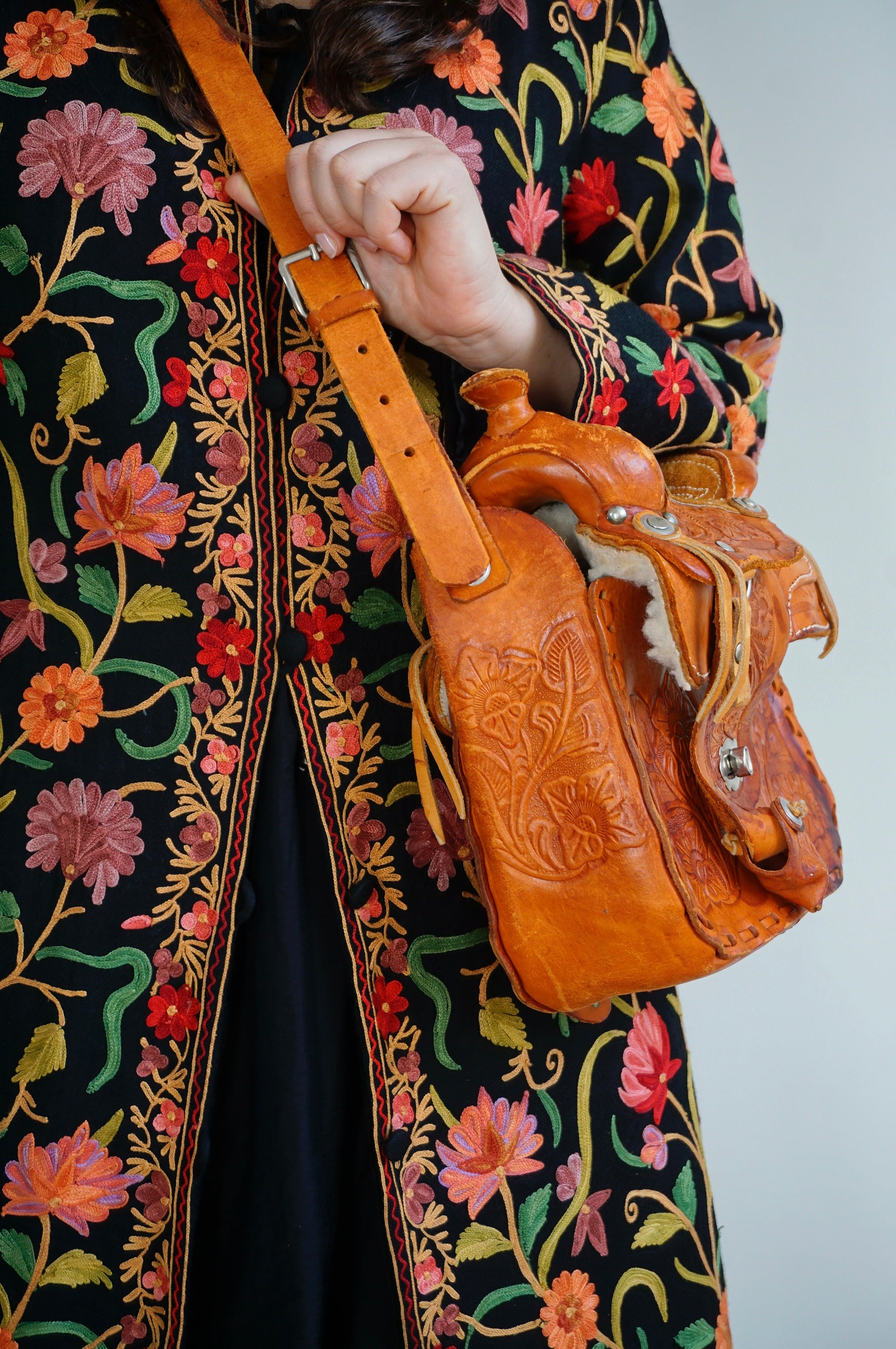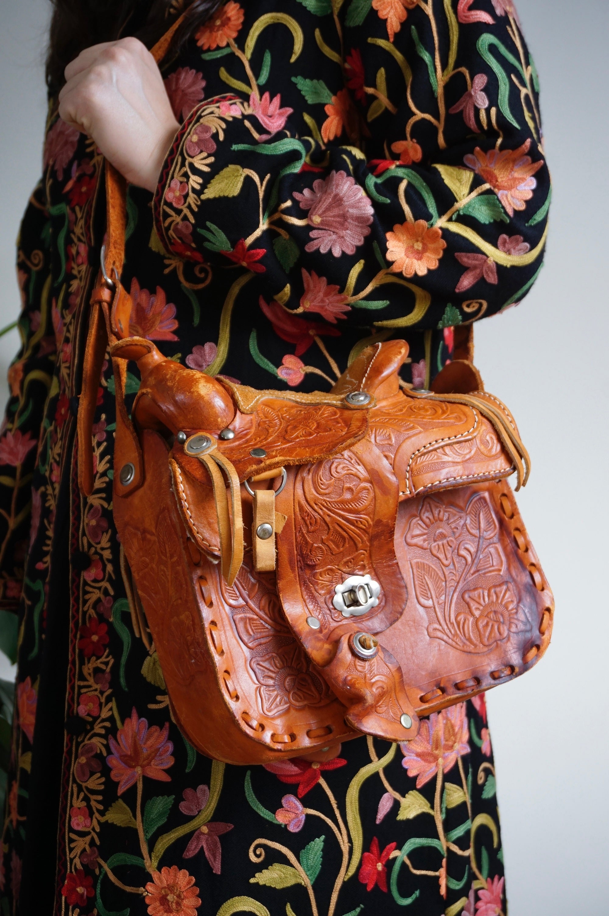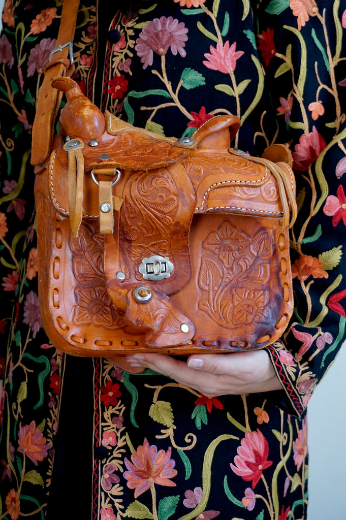 Saddle Up Guuurl - Vintage Leather Saddle Bag - Sheepskin lining
