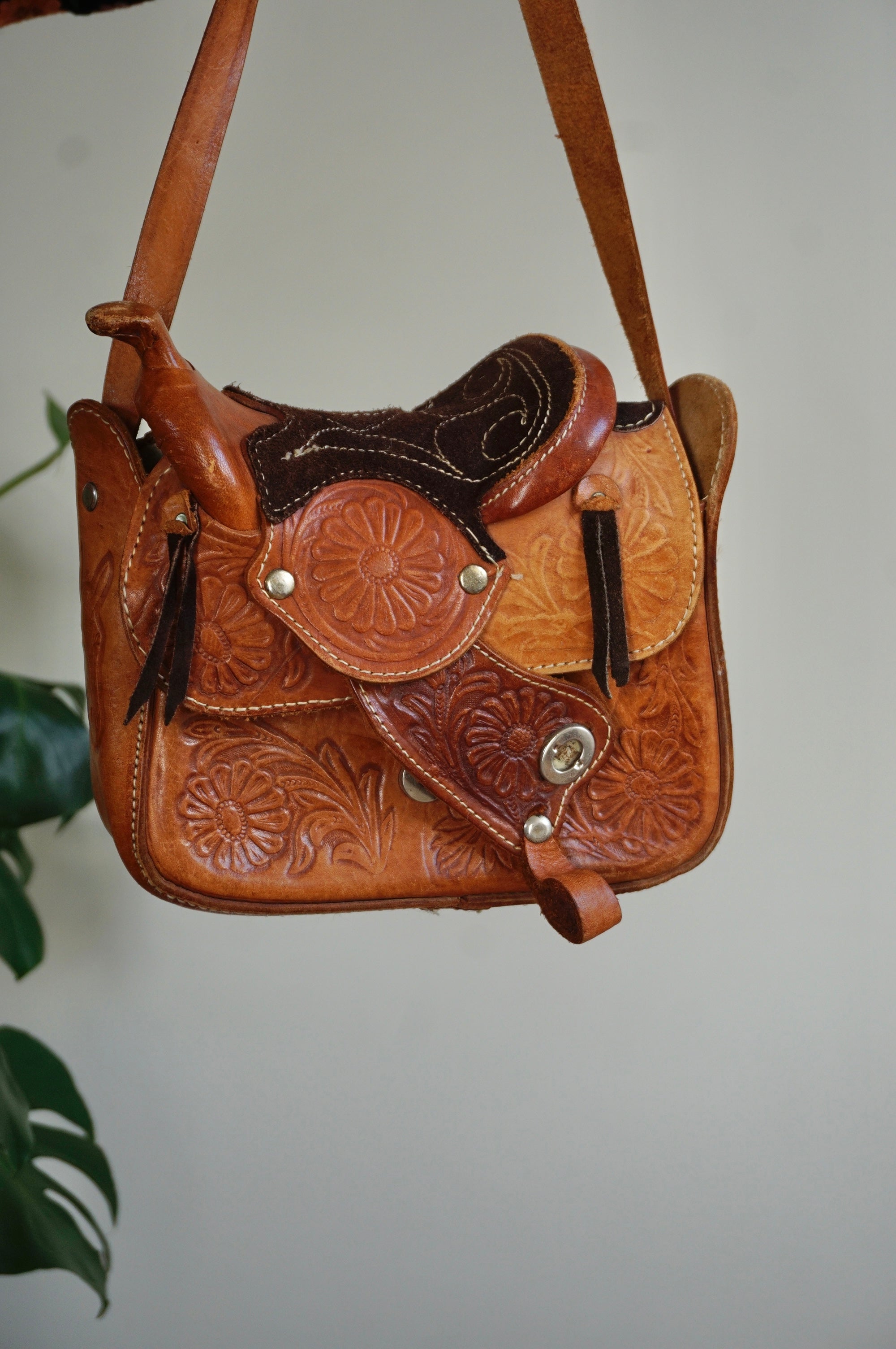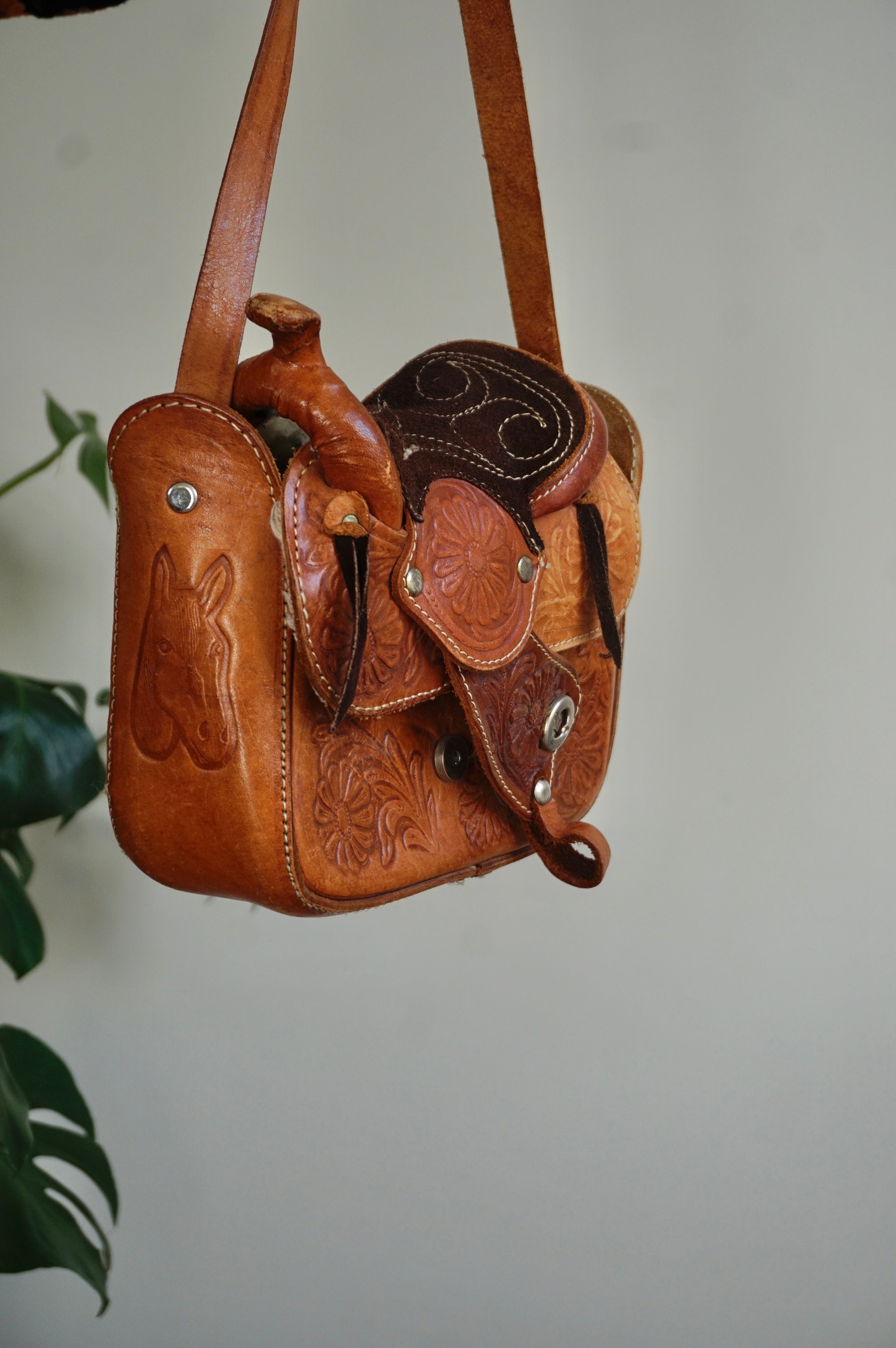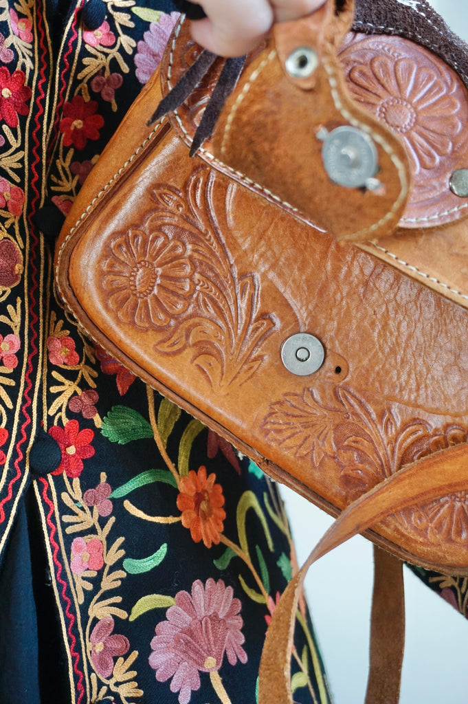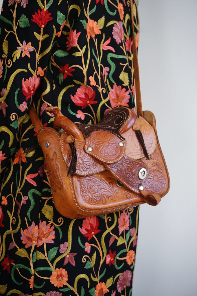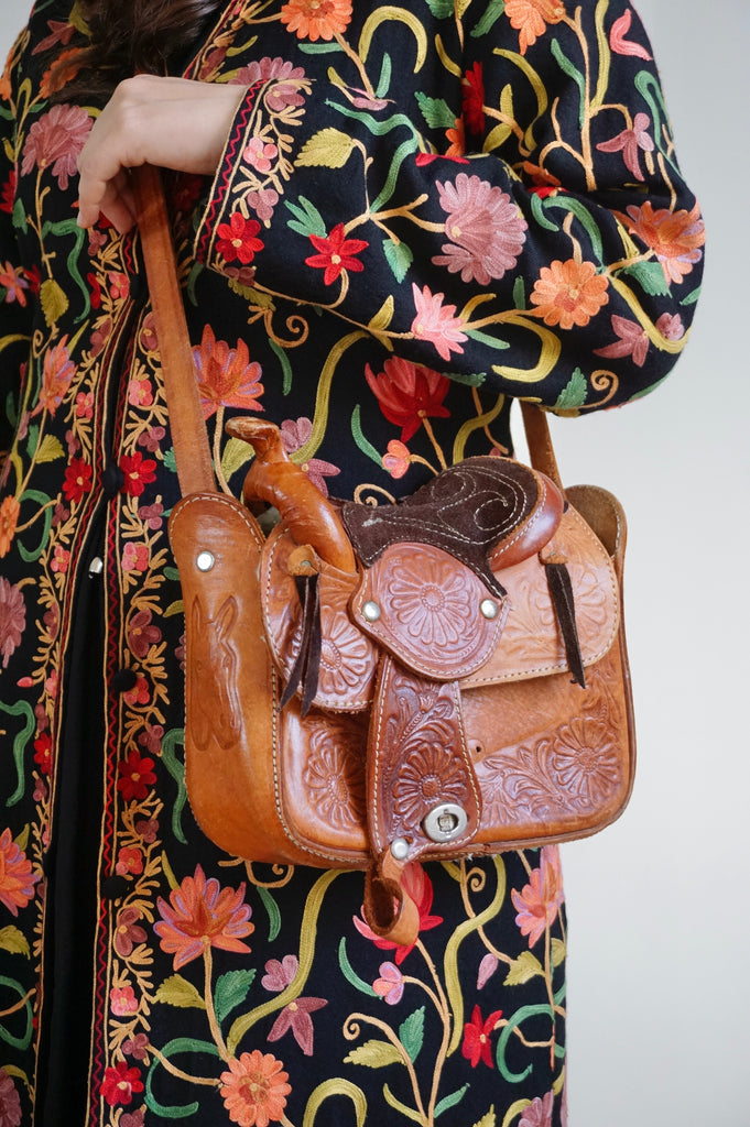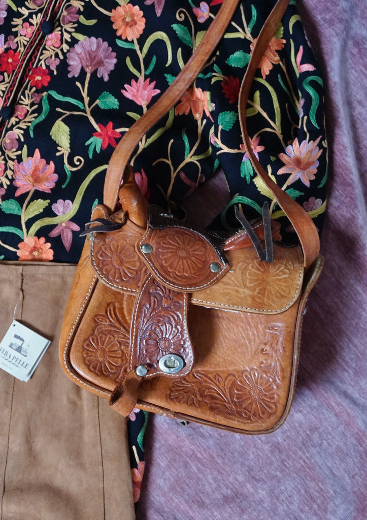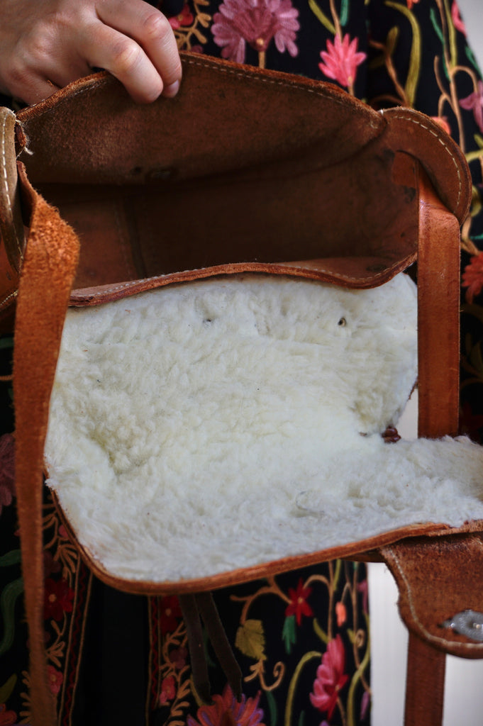 Saddlebag up Guuuurl - Vintage Leather Saddlebag - Sheepskin lining