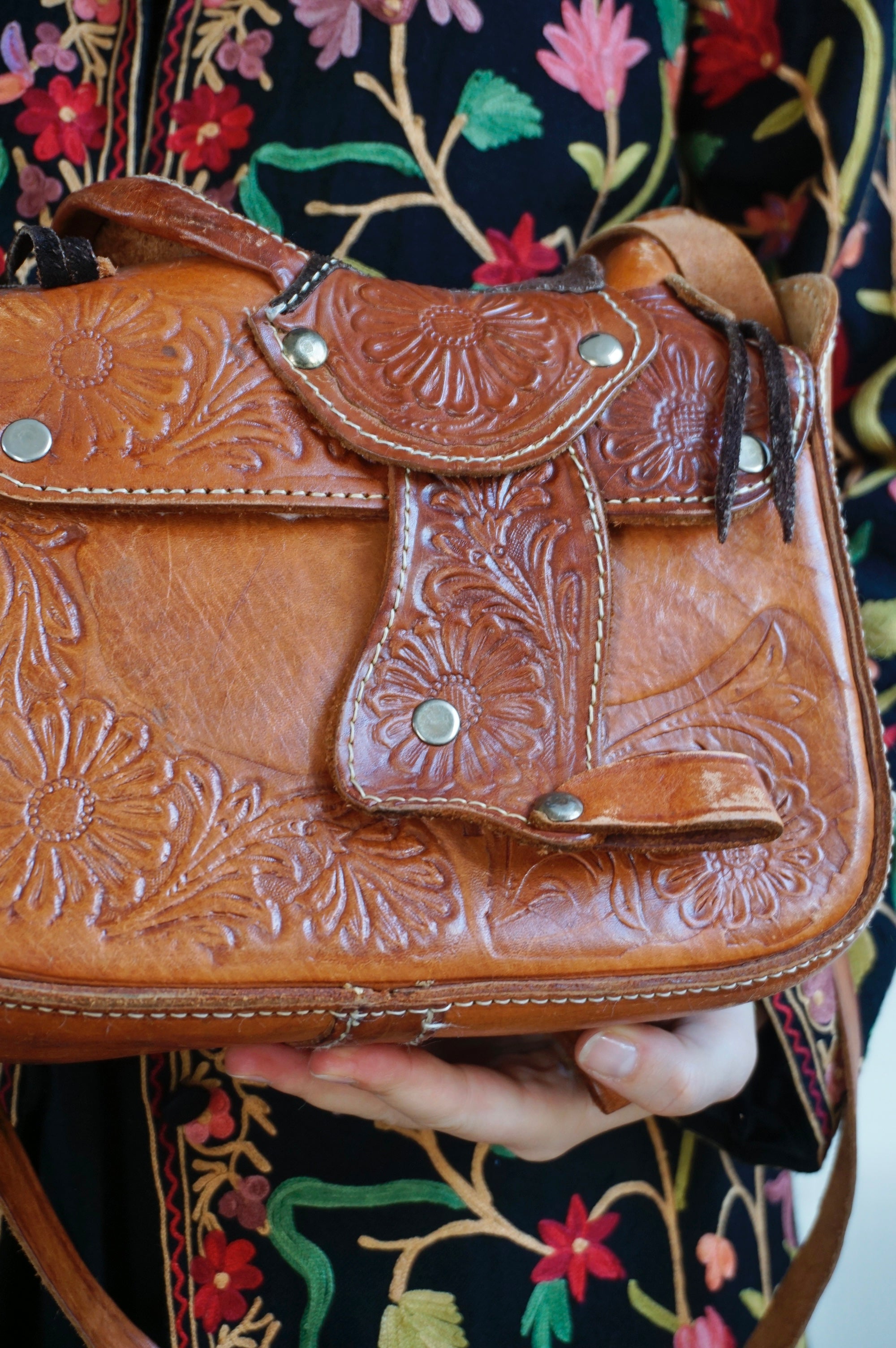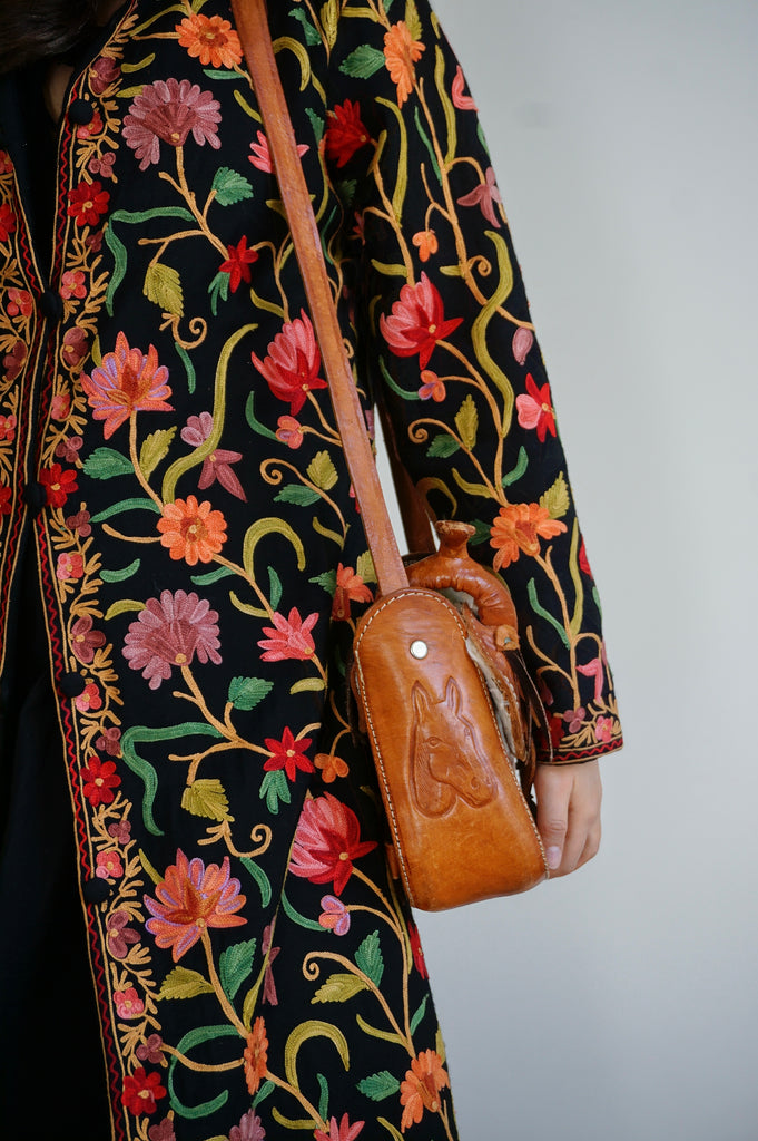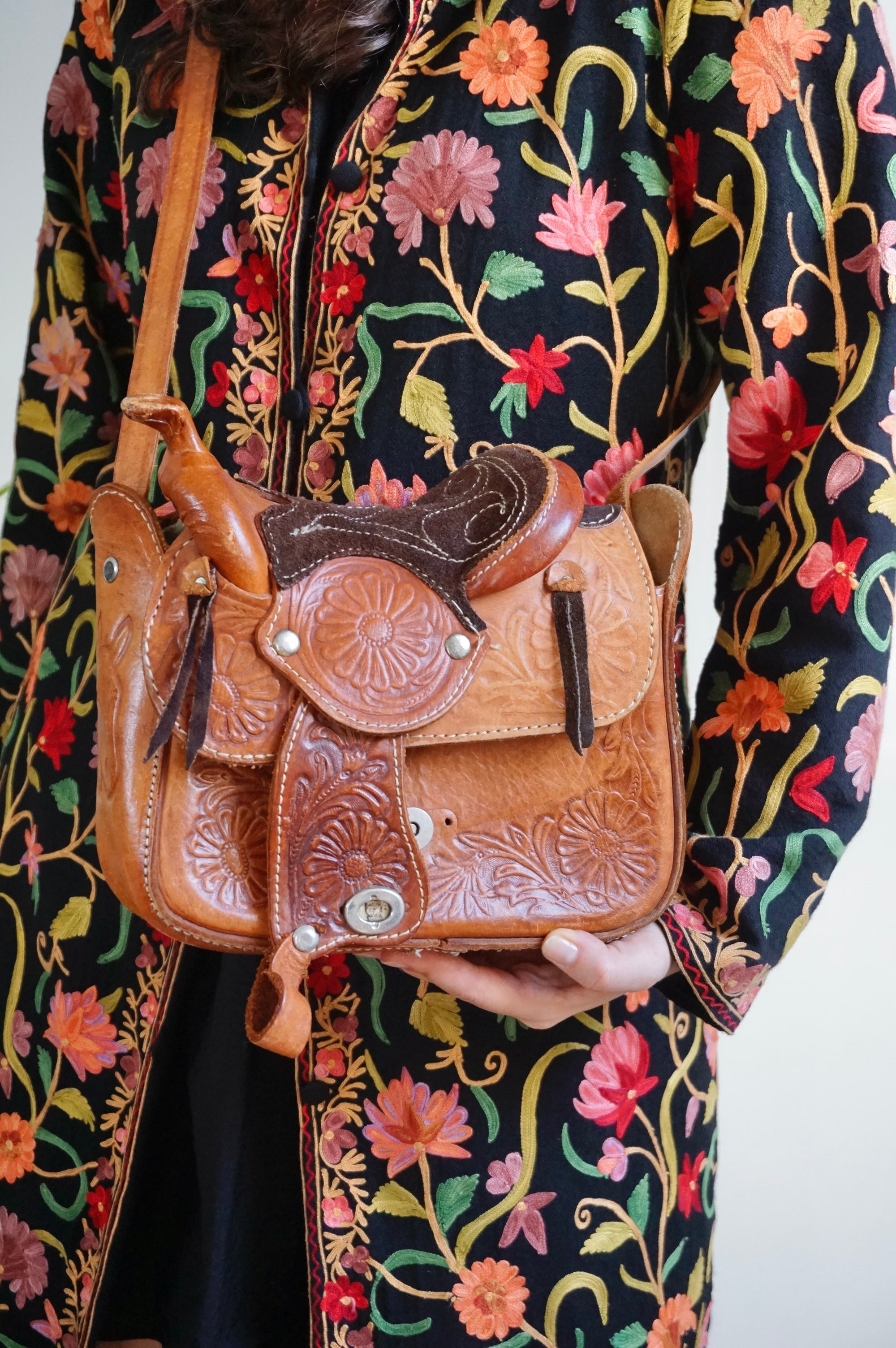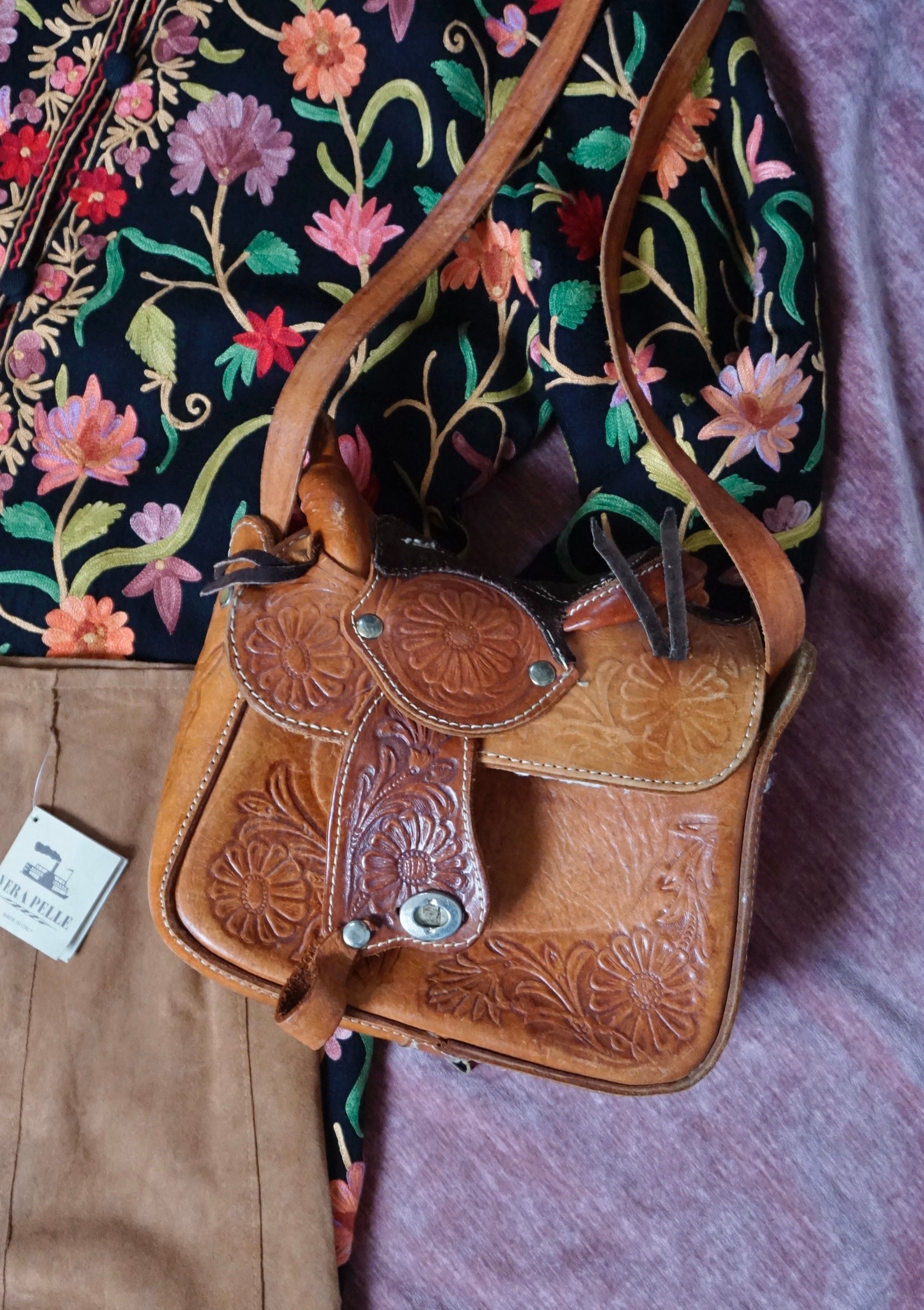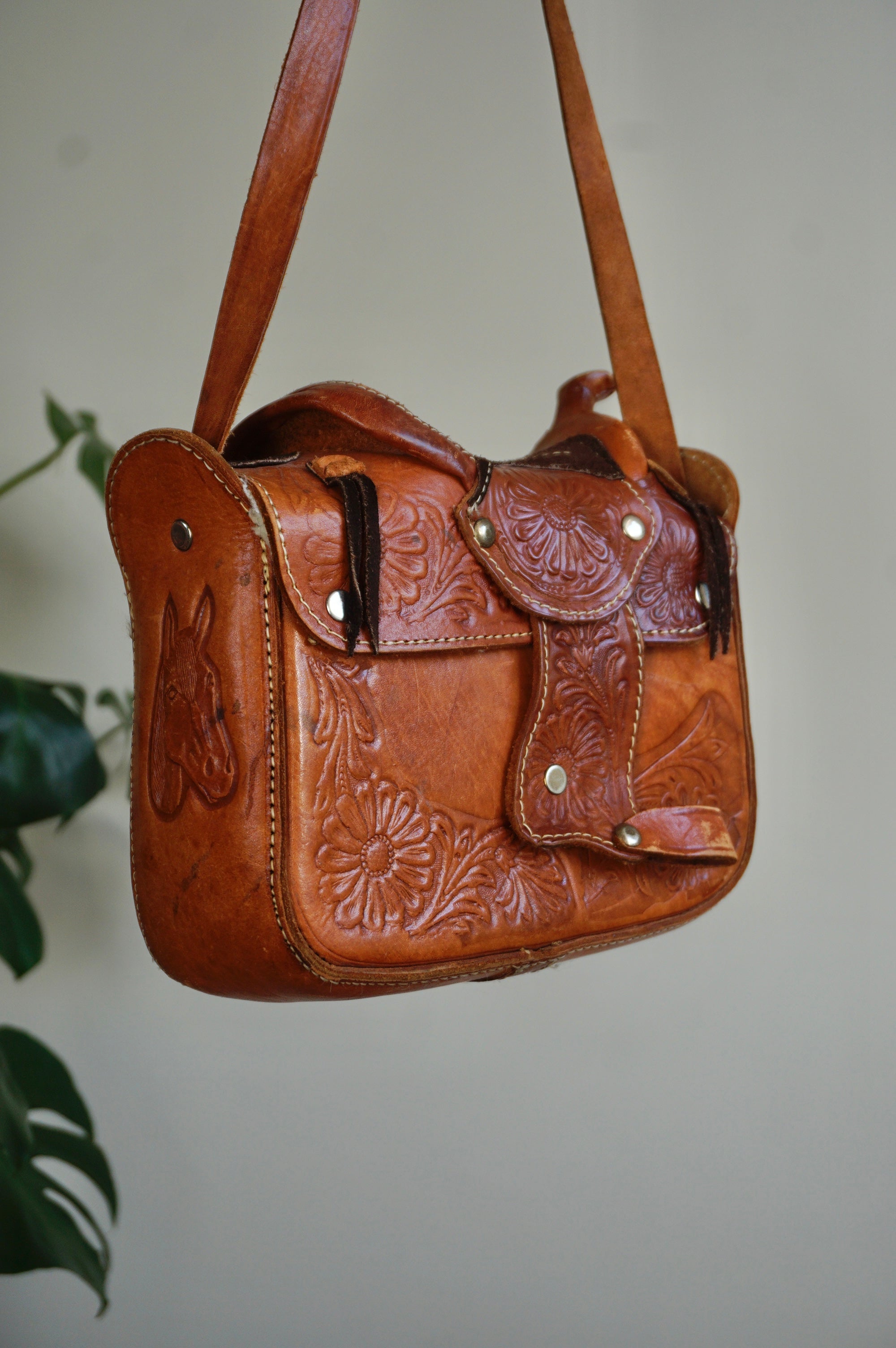 Saddlebag up Guuuurl - Vintage Leather Saddlebag - Sheepskin lining