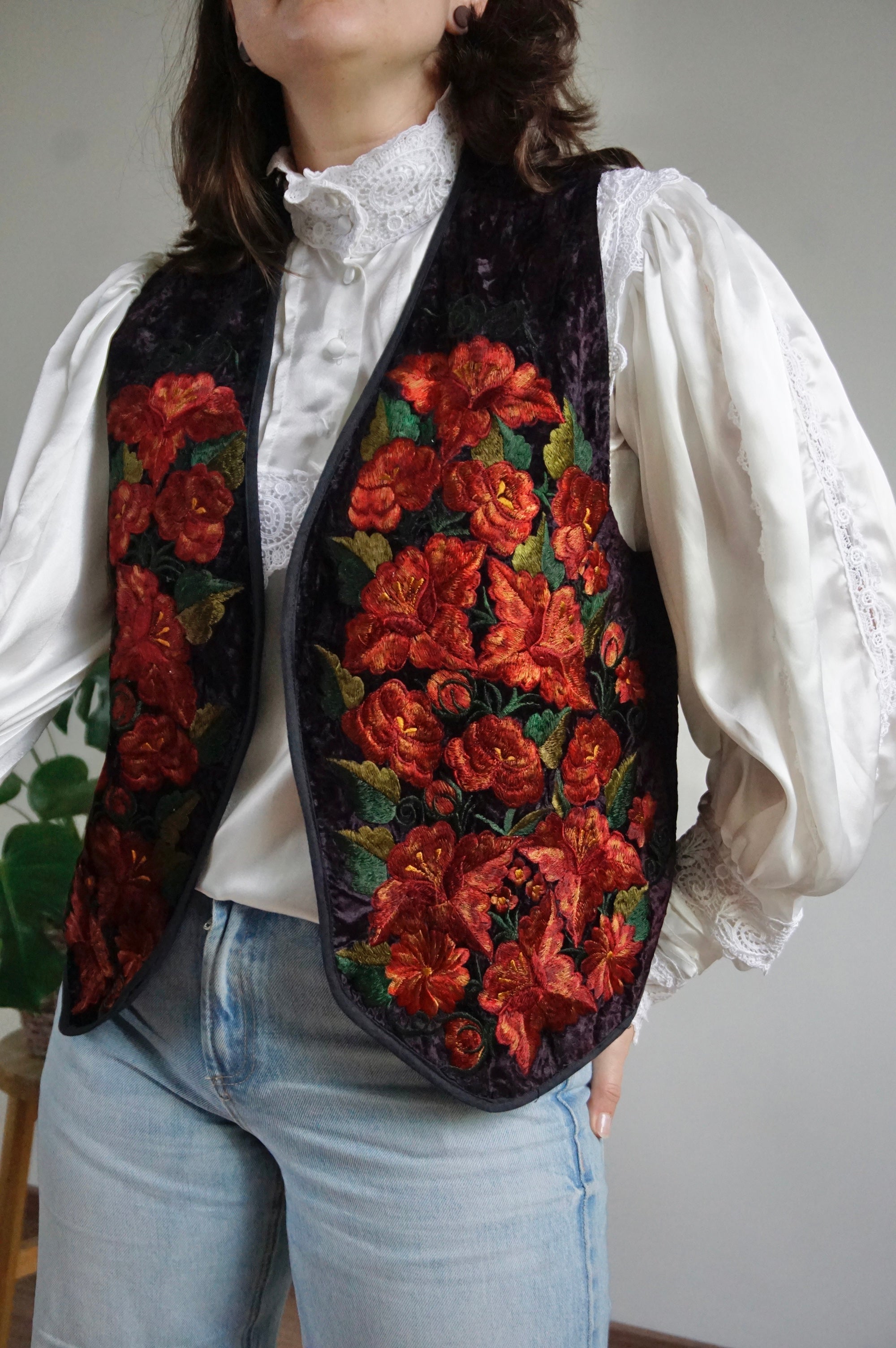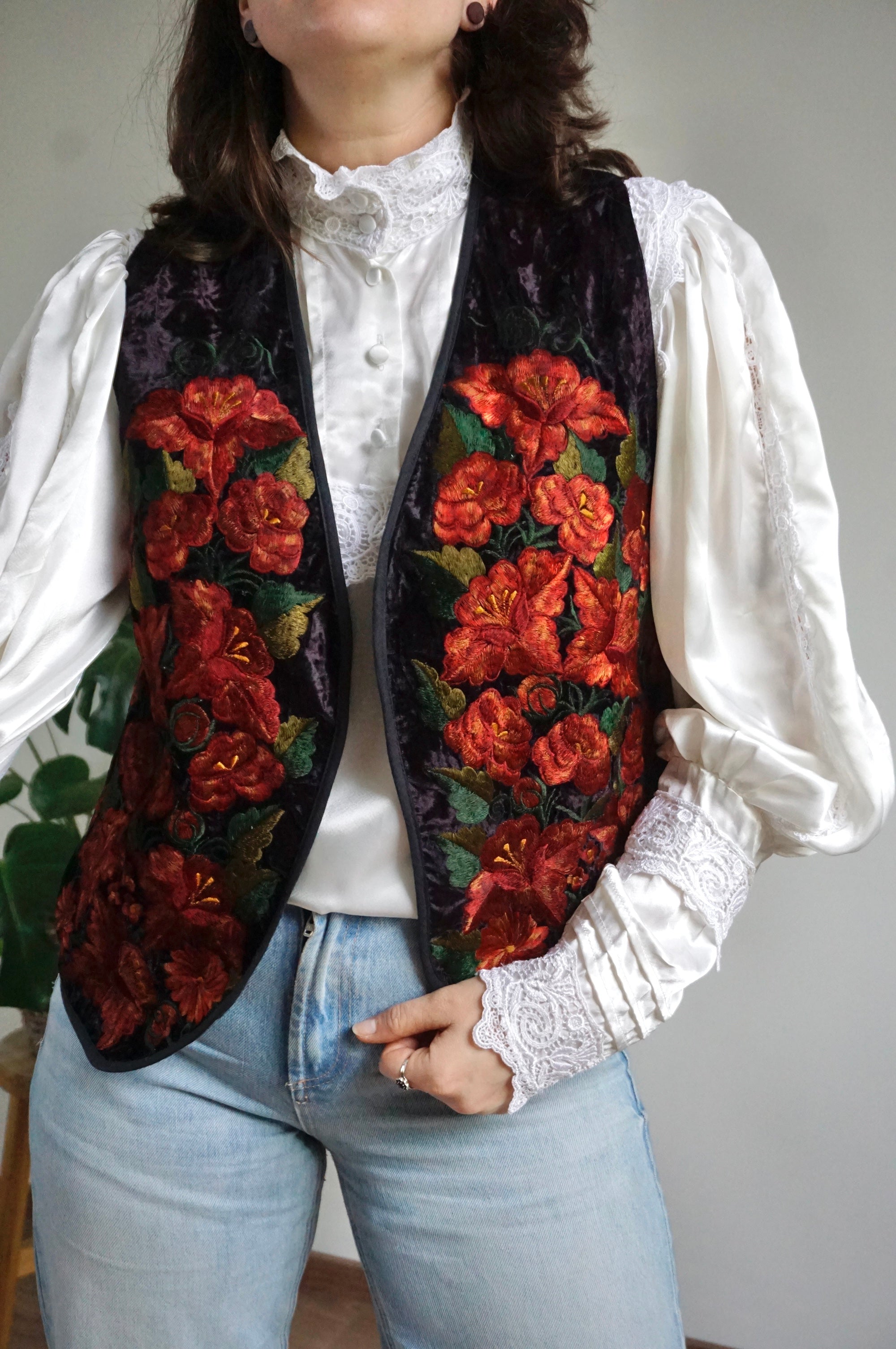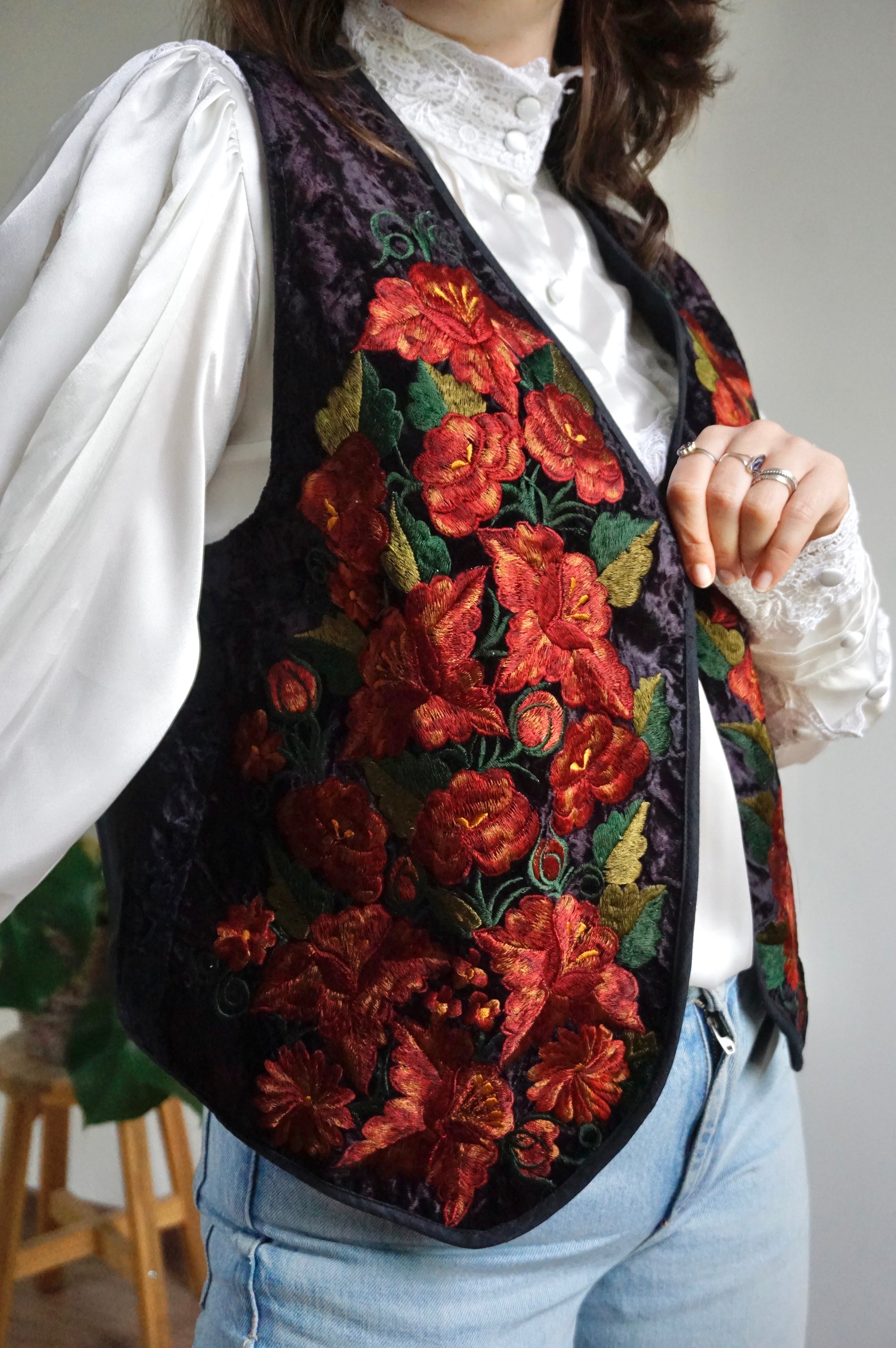The Dark Rose - Vintage Gilet/Waistcoat - Velvet - Embroidered - L